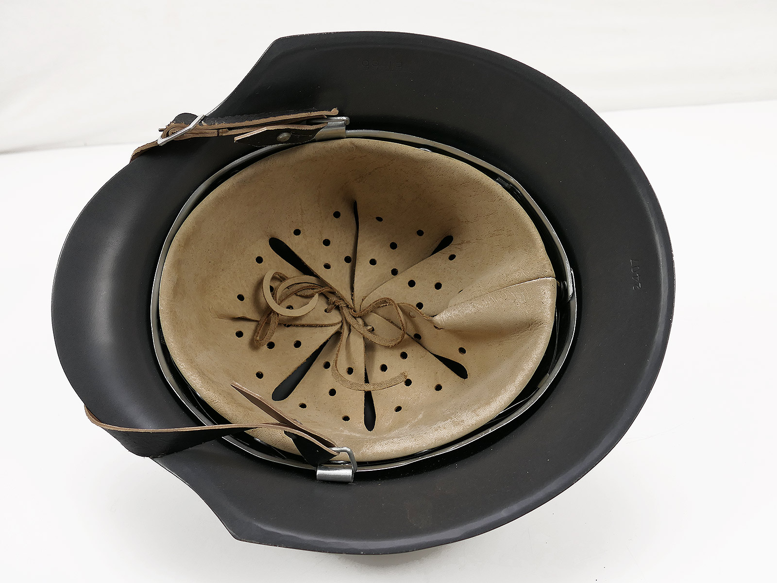 Material: Steel, inner lining and chin strap made of 100% goatskin