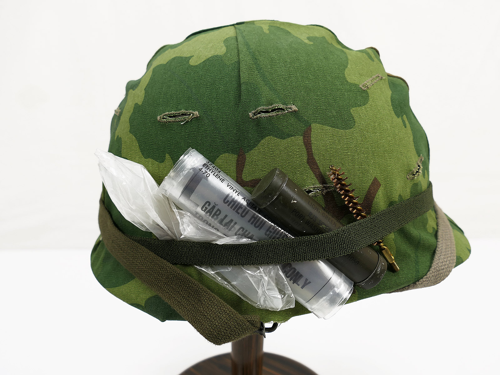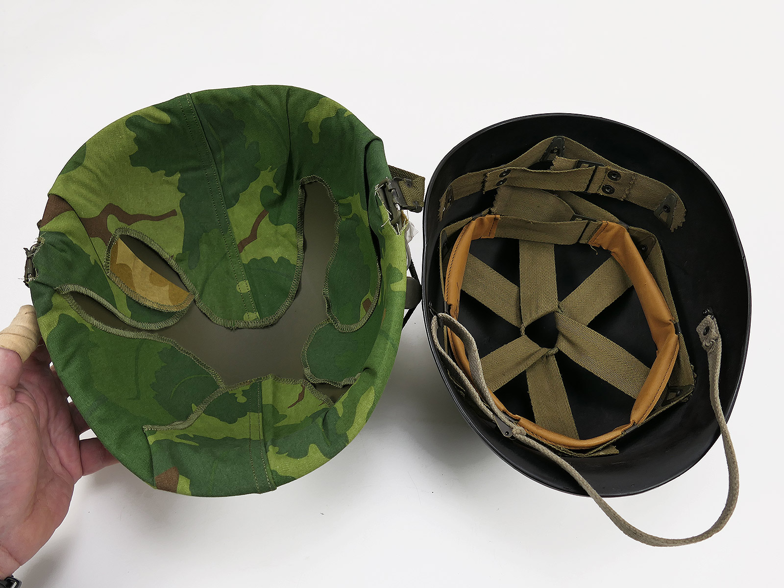 #1 US ARMY M1 steel helmet Vietnam / Korea with Mitchell helmet cover 1969 and accessories NAM