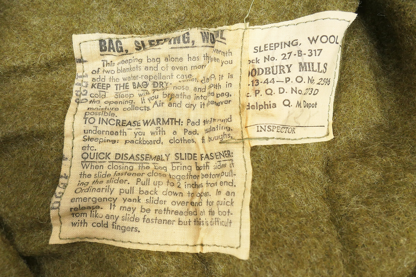 Original WW2 sleeping bag, dated 1944.