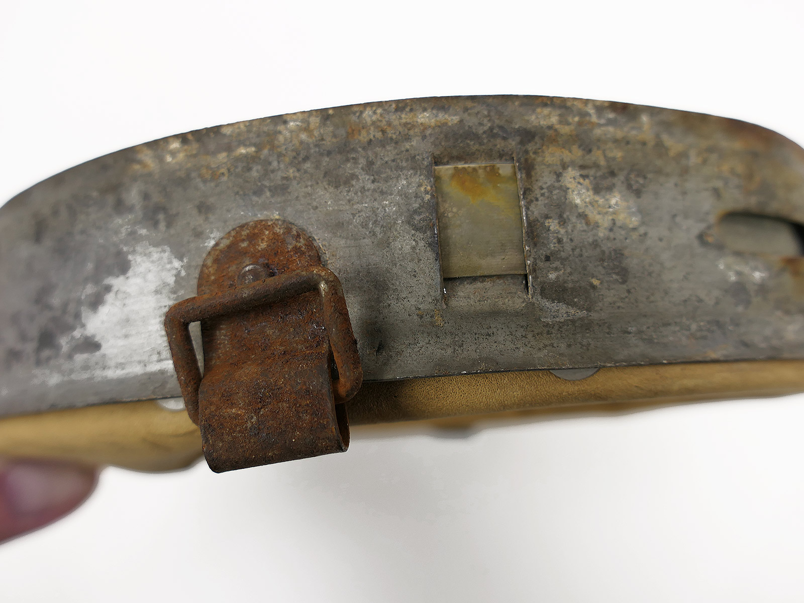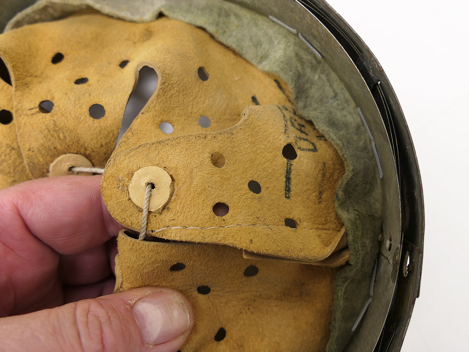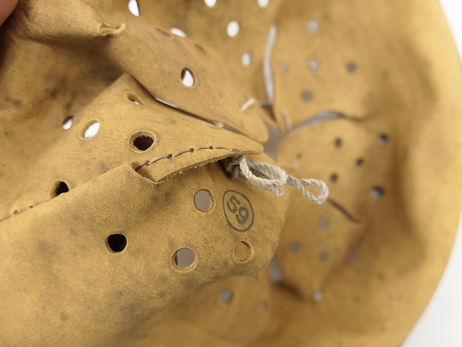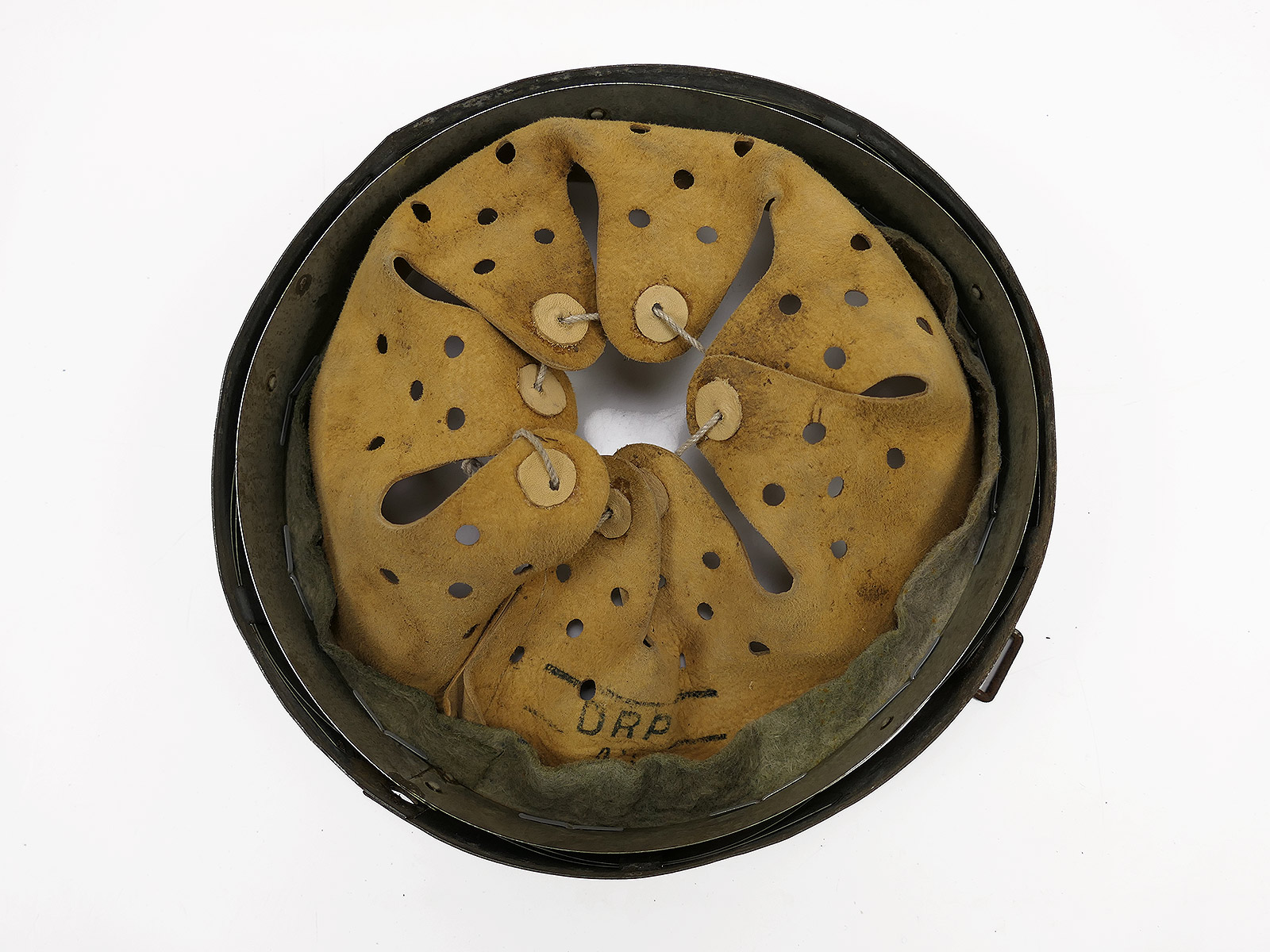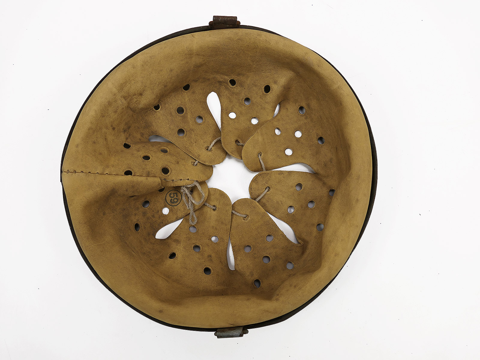 From a museum clearance sale – antique helmet lining – an old collector’s item made partly from original materials.