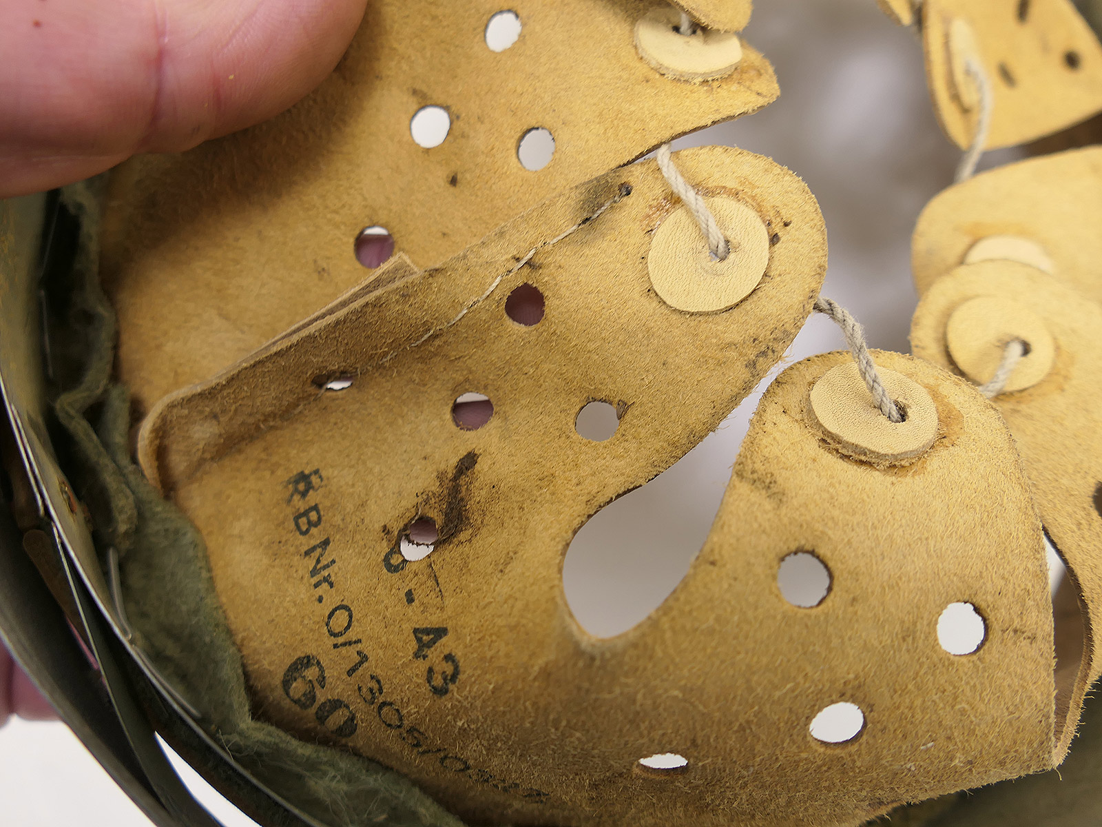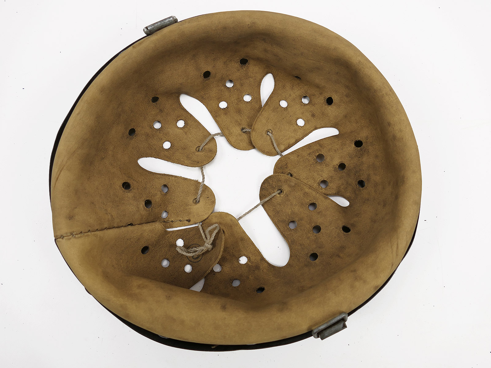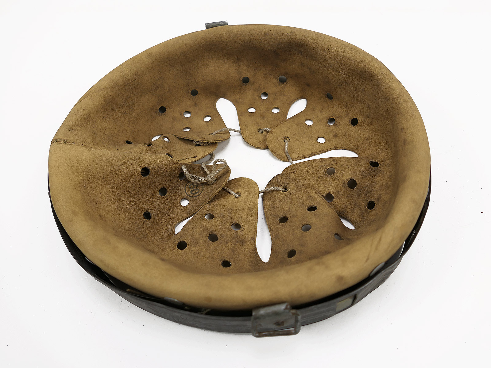 From a museum clearance sale – antique helmet lining – an old collector’s item made partly from original, vintage materials.