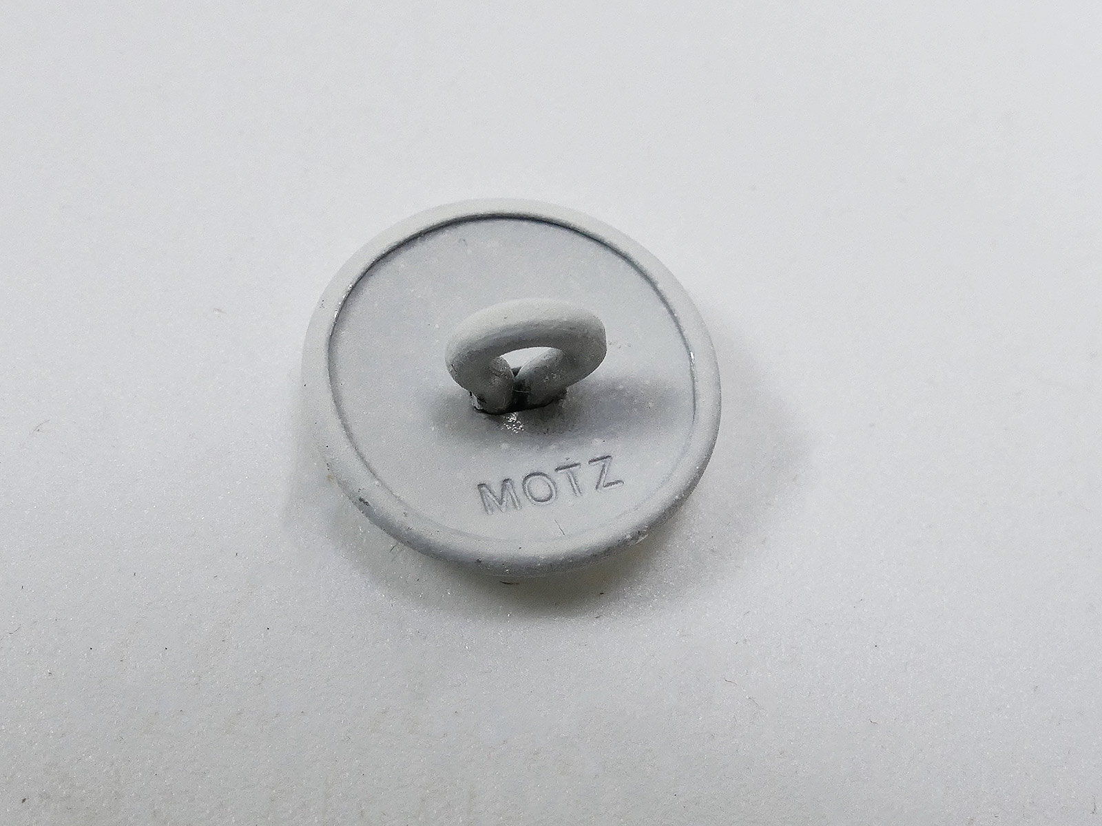 1x piece button (eyelet button), white overpainted, stamped "Motz", 20mm