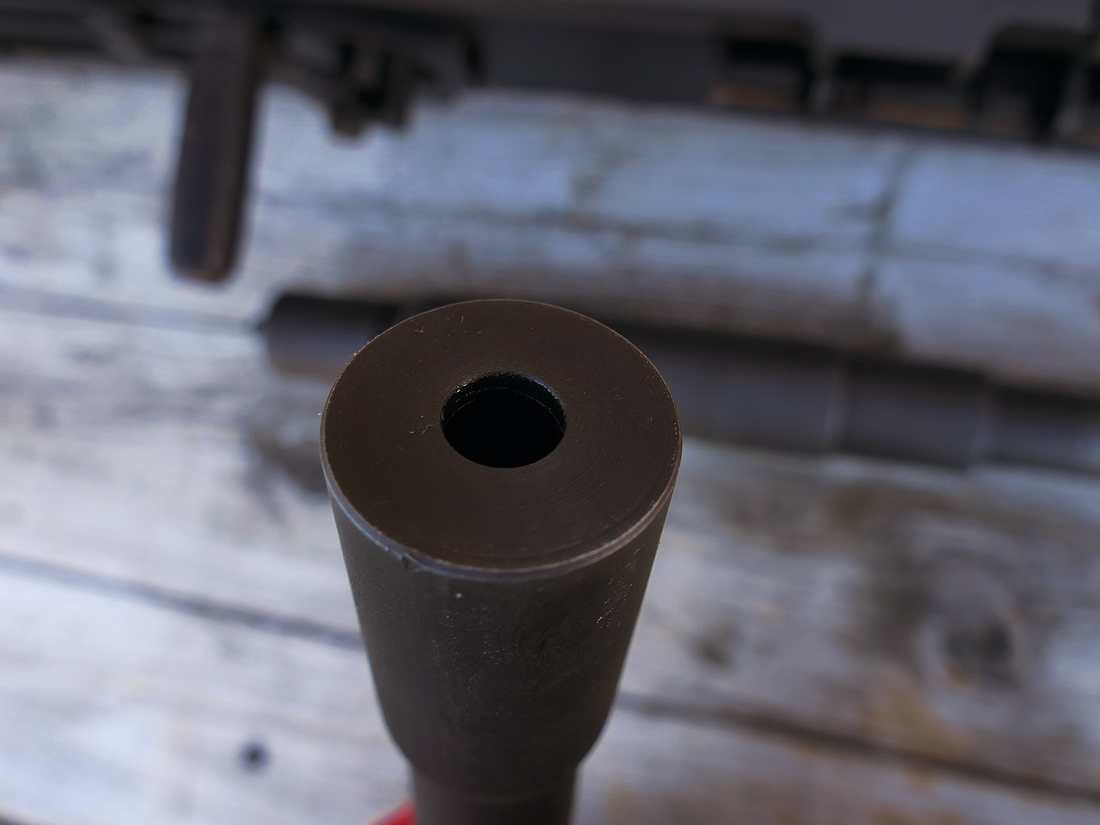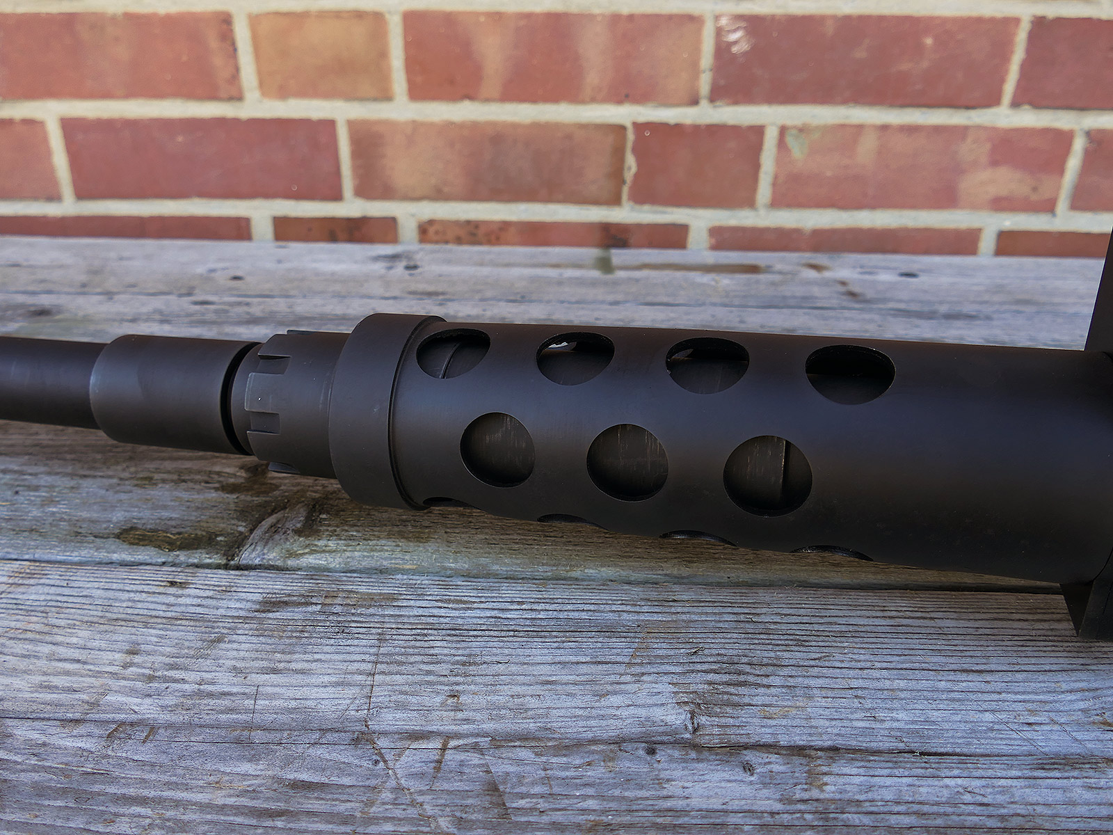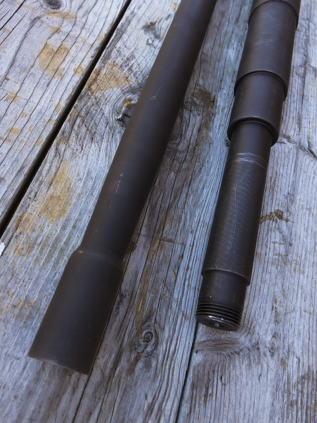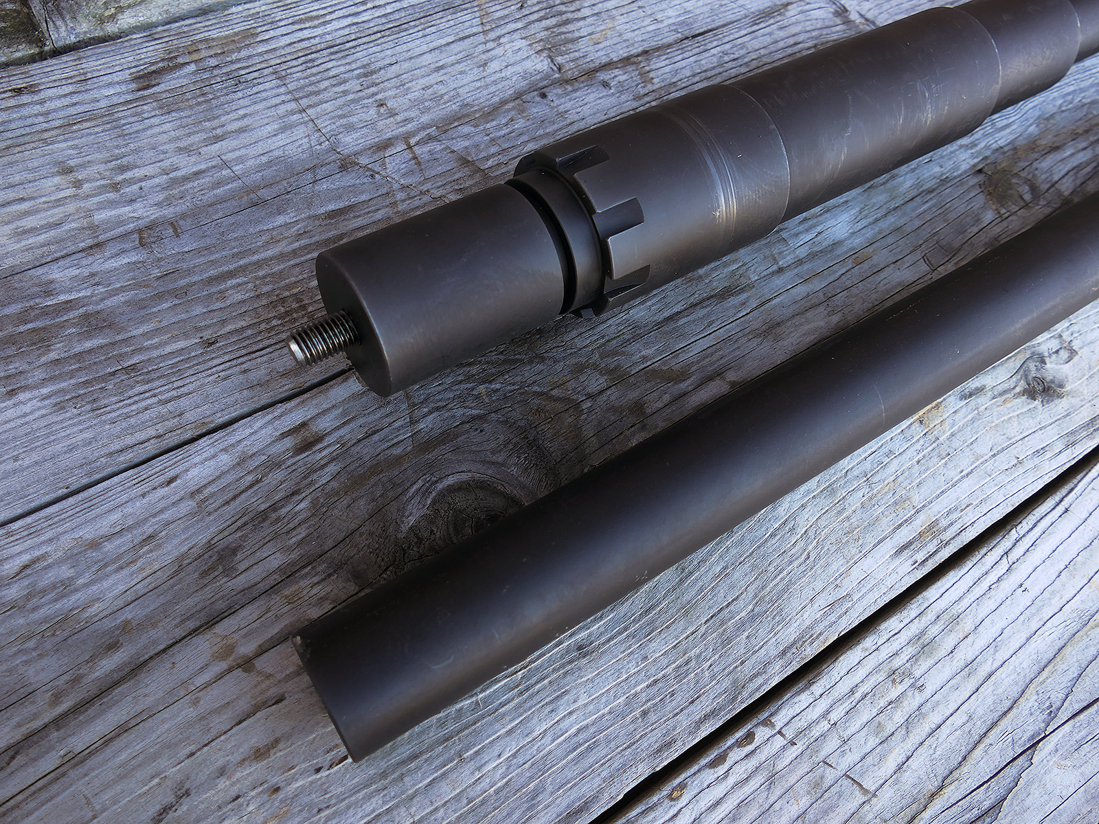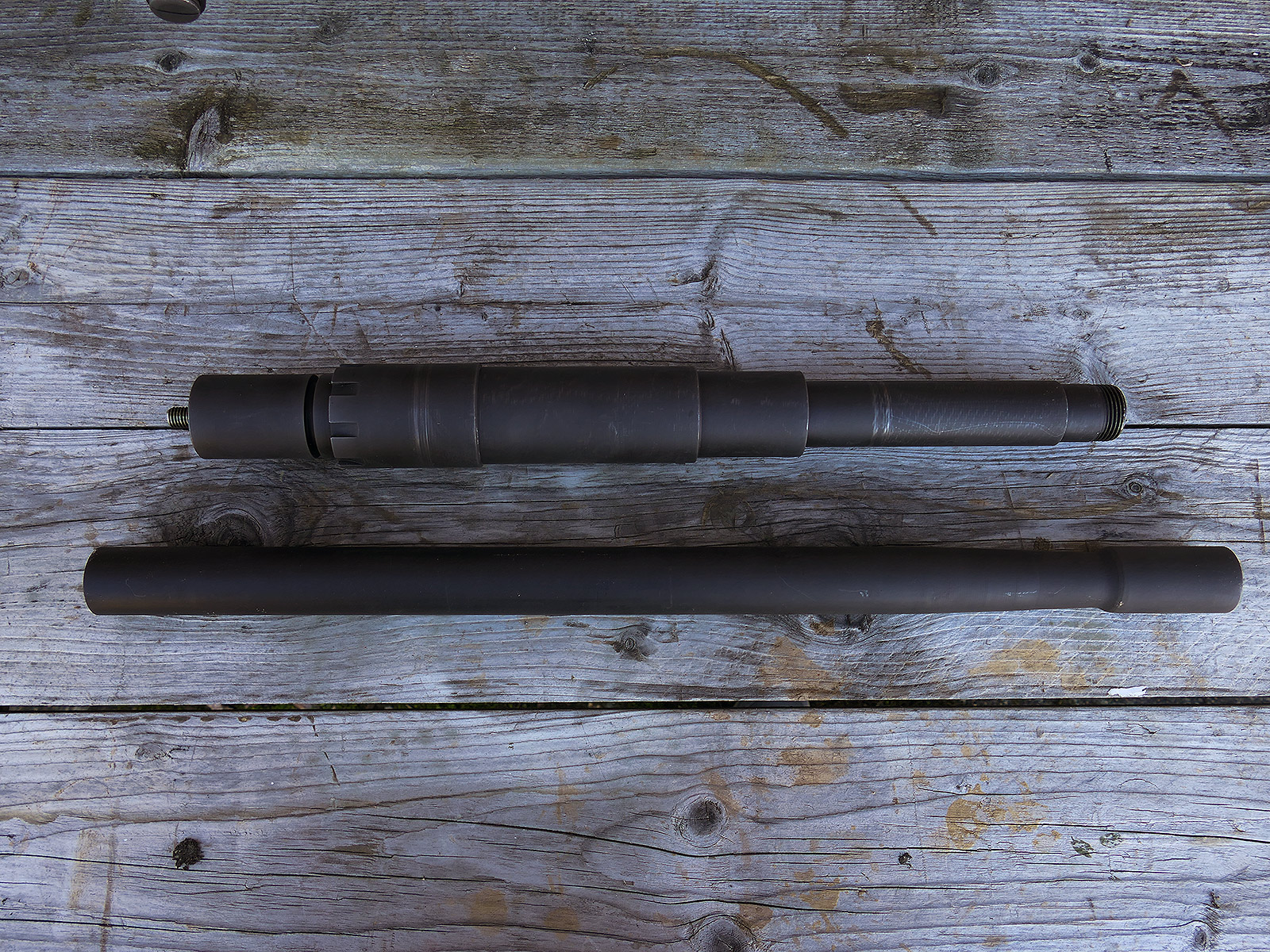 The cocking lever is movable and pulls back the indicated "bolt". However, the catch does not engage in the rear position. The cocking handle can be unscrewed for transport. The model weighs approx. 31 KG with the barrel. The single fire and continuous fire triggers are movable. The barrel is solid and the muzzle opening is indicated by a hole, the barrel can be removed as with the original and can be dismantled for transport. The barrel was manufactured by a tool company. The MGs were intended for a museum for US Army M113 tanks.
