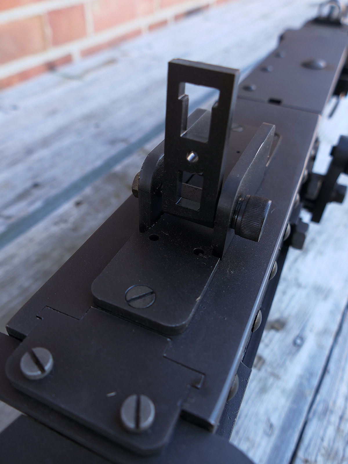 The lid can be opened, the housing is completely empty. The rear sight can be opened. A cartridge box can be attached to the housing on the left and right. Unfortunately, these new models are only available in very small numbers and probably only once because the manufacturing costs are simply too expensive, as is the material. The 50 fits all standard US ARMY mounts.