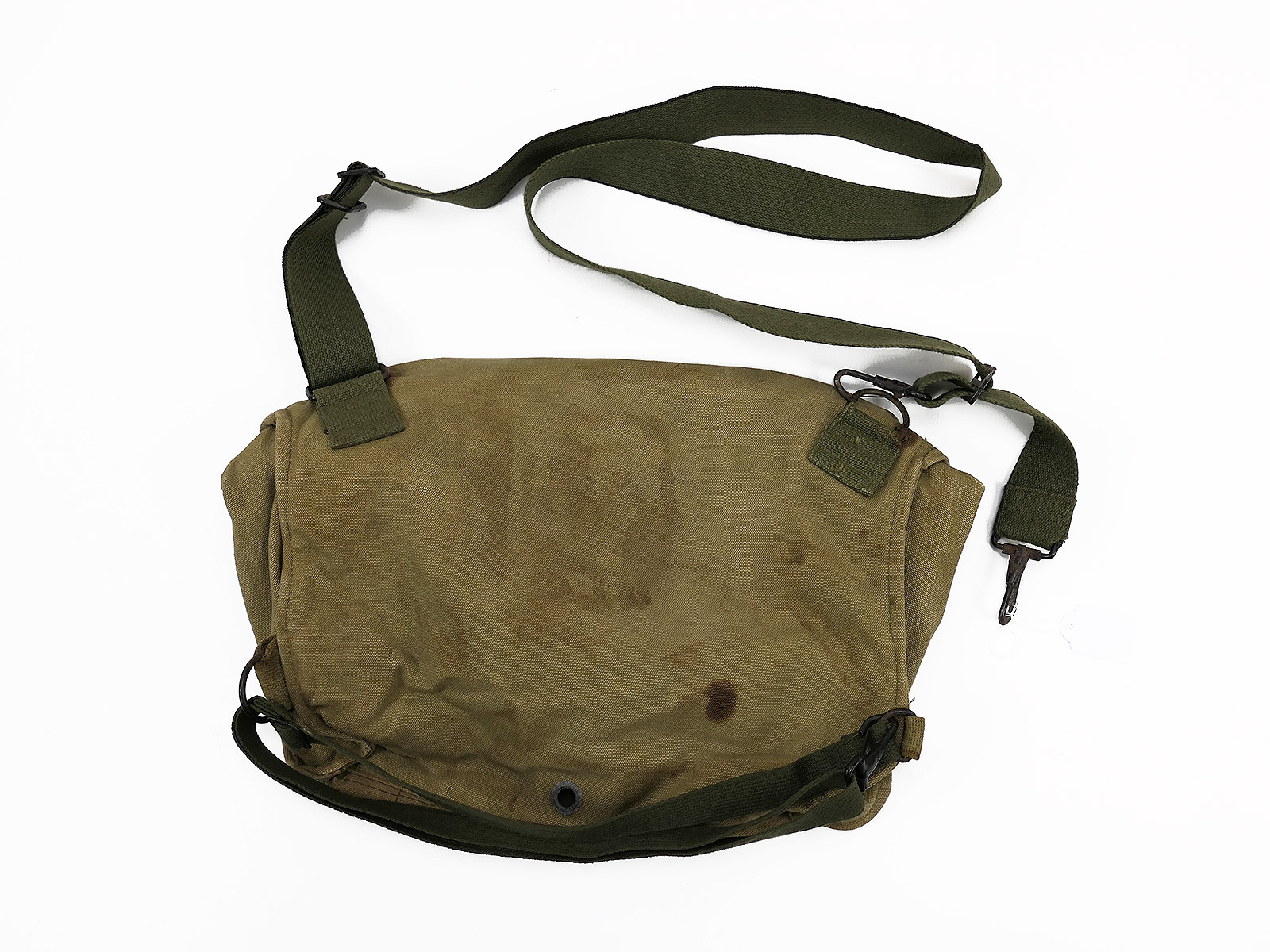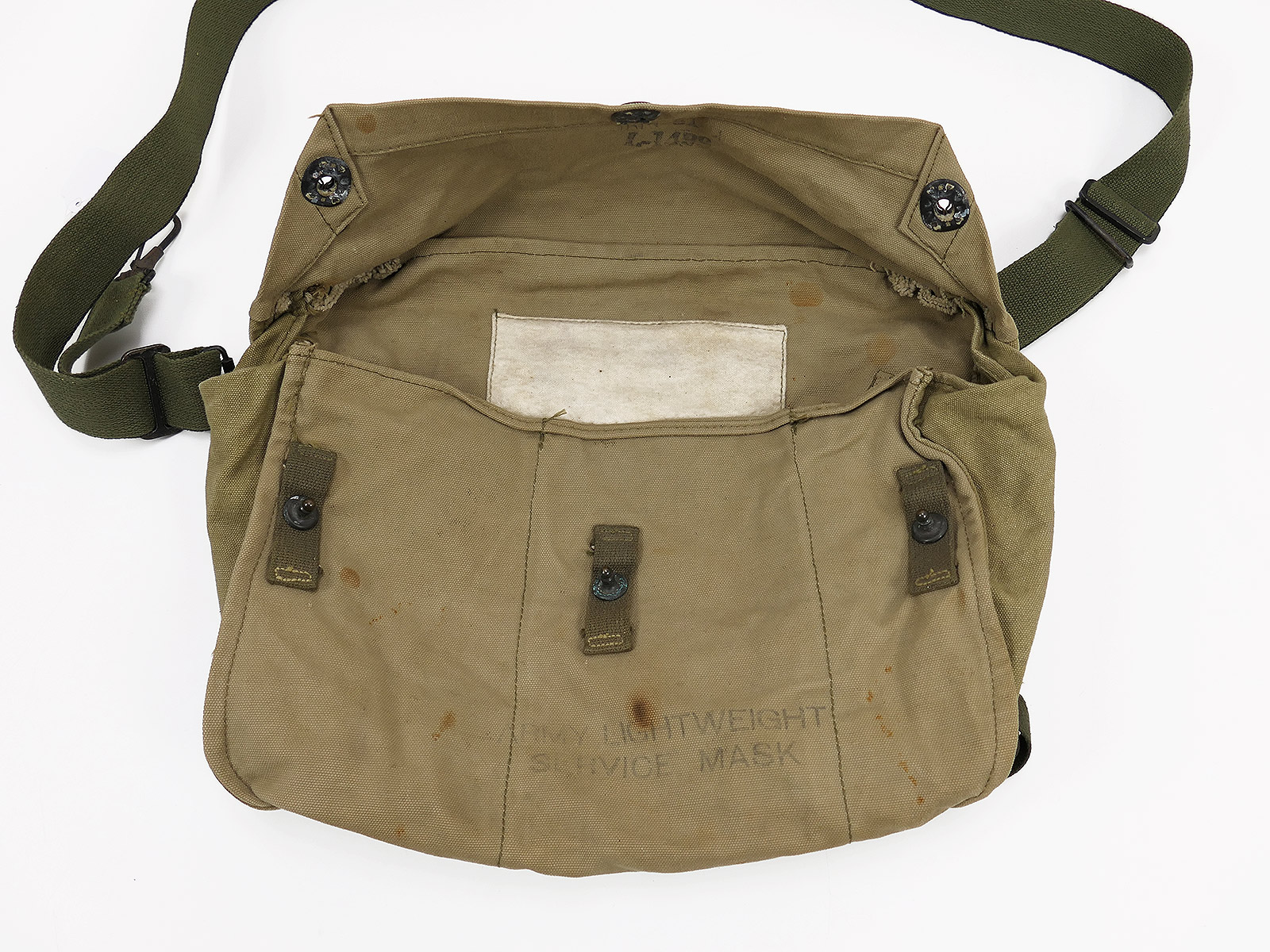 #2 Original US Army WW2 Lightweight Gas Mask Bag khaki Gas Mask Bag / Collection BATTLE WORN