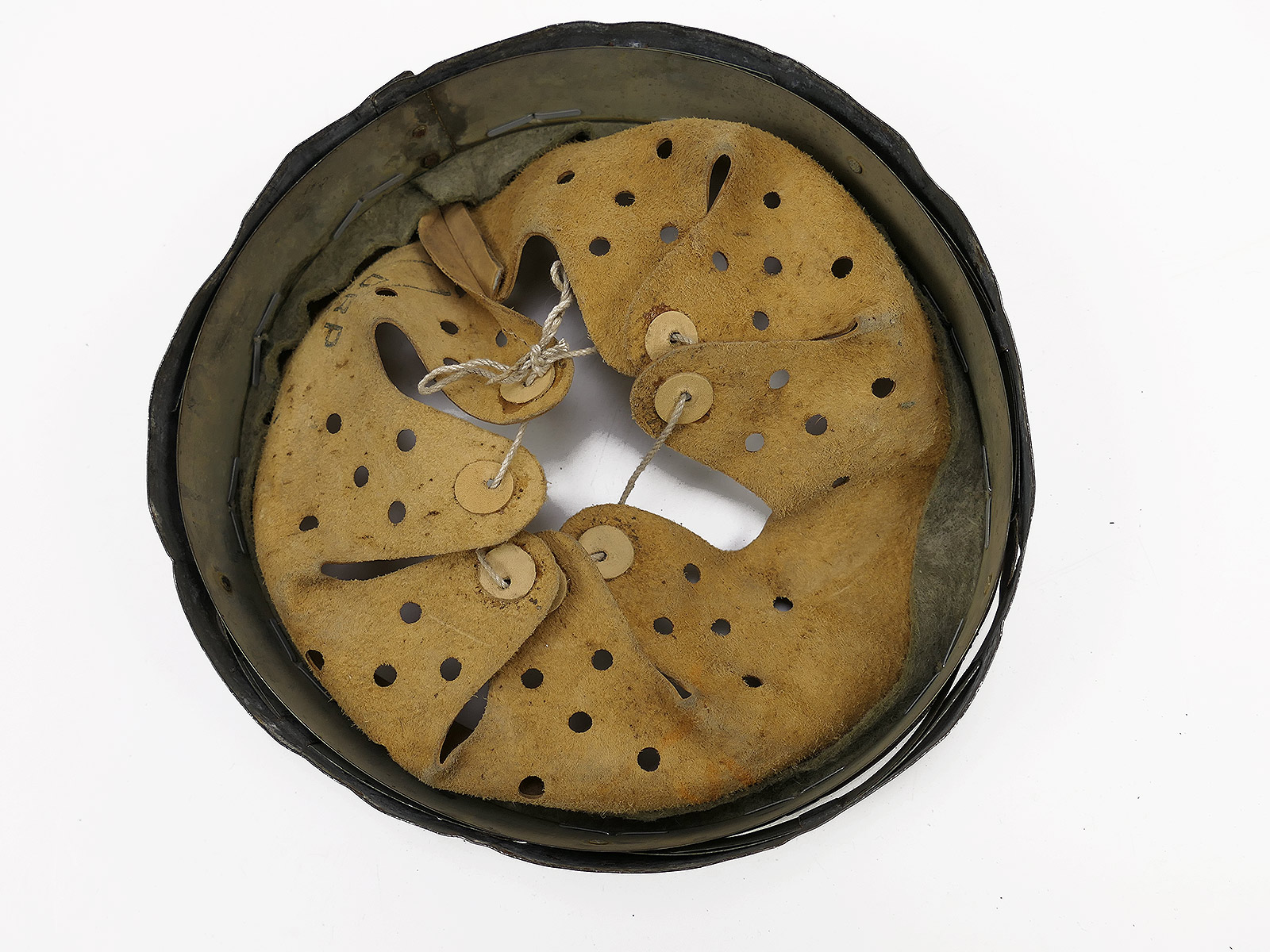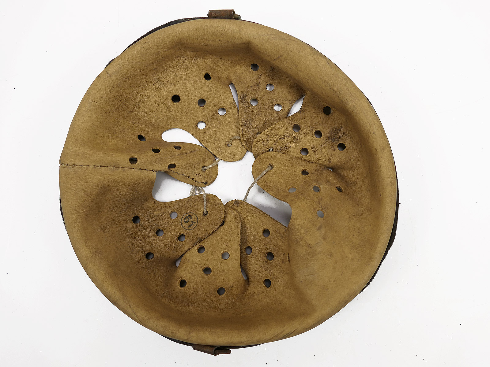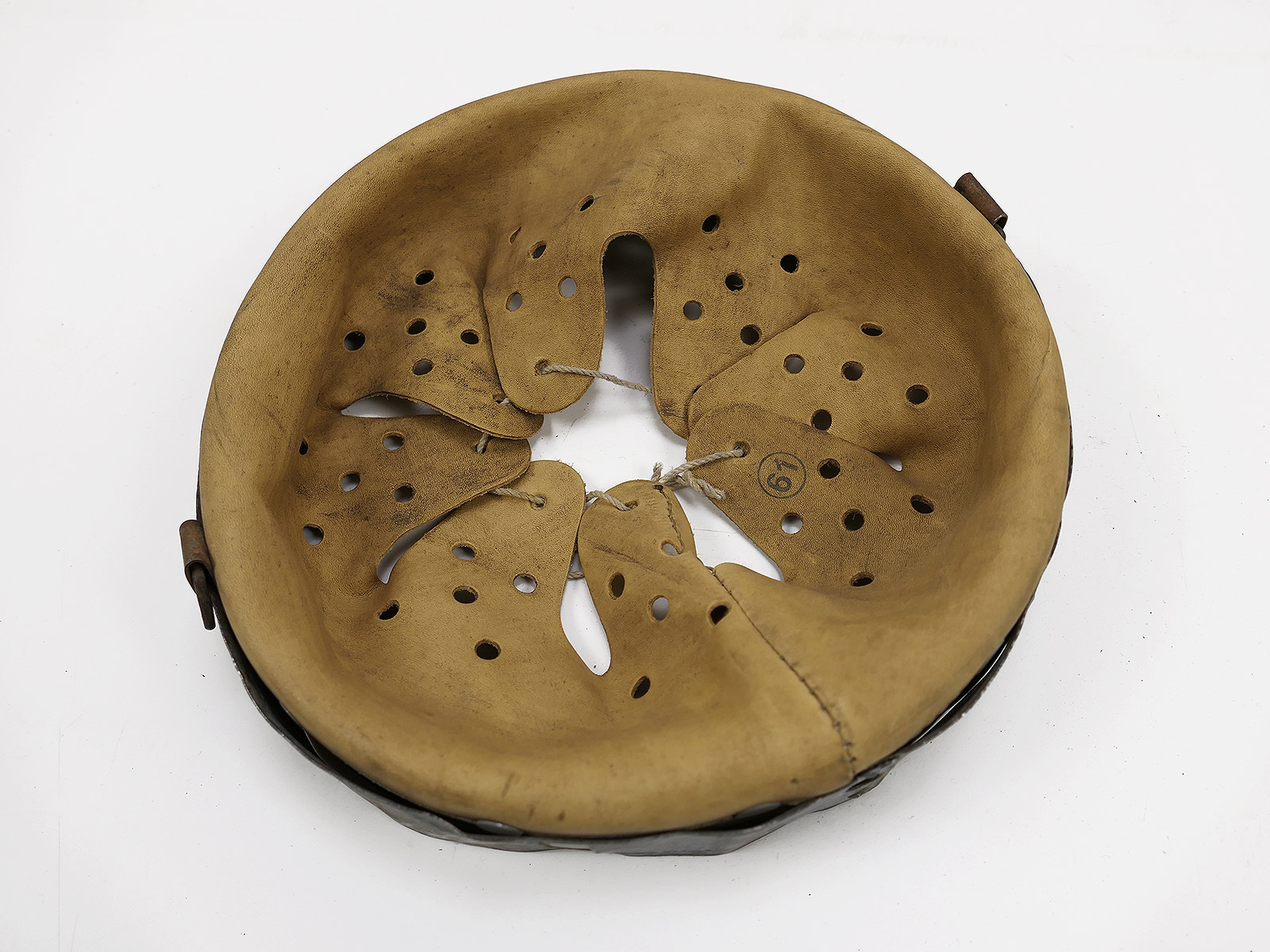 From a museum clearance sale – antique helmet lining – an old collector’s item made partly from original materials.