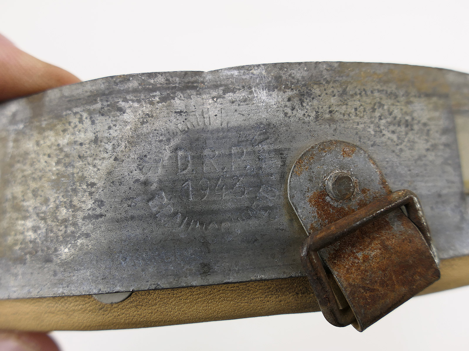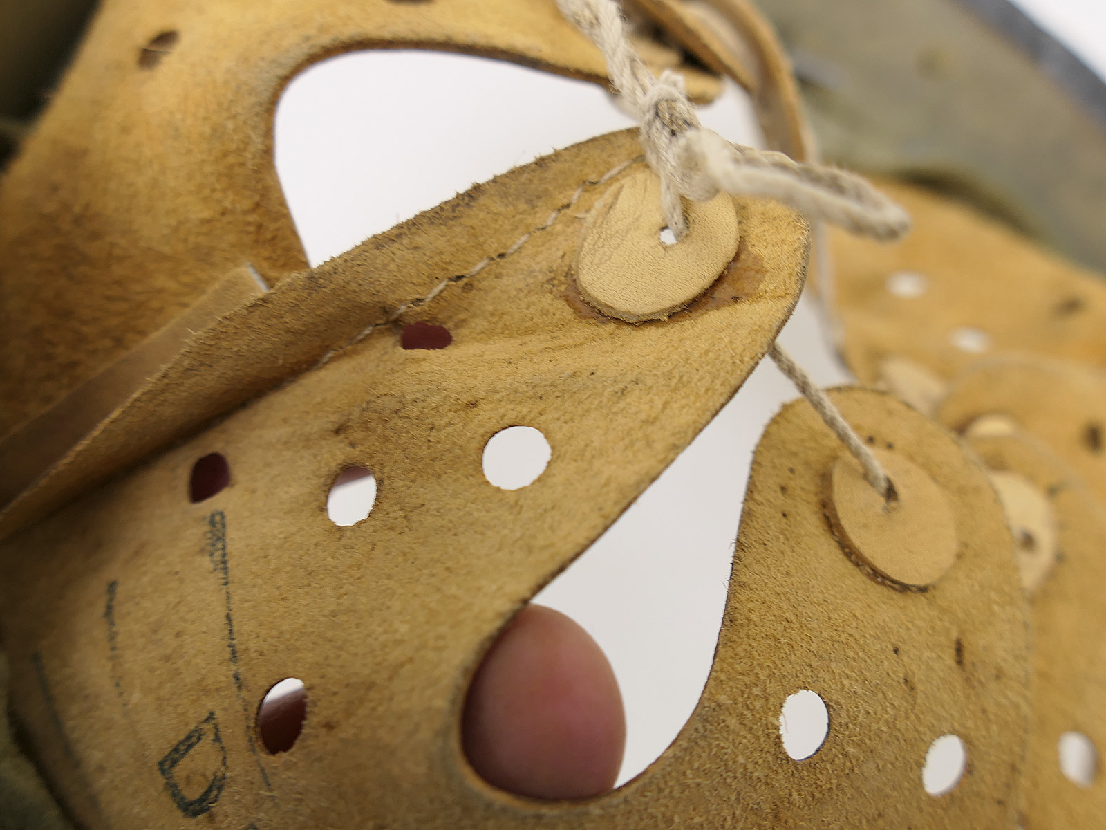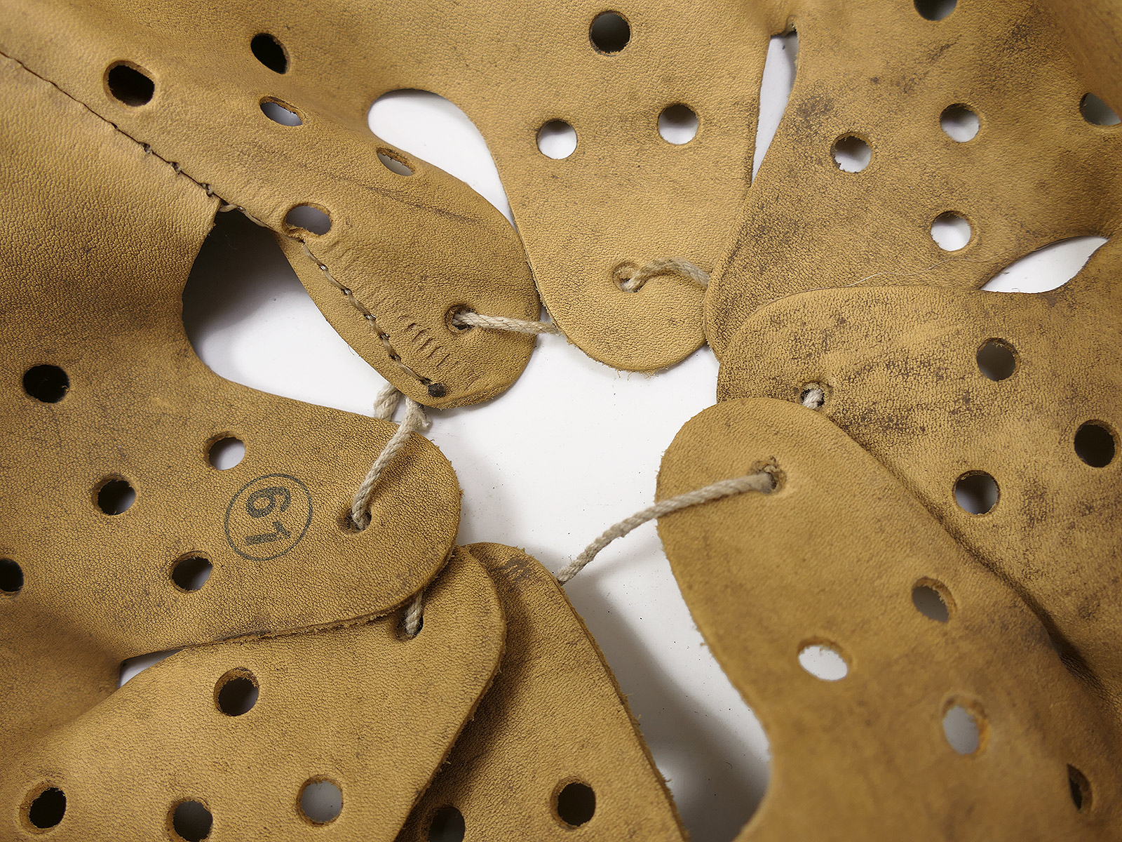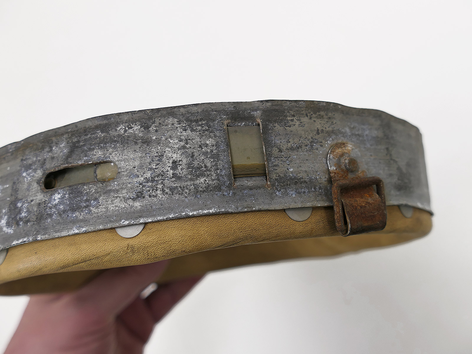From a museum clearance sale – antique helmet lining – an old collector’s item made partly from original materials.