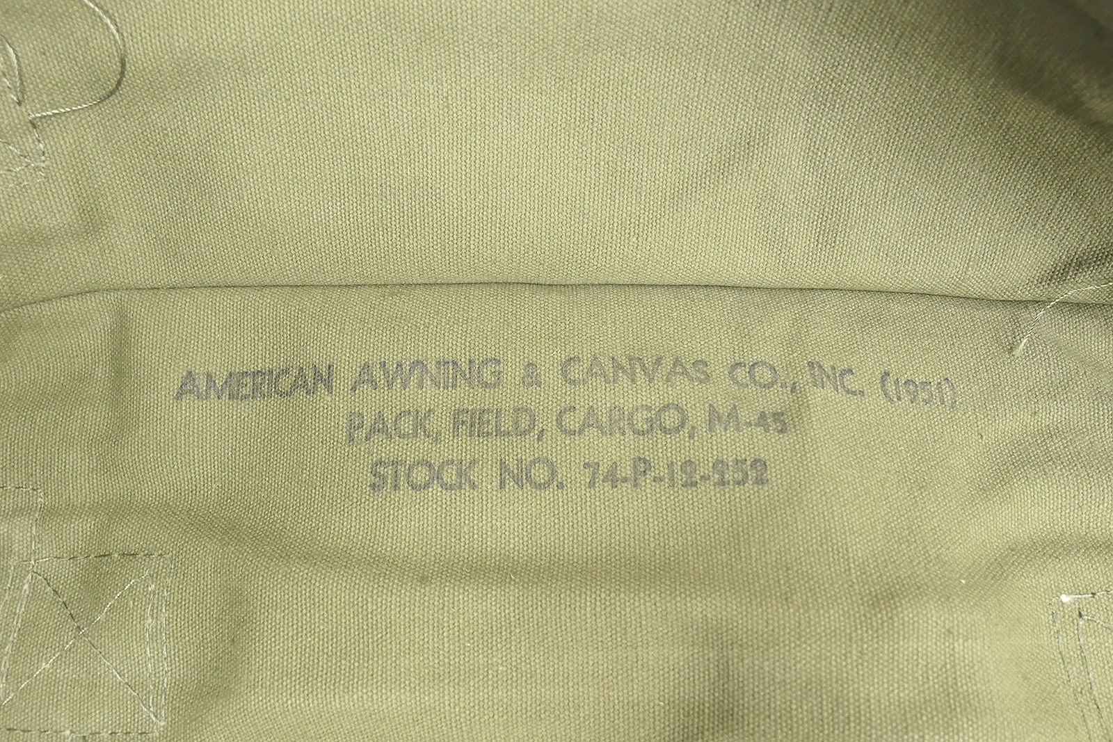 In matching pack Field Cargo M-1945, dated 1950, with Red Cross and thus converted into a medic bag, used condition.