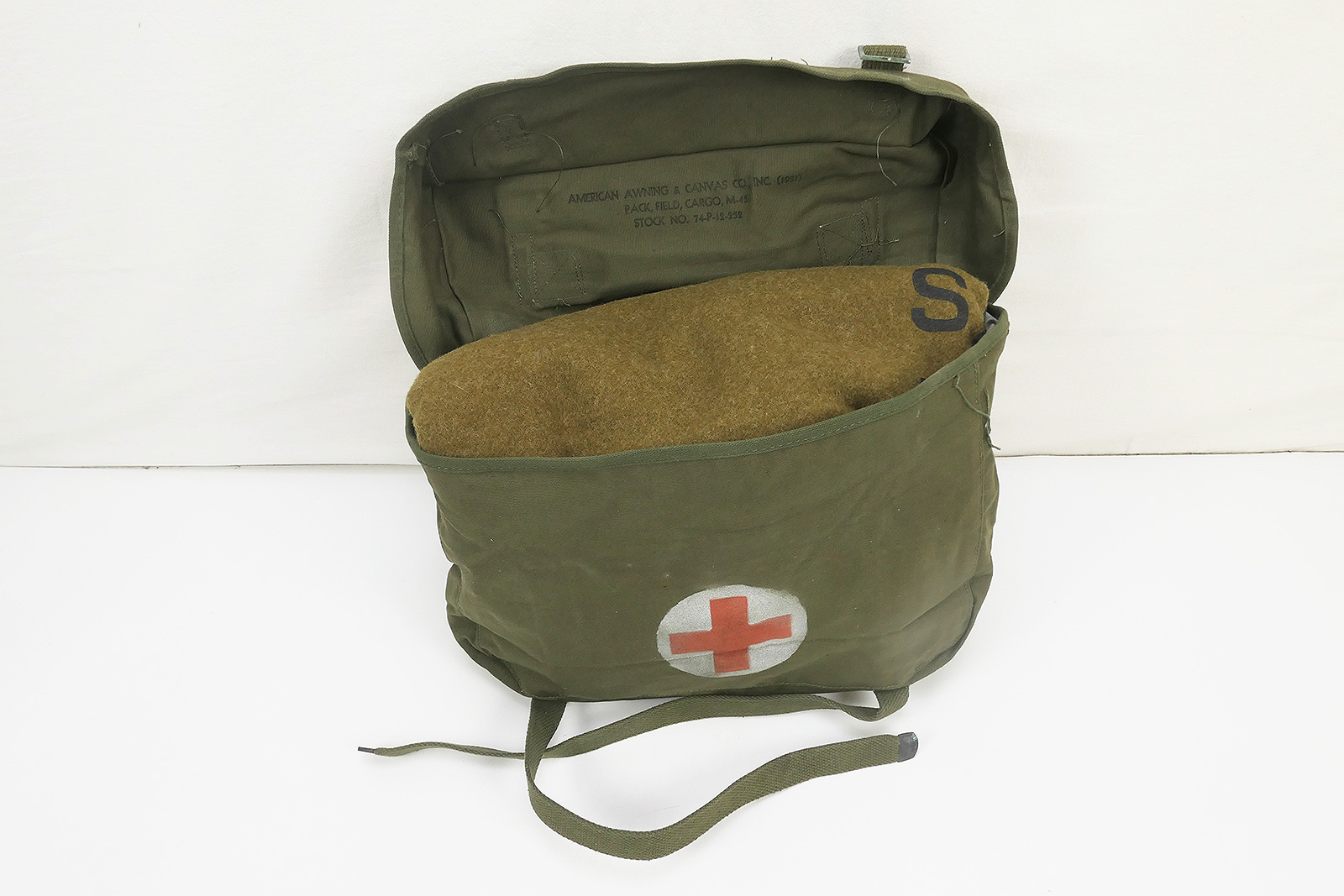 #3 US Medic Pack Field Cargo M-1945 Bag + Wool virgin Blanket Aesculab Blanket Red Cross