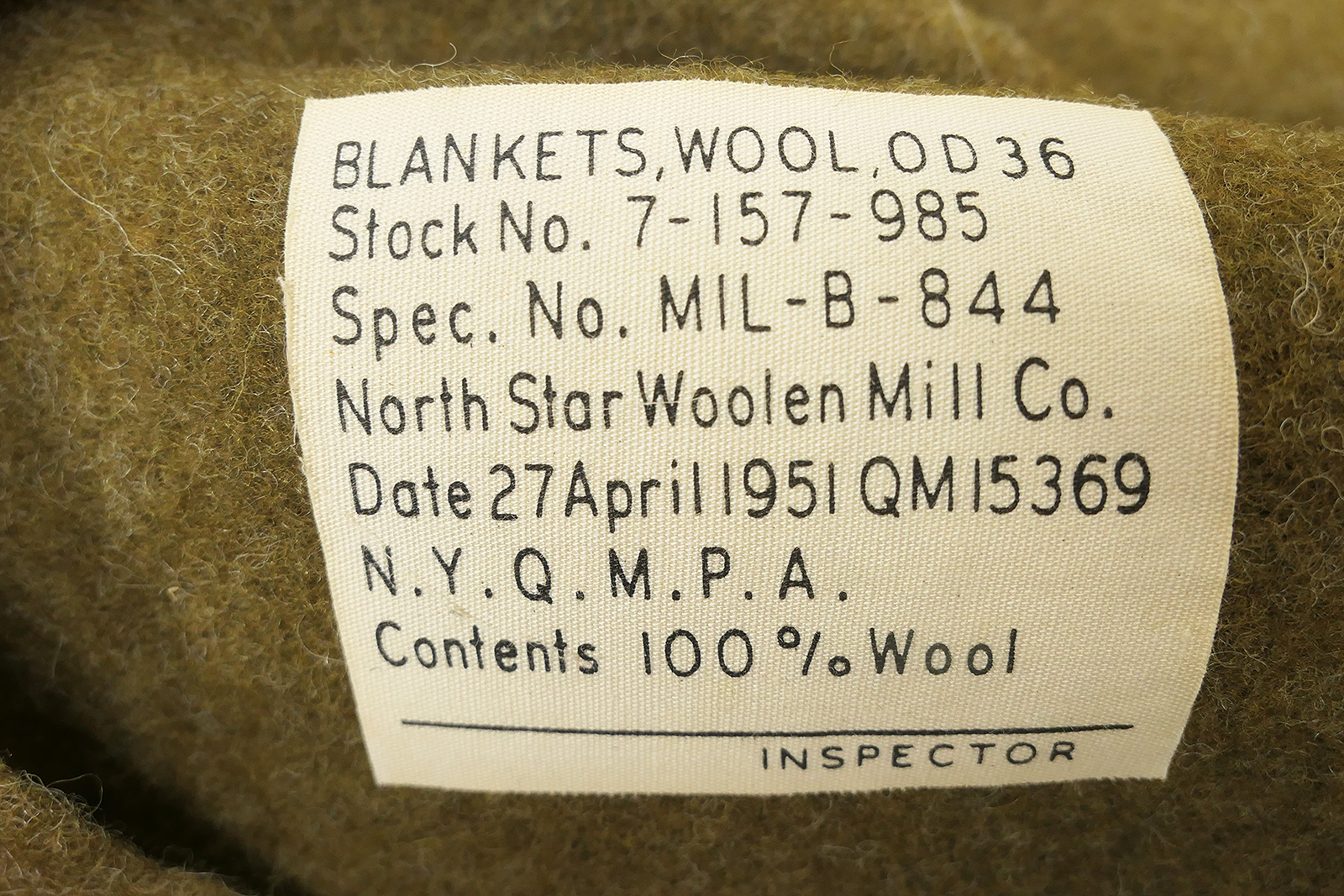Original US Army Wool virgin Blanket Aesculab OD, used condition with some small holes (see pictures), dated 1951.
