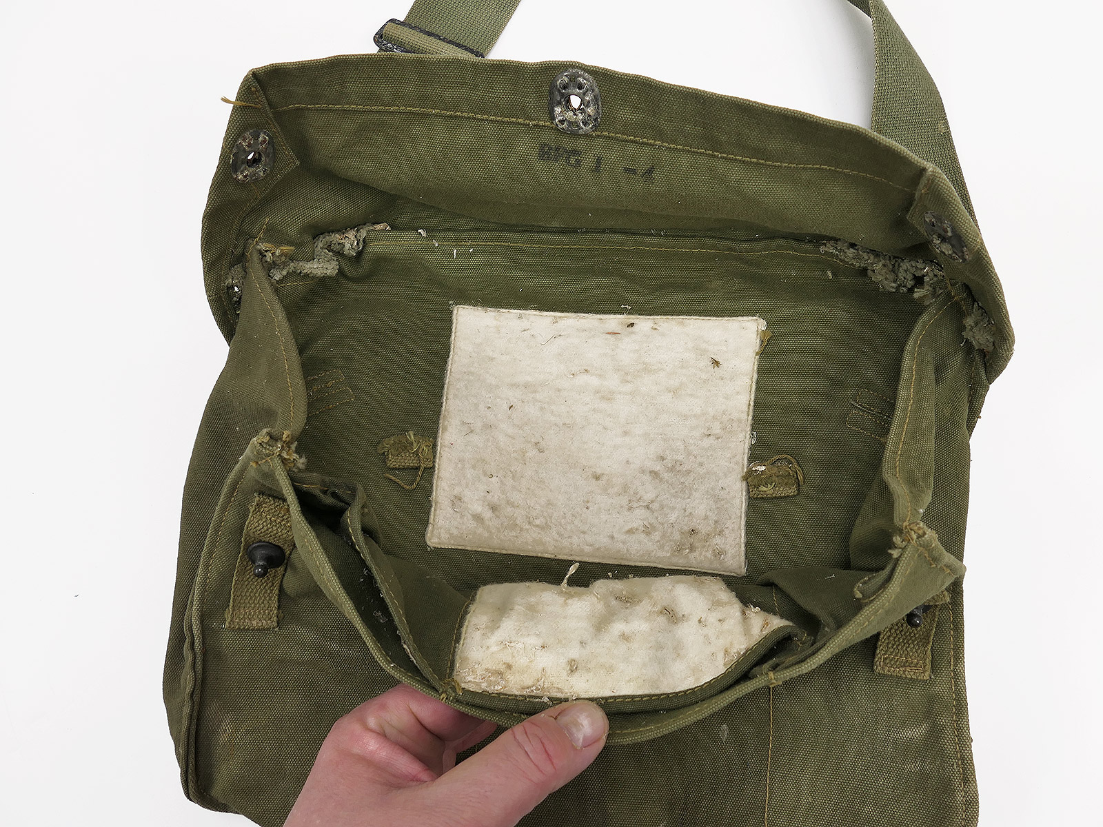 #4 Original US Army WW2 Lightweight Gas Mask Bag / Collection BATTLE WORN