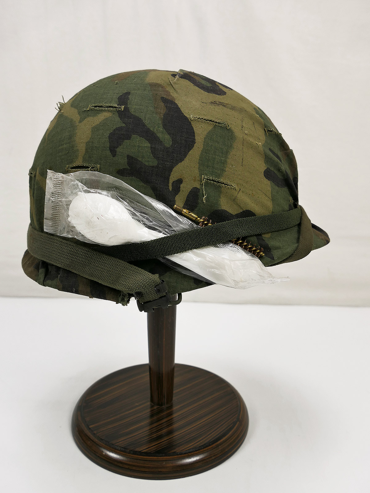 #4 US ARMY M1 steel helmet Vietnam with ERDL helmet cover and accessories NAM