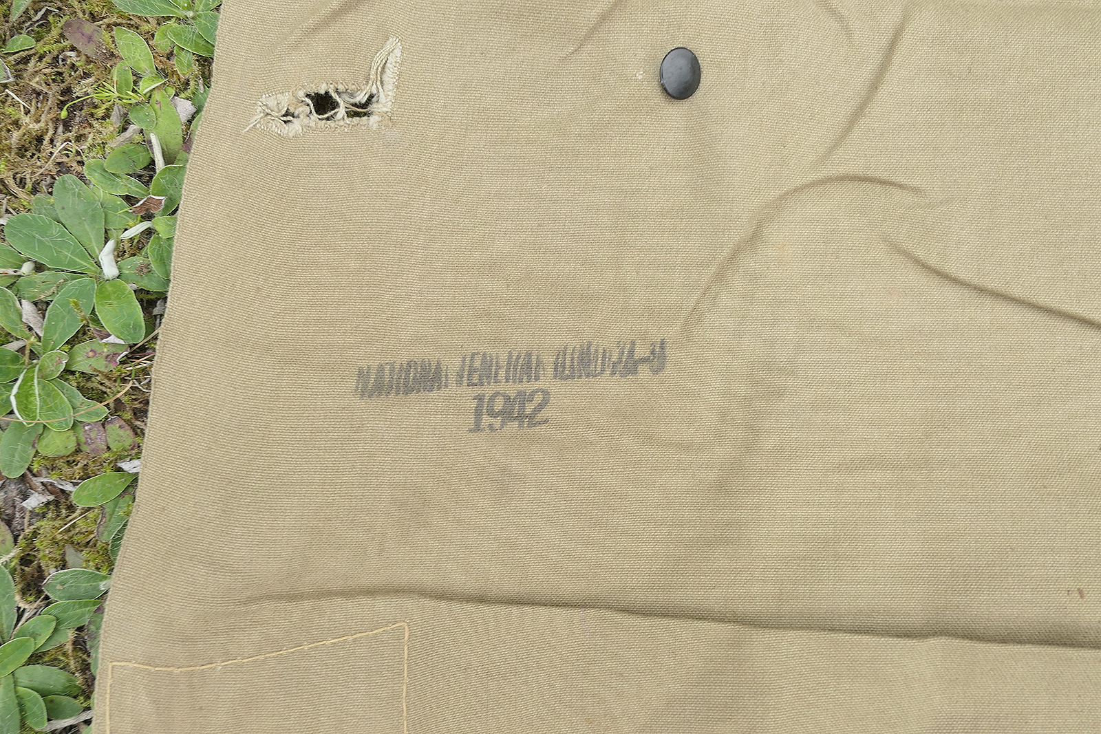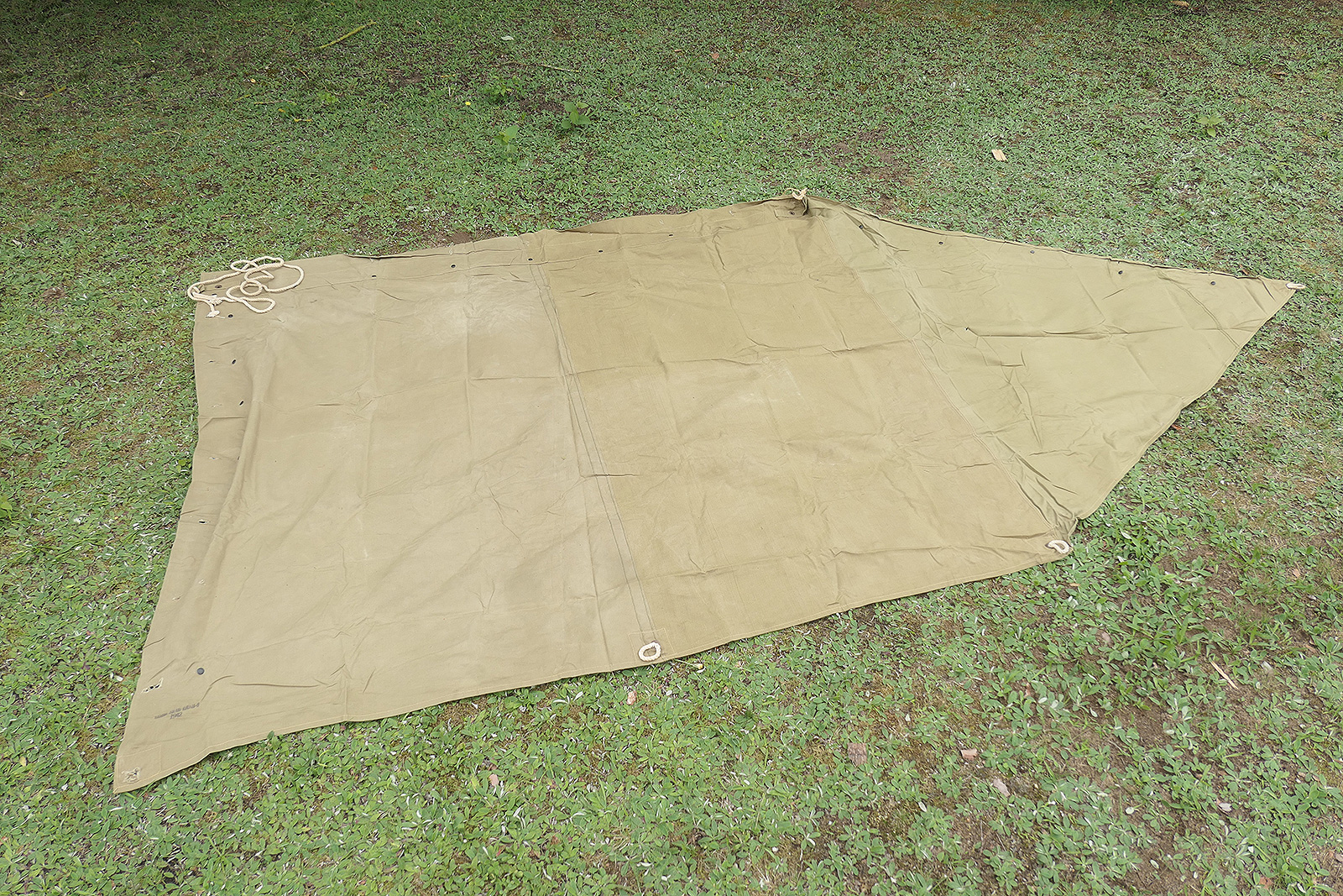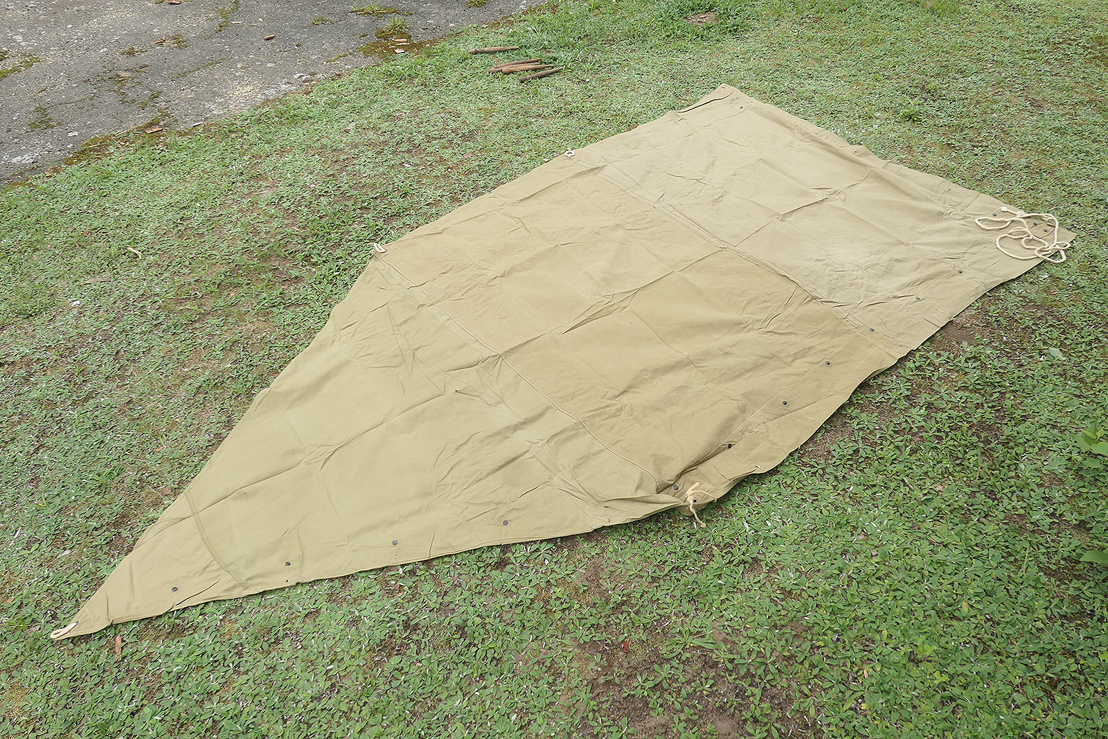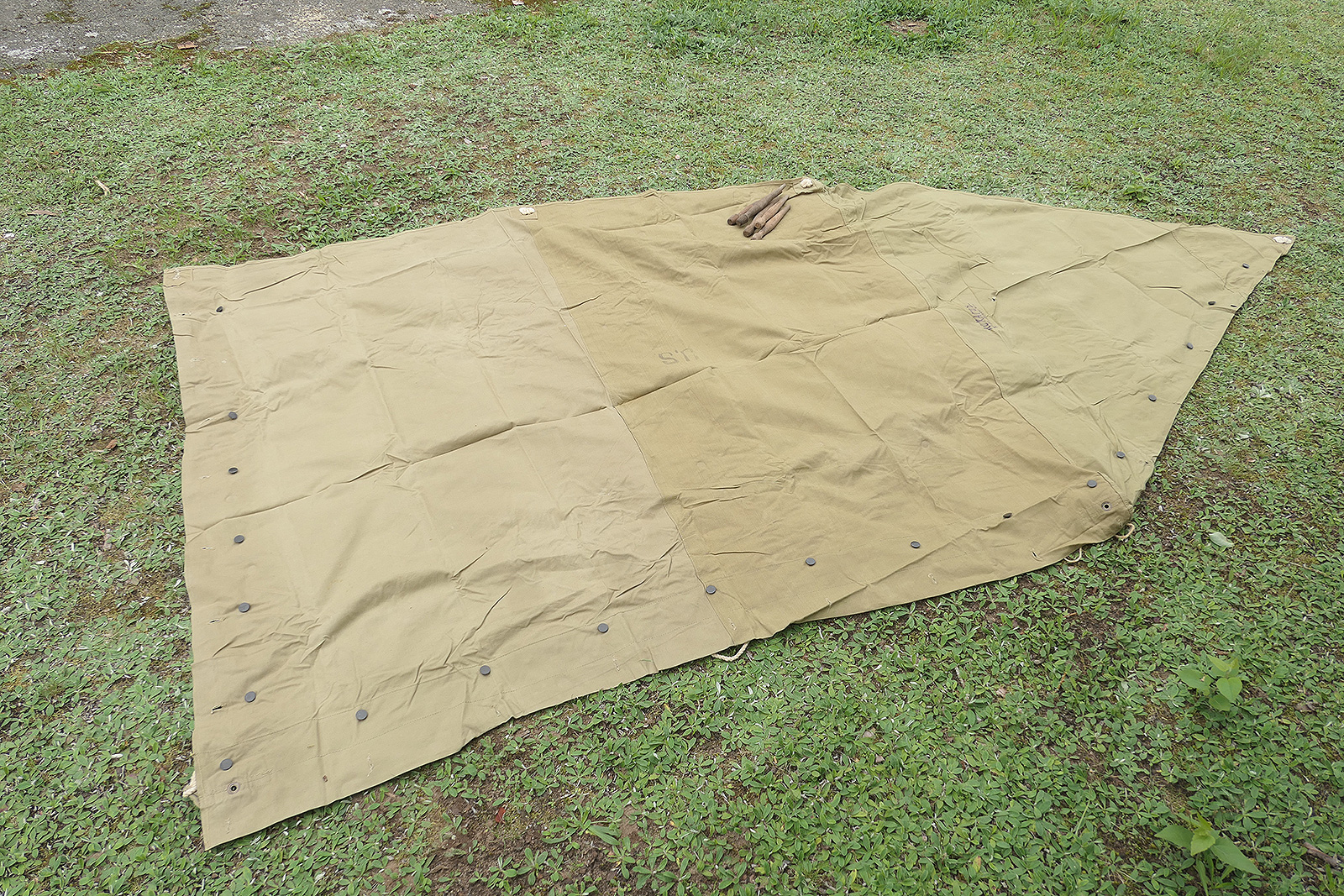 #4 US tent canvas shelter tent half 1942 + 5x wooden stakes