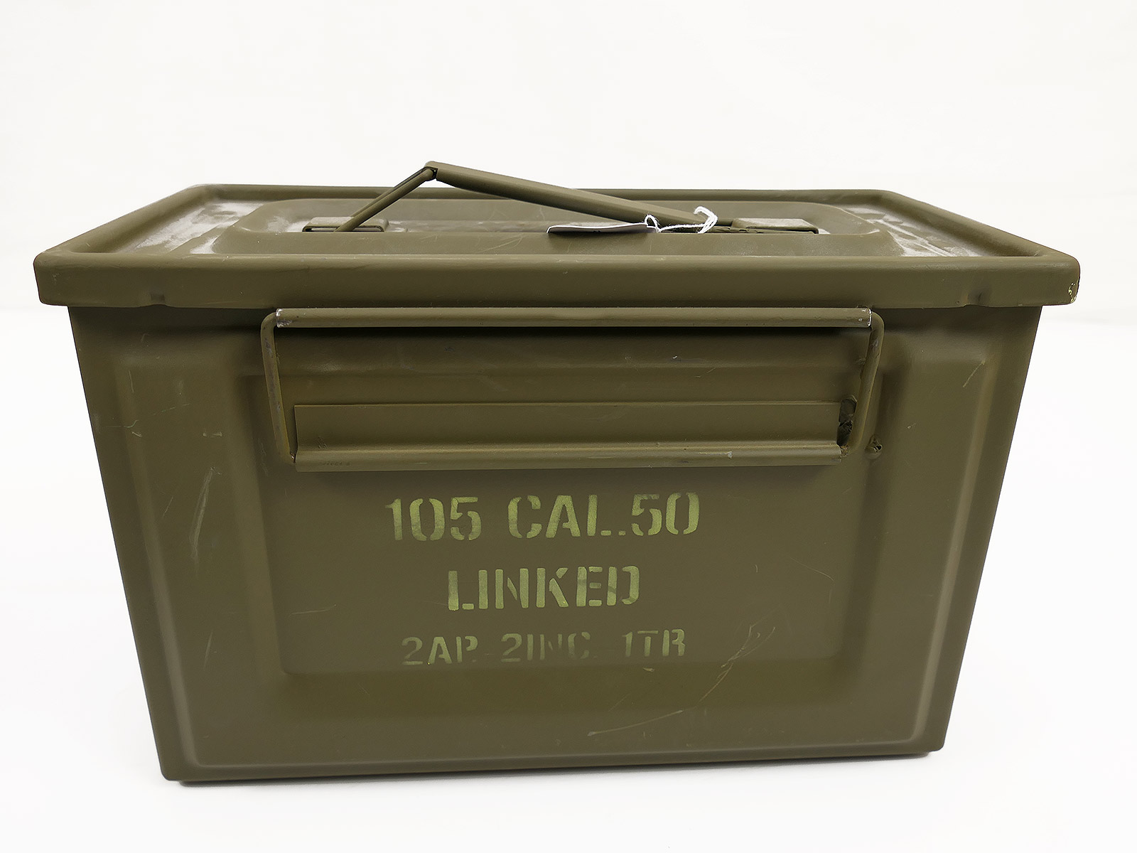 Properties "#6 US Army Ammunition Box .50 calibre M2 ammunition box, metal ammunition box, belt box"