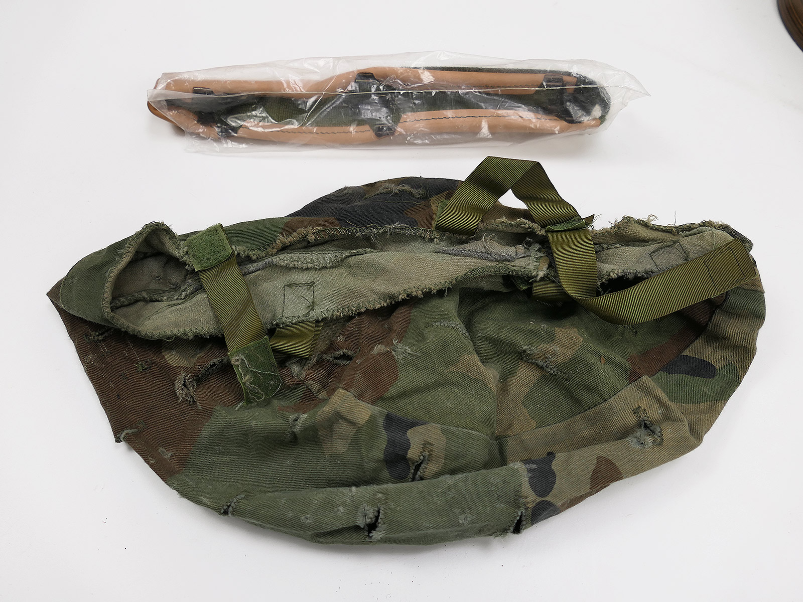 As pictured, with chin strap, replacement sweatband, cateye rubber, desert and woodland camouflage cover.