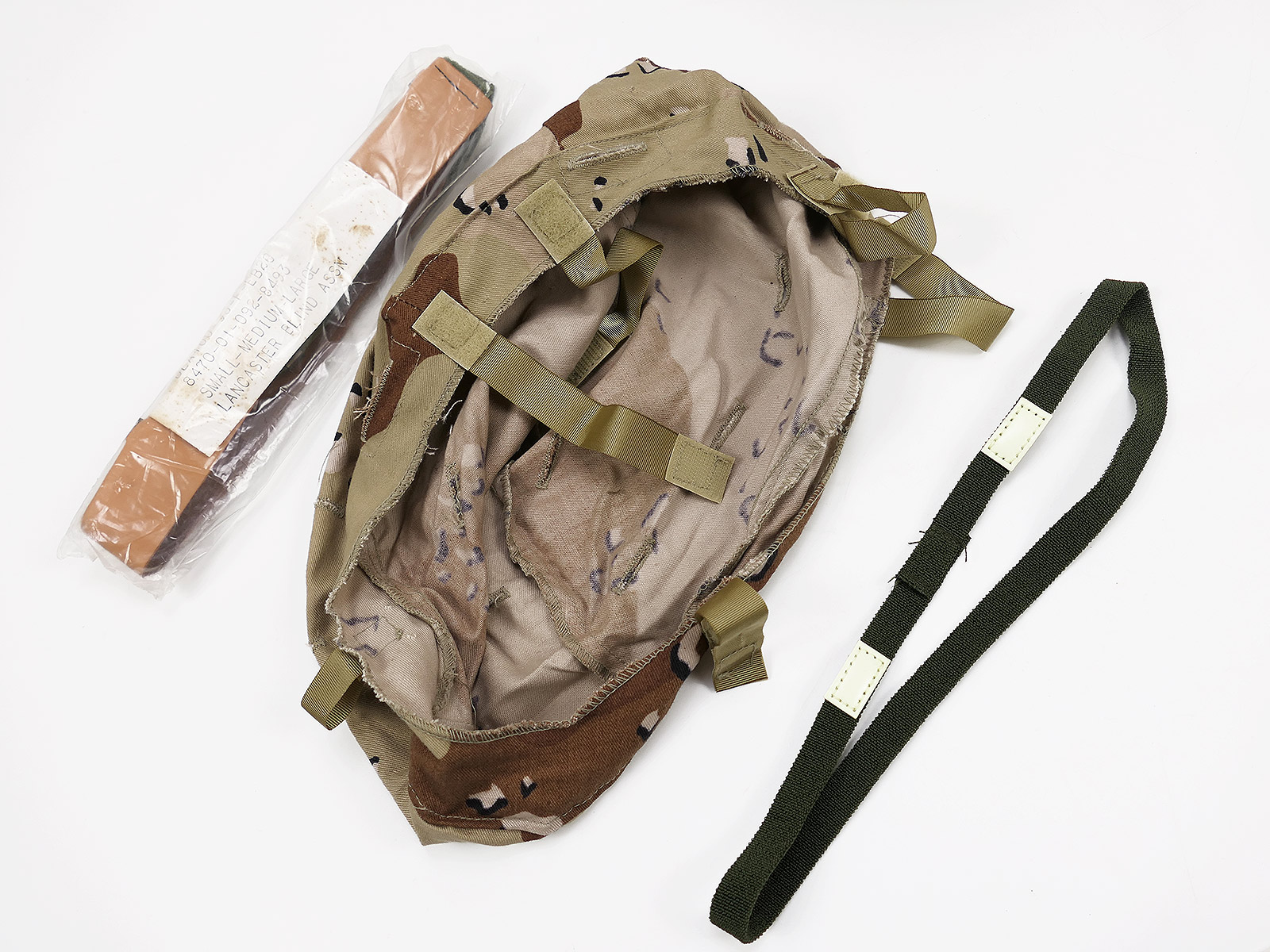 As pictured, with chin strap, replacement sweatband, cateye rubber, desert camouflage cover.