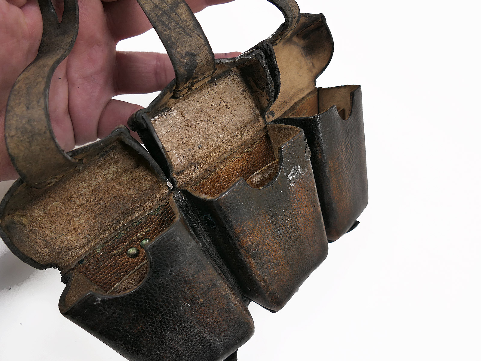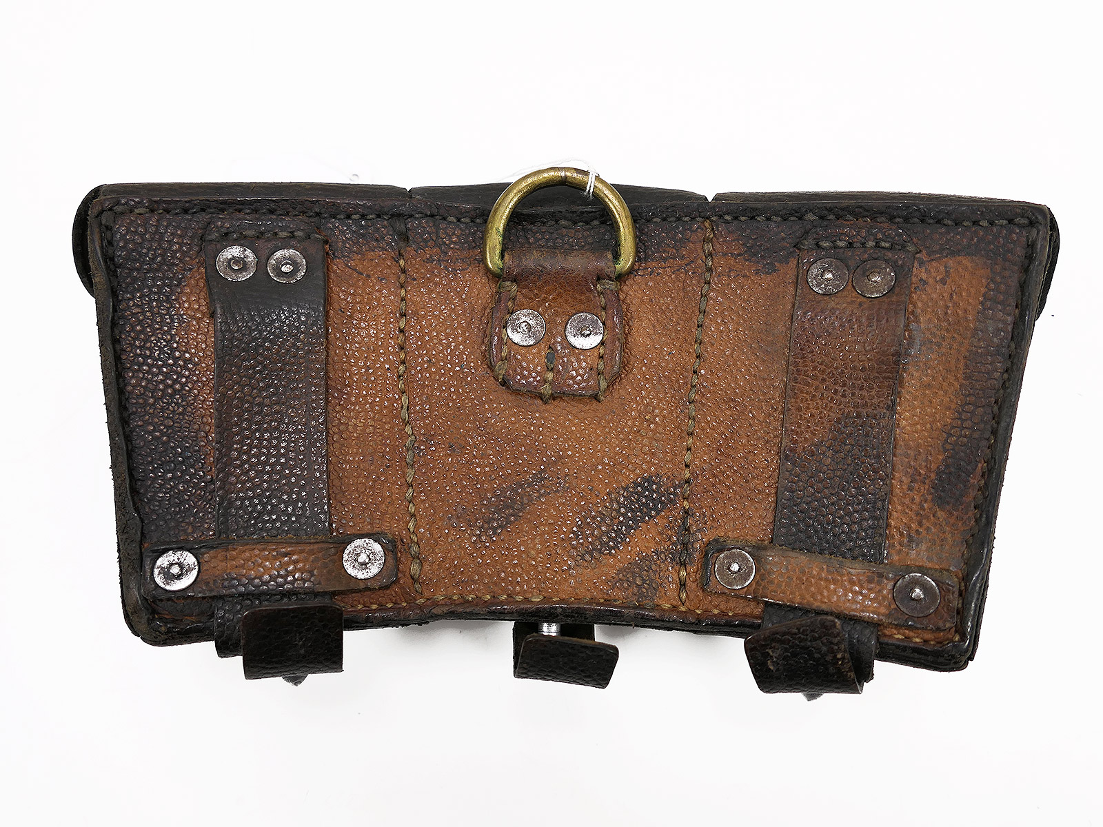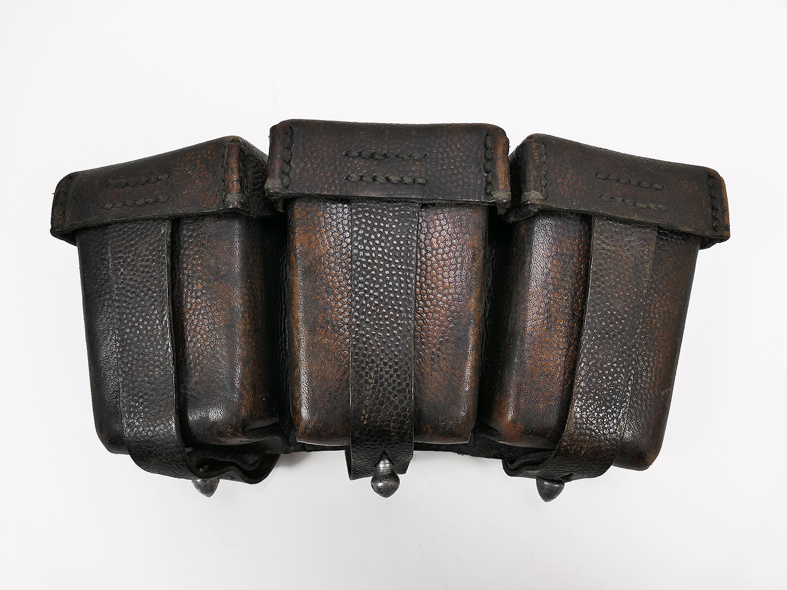 #A Carabiner K98 3 cartridge pouch BROWN ORIGINAL blackened with inner dividers