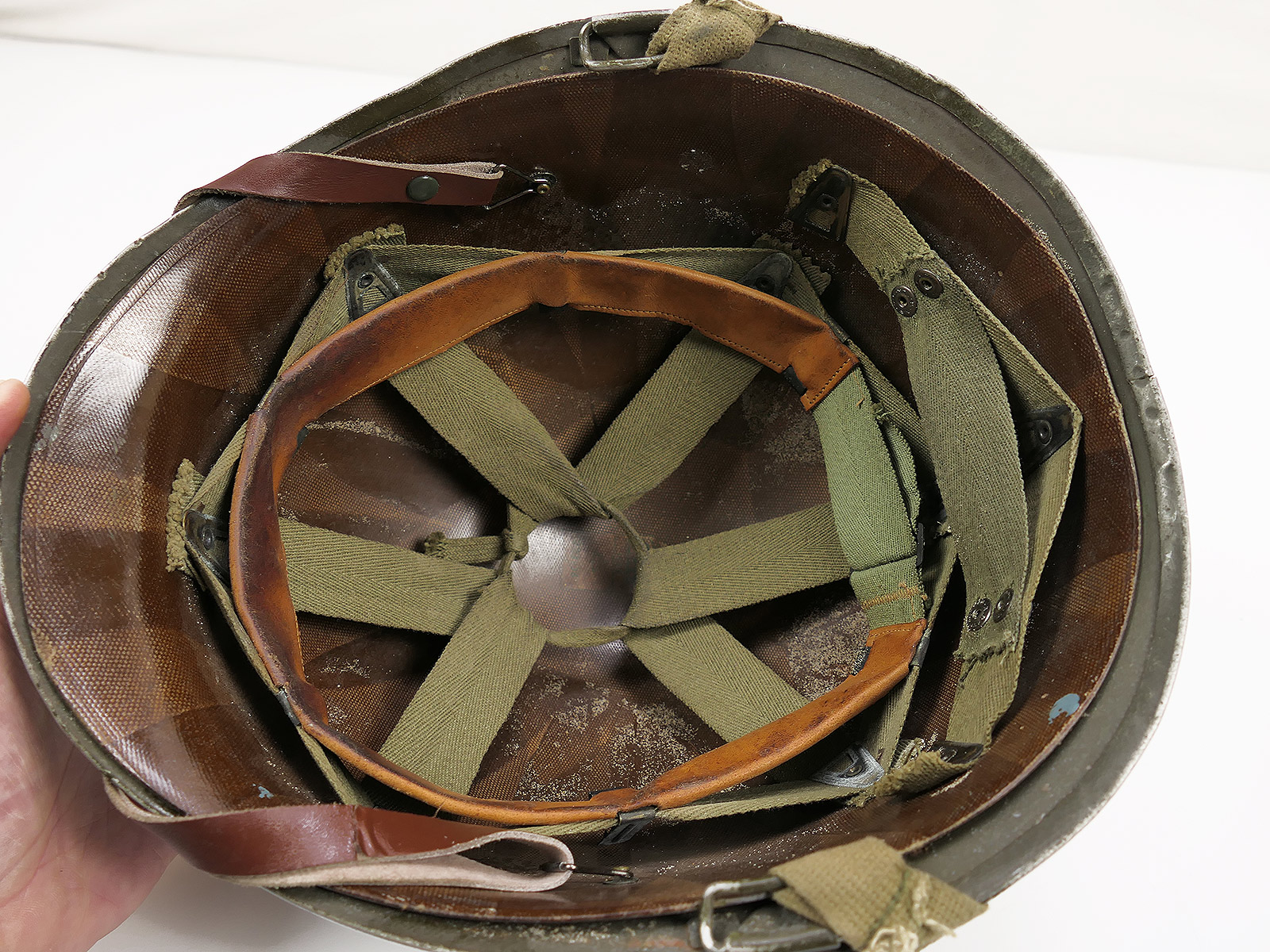 US M1 steel helmet "Special Engineer Unit", post-war bell, with very nice 50s liner and 2 chin straps