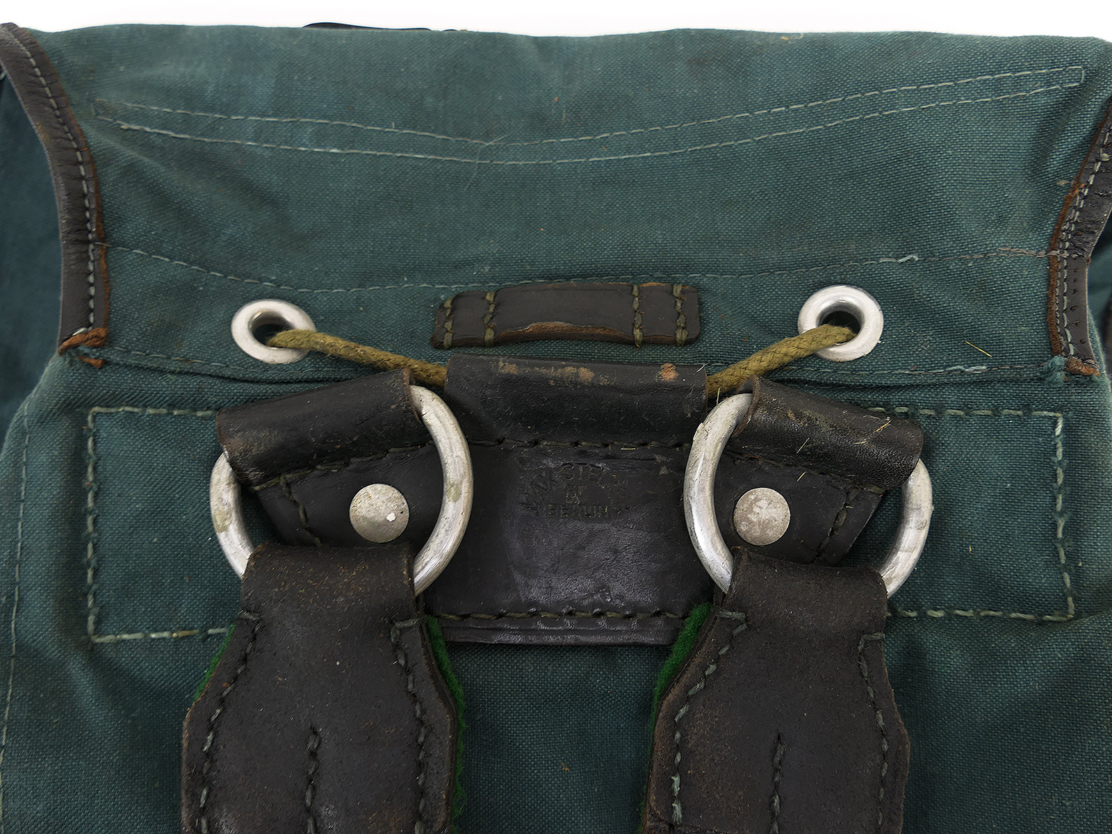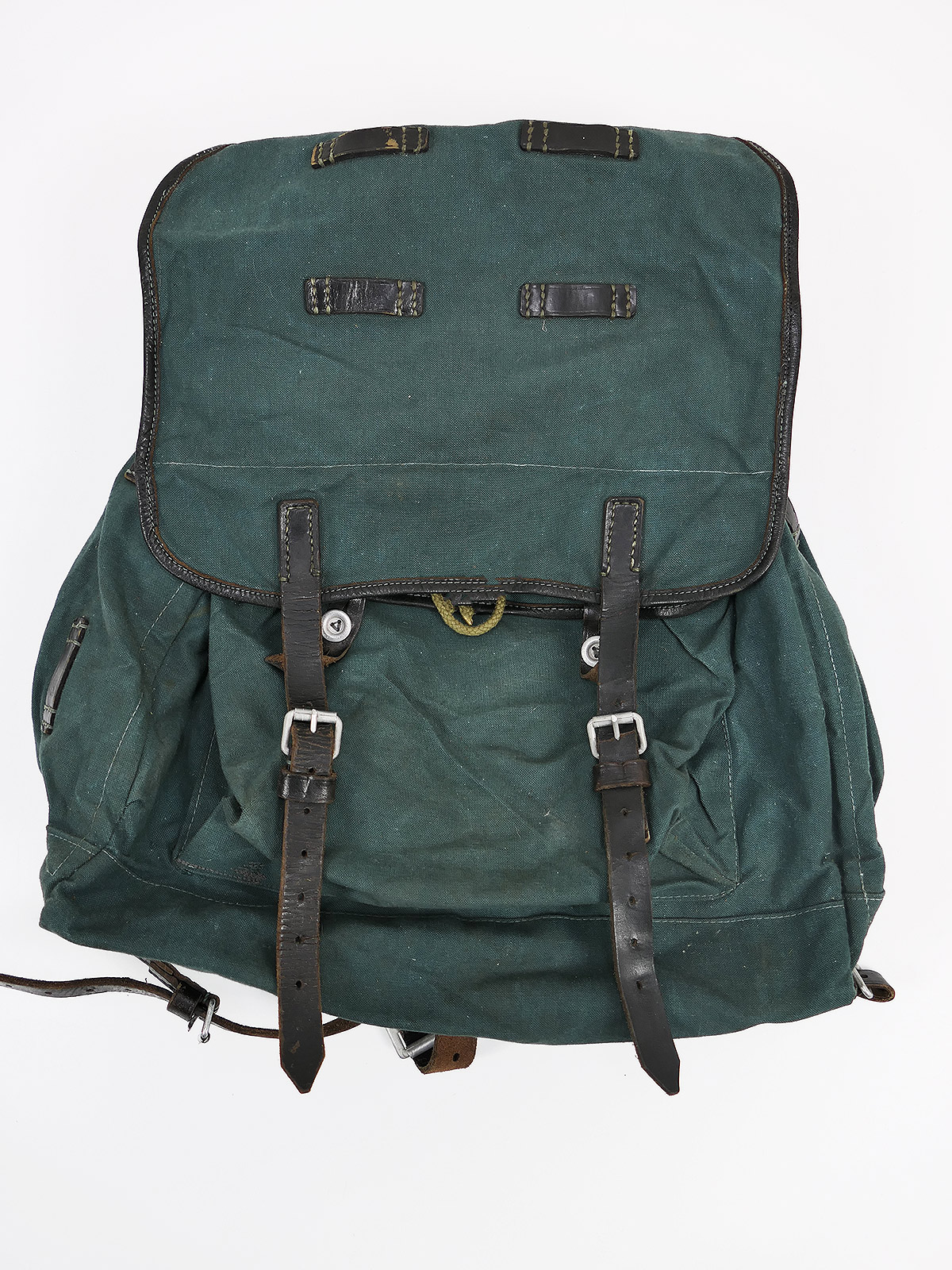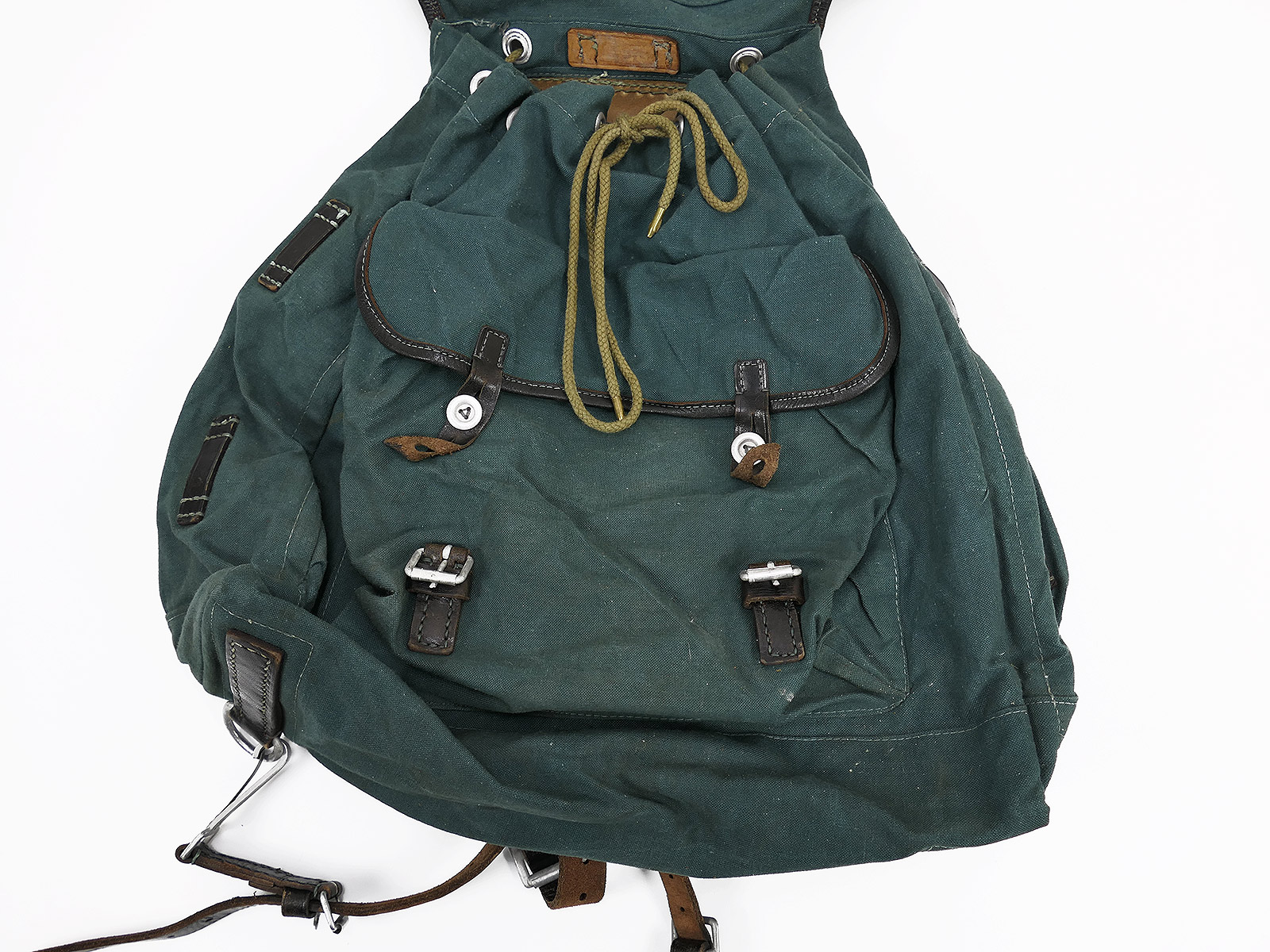Vintage military rucksack, greenish colour, made of robust material, top workmanship.