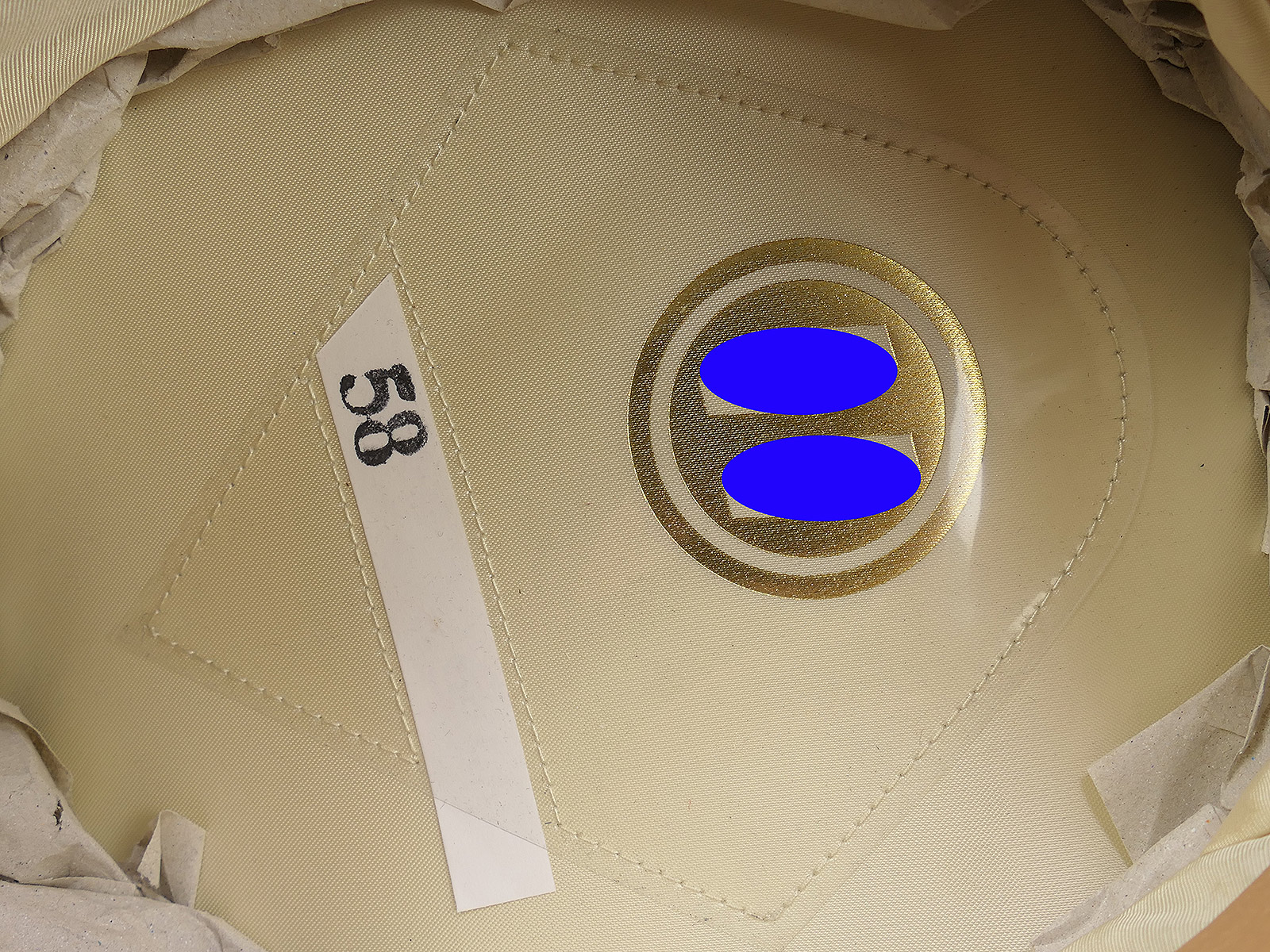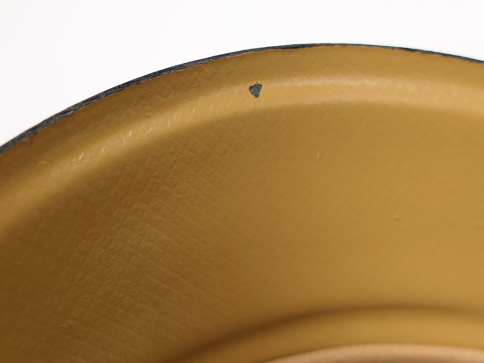 The inner lining is made of heavy artificial silk. The logo is embossed directly onto the base of the lining.