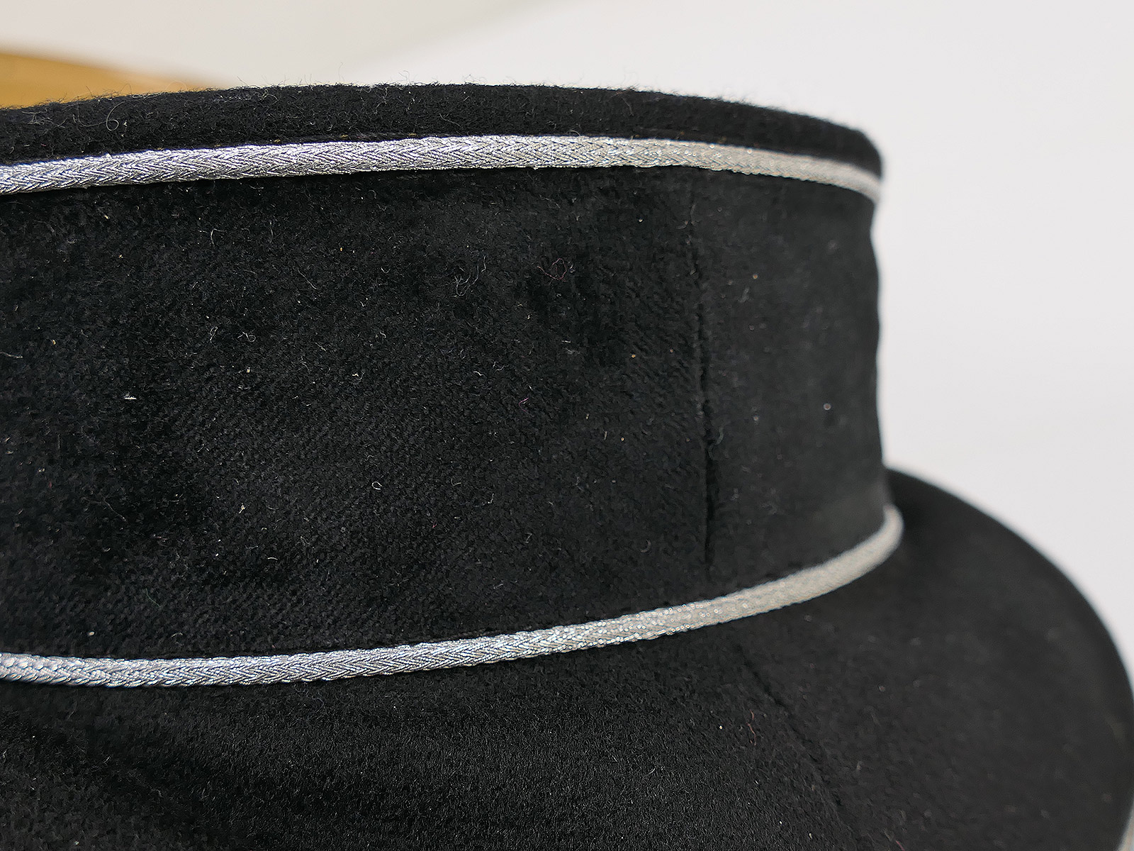 3 aluminium piping. The cap band is made of fine black cotton velvet.