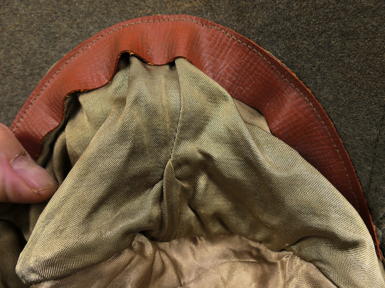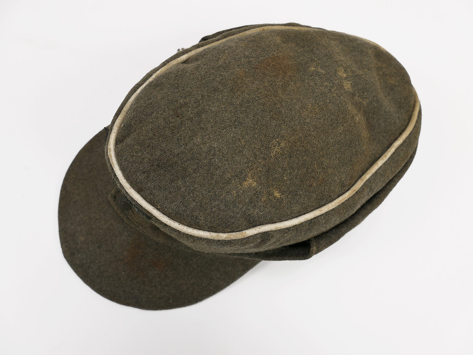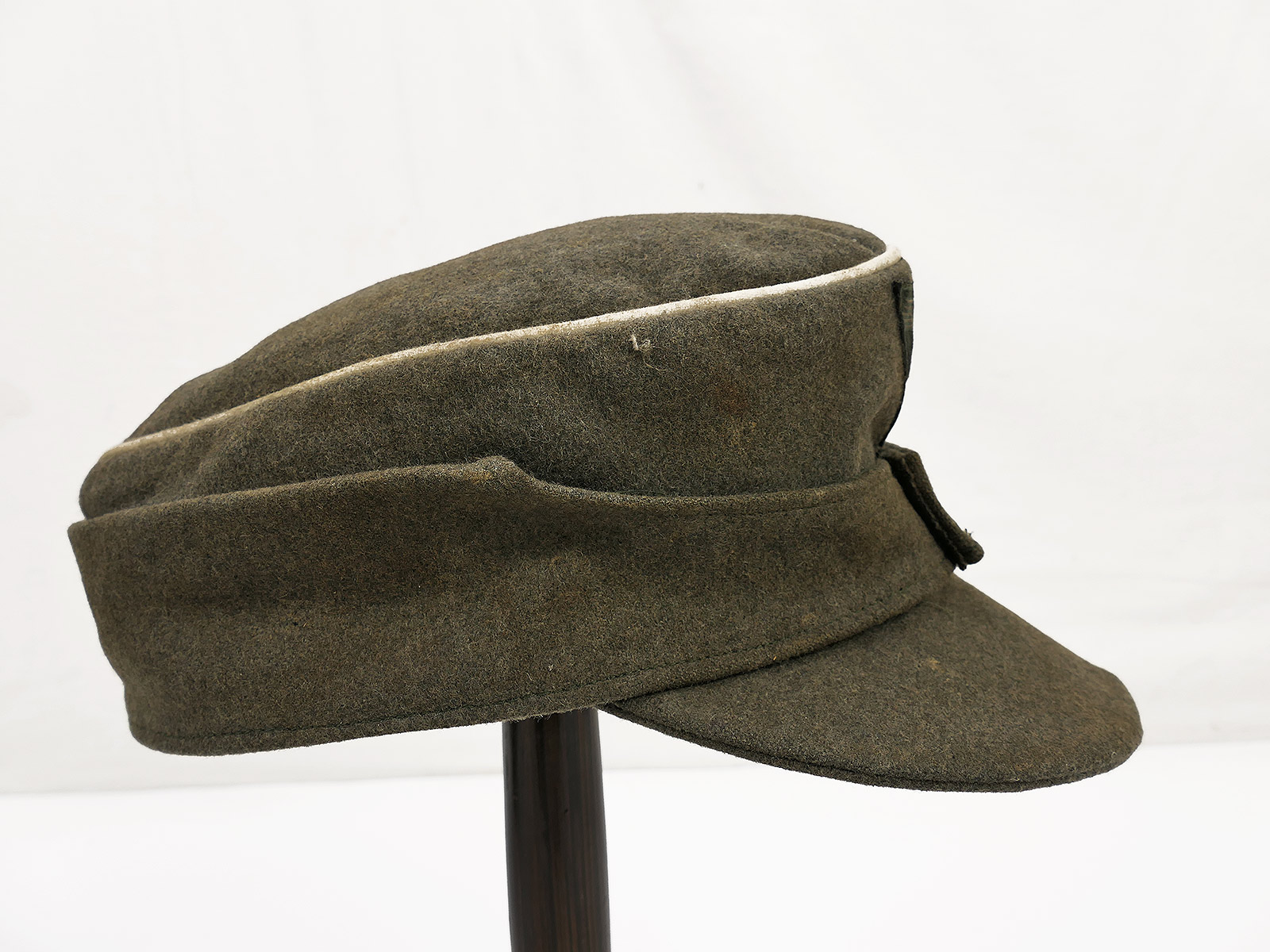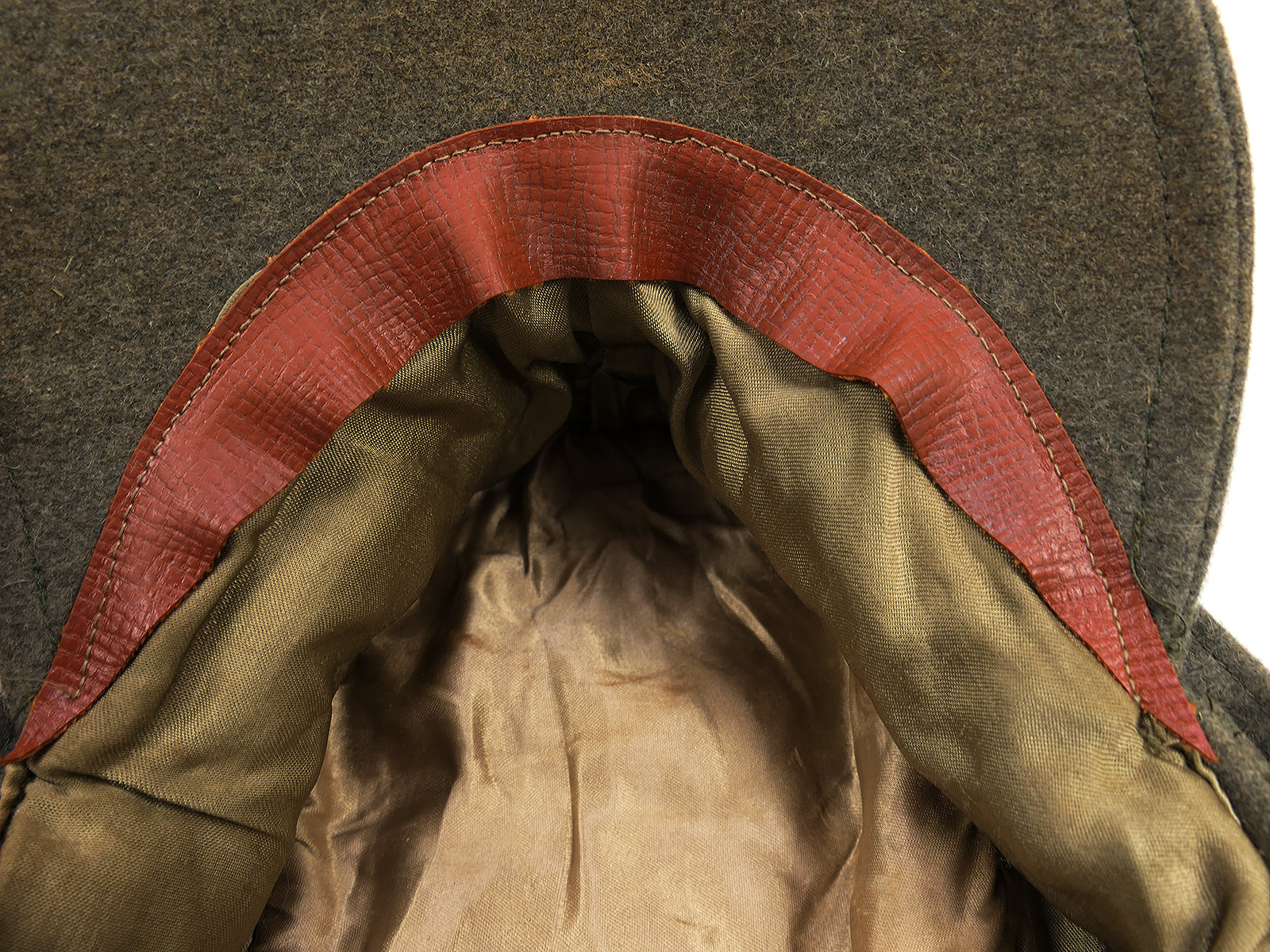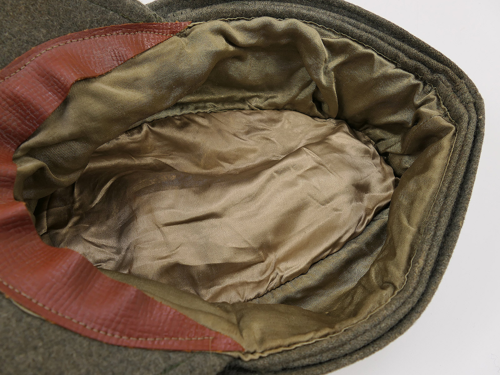 Field cap M-1943, made of vintage woollen cloth, with silky lining and leather sweatband, hand-tailored, with trapeze effects
