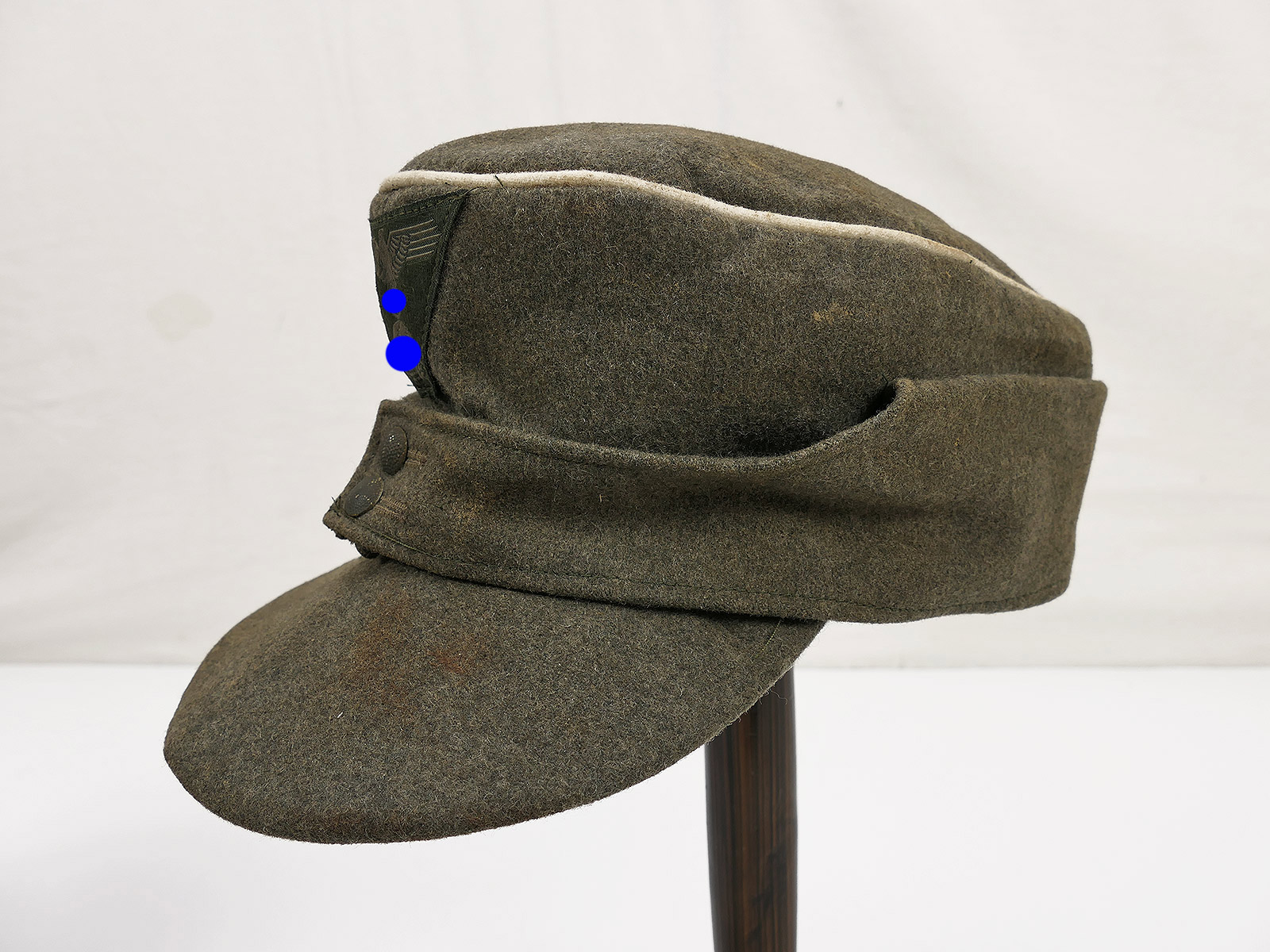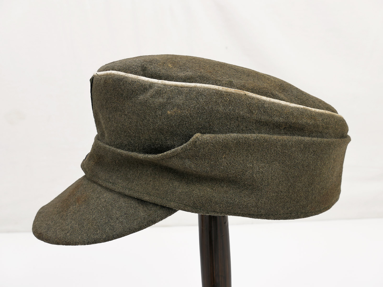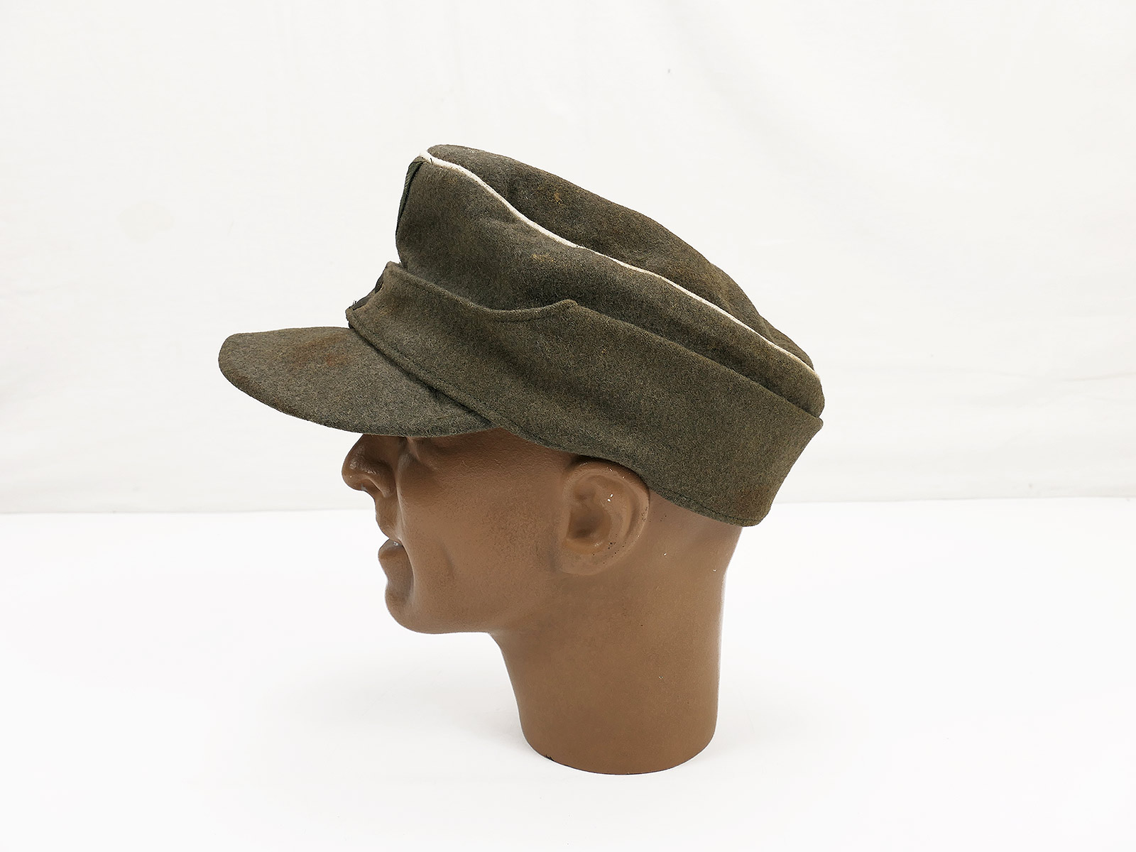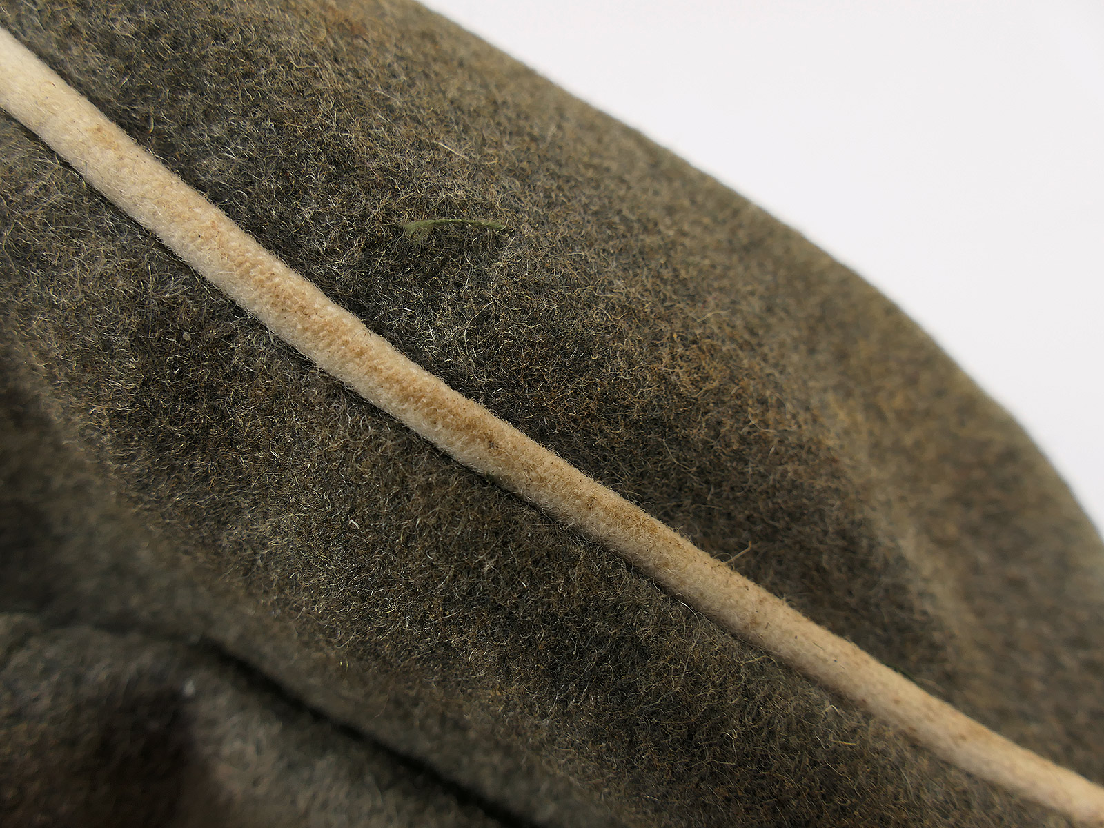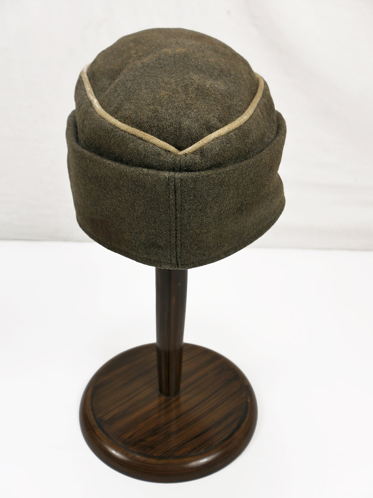 Field cap M-1943, made of vintage woollen cloth, with silky lining and leather sweatband, hand-tailored, with trapeze effects