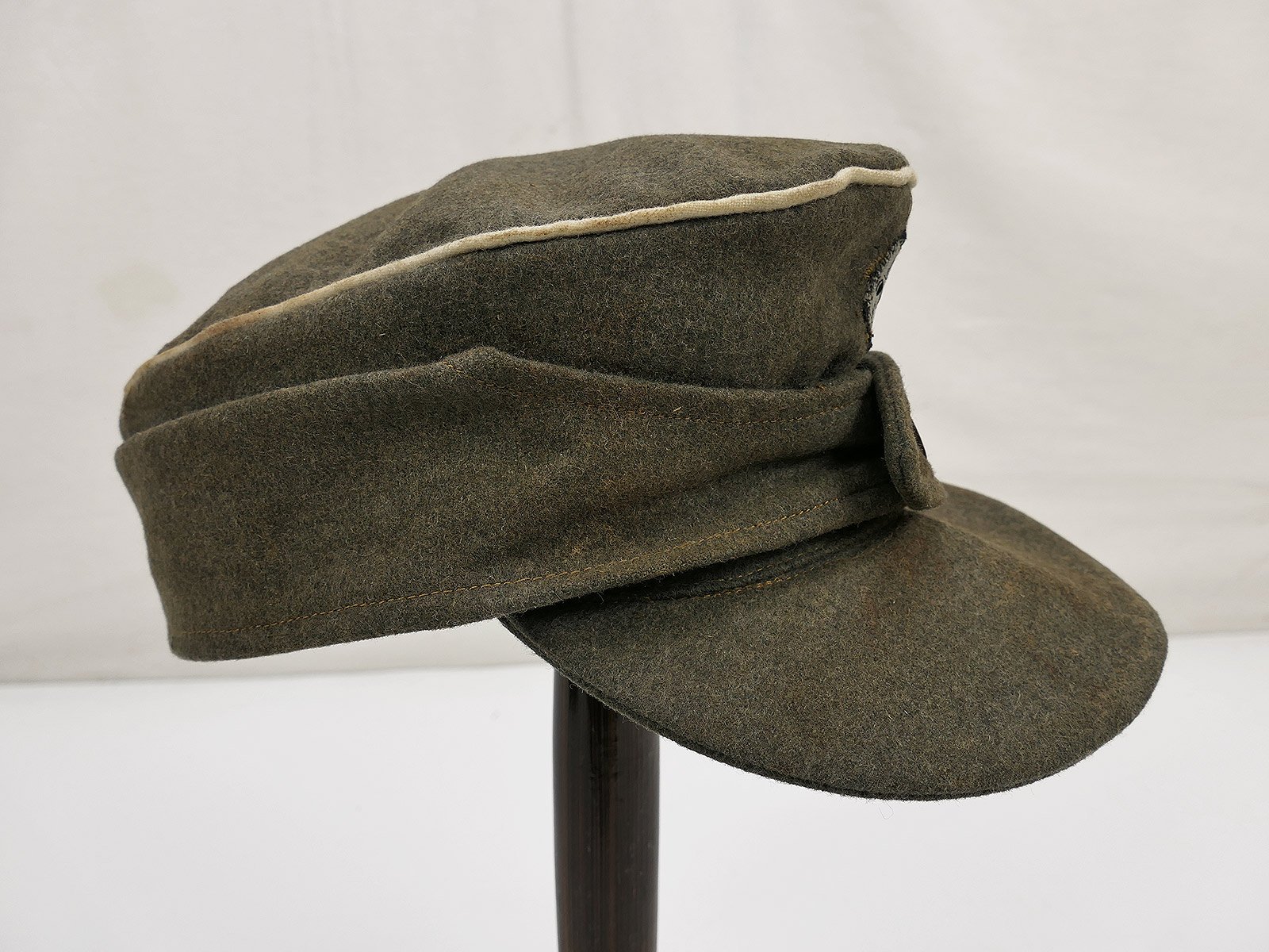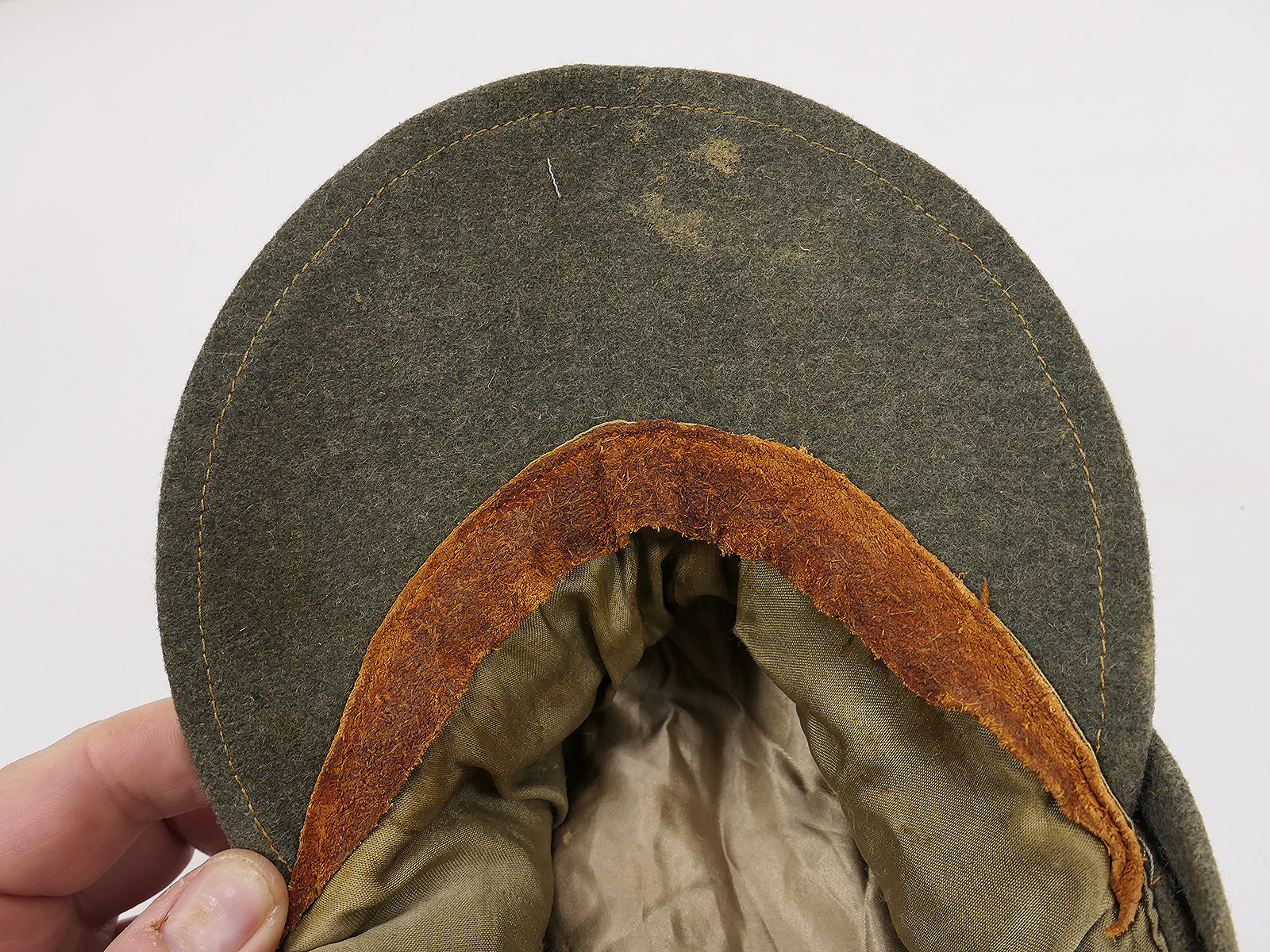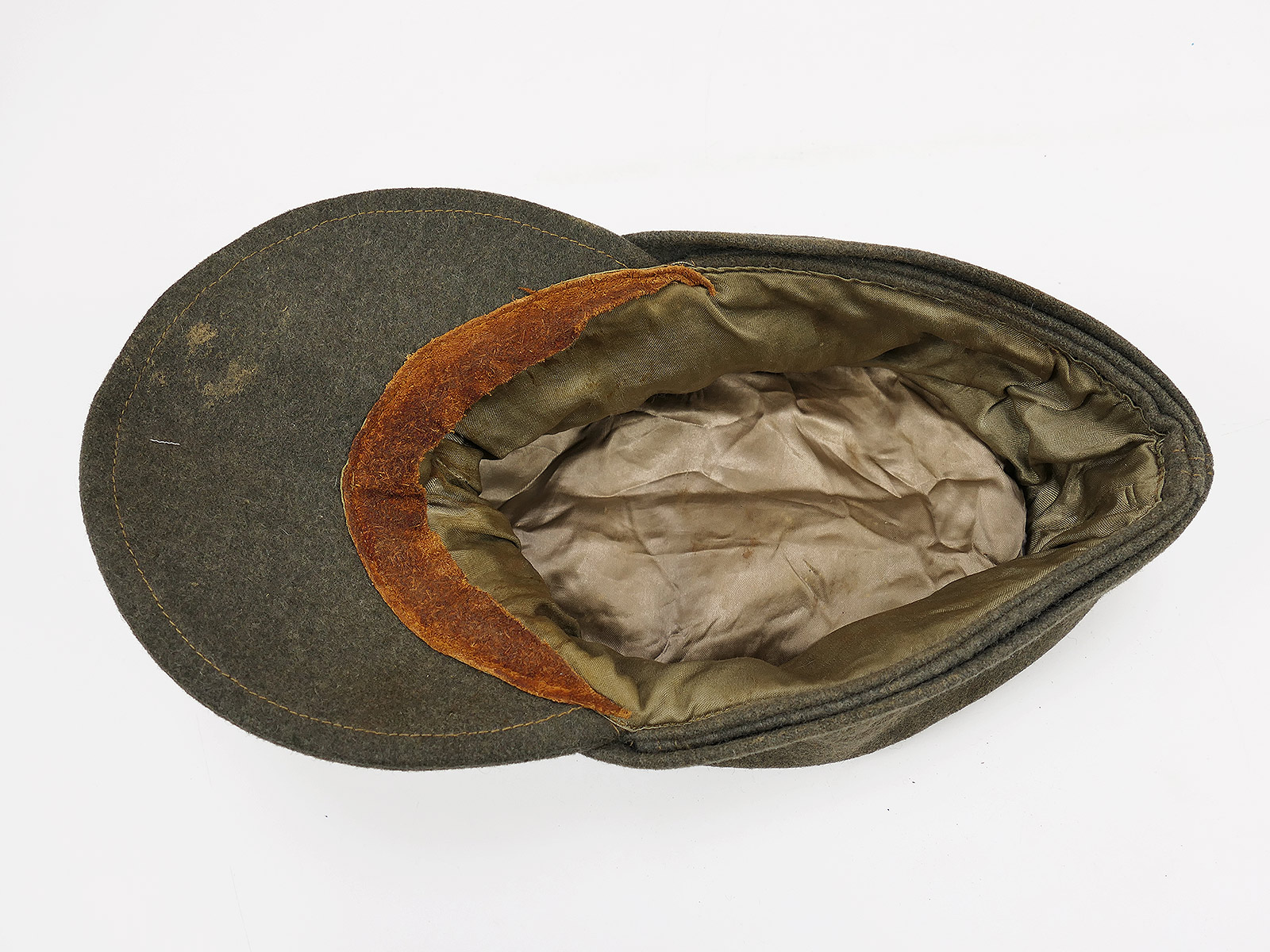 Single-button field cap M-1943, made of vintage woollen cloth, with silky lining and leather sweatband, hand-tailored, with trapeze effects
