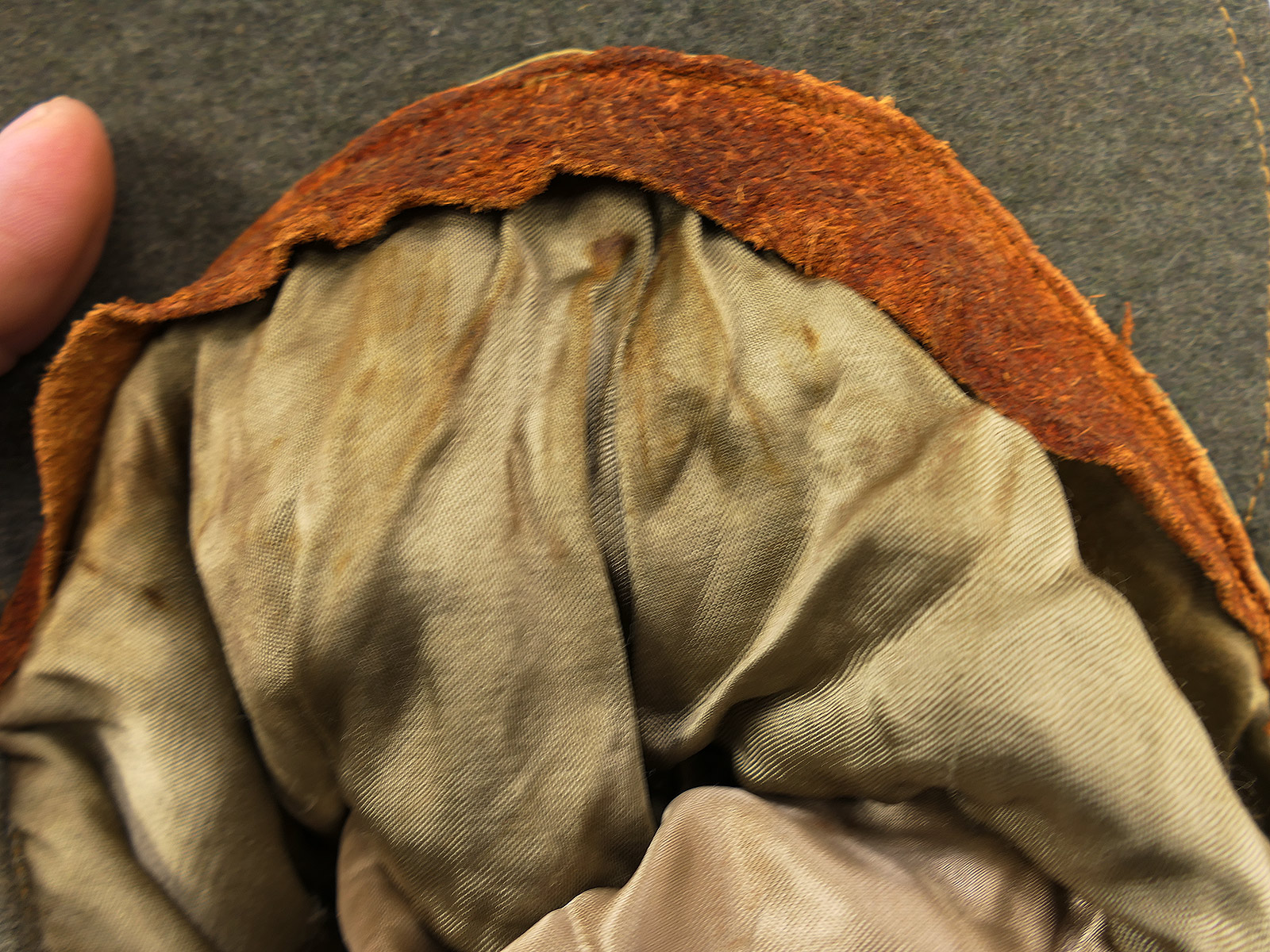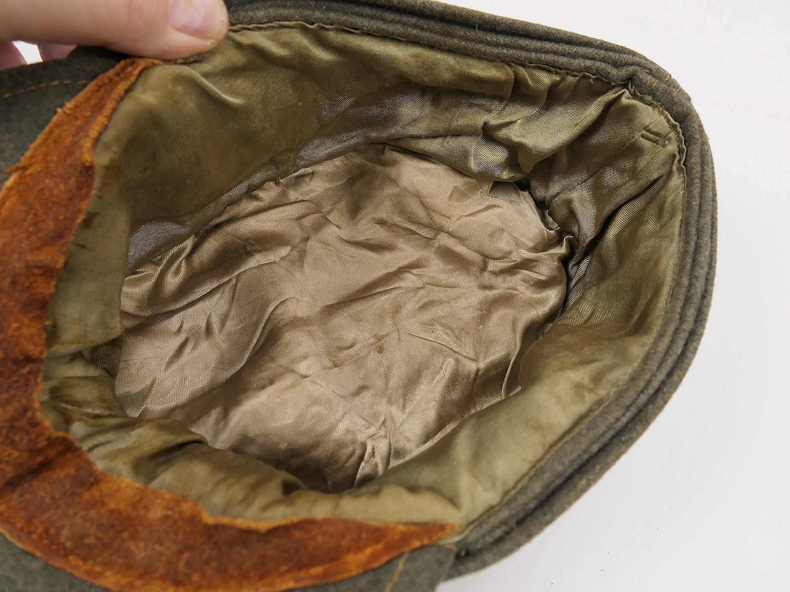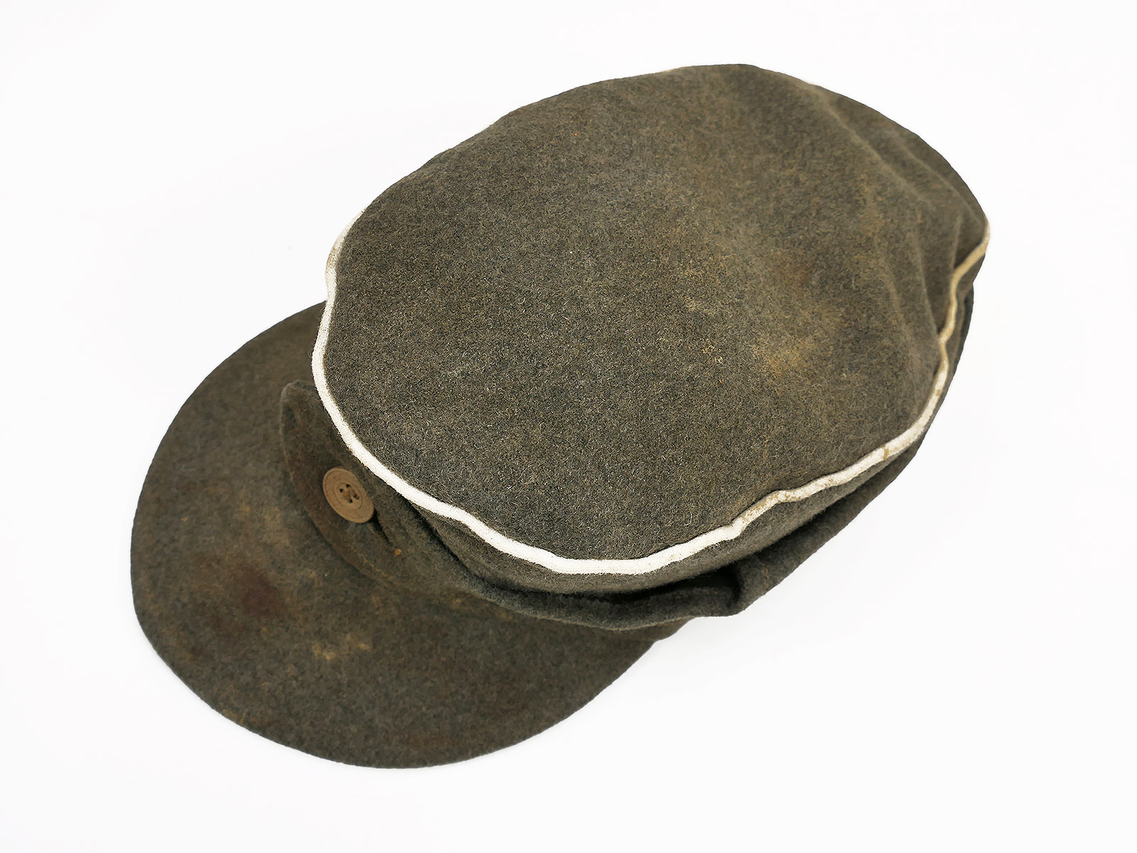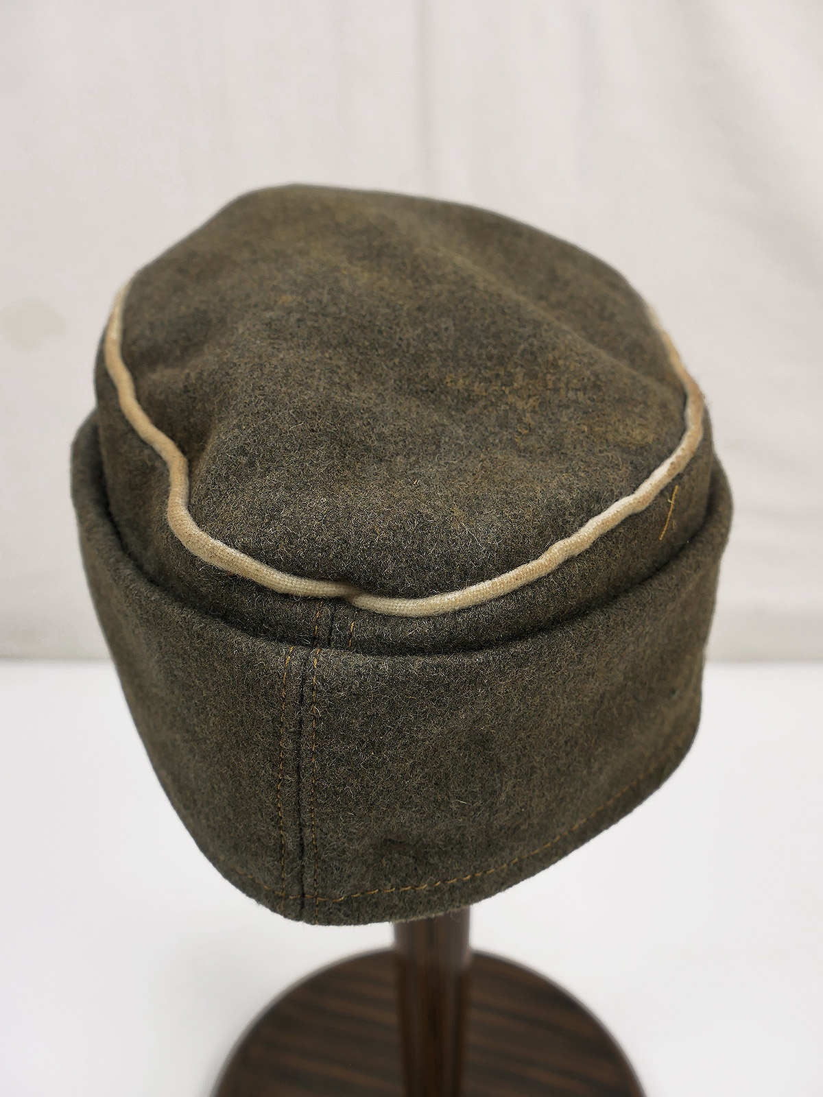 Single-button field cap M-1943, made of vintage woollen cloth, with silky lining and leather sweatband, hand-tailored, with trapeze effects