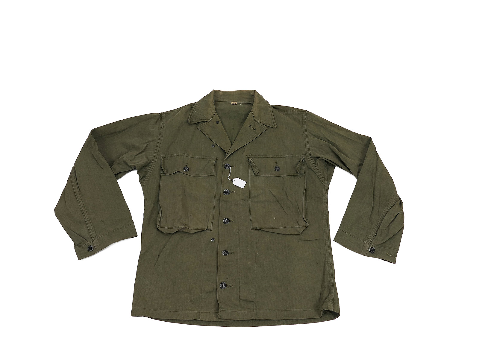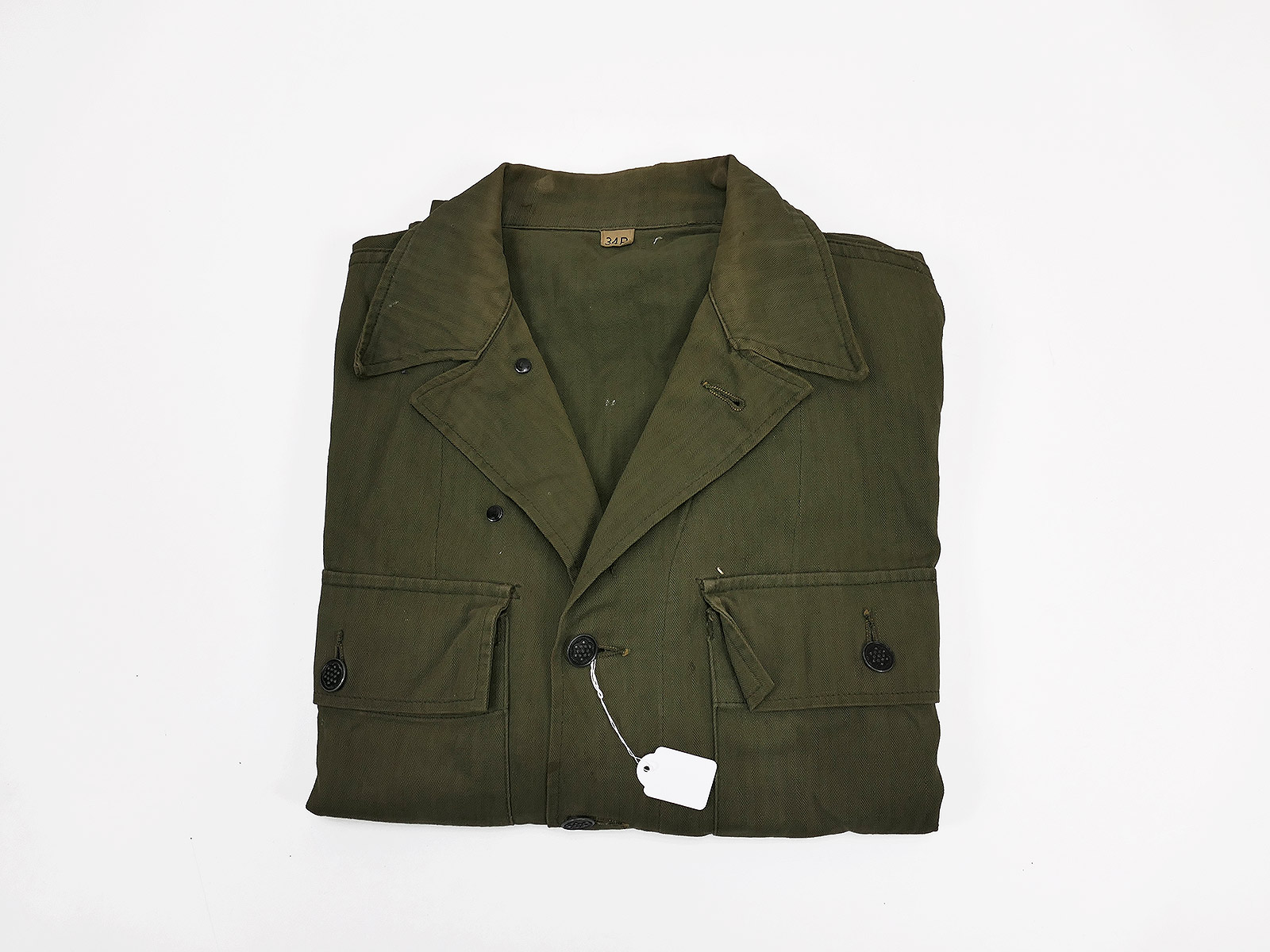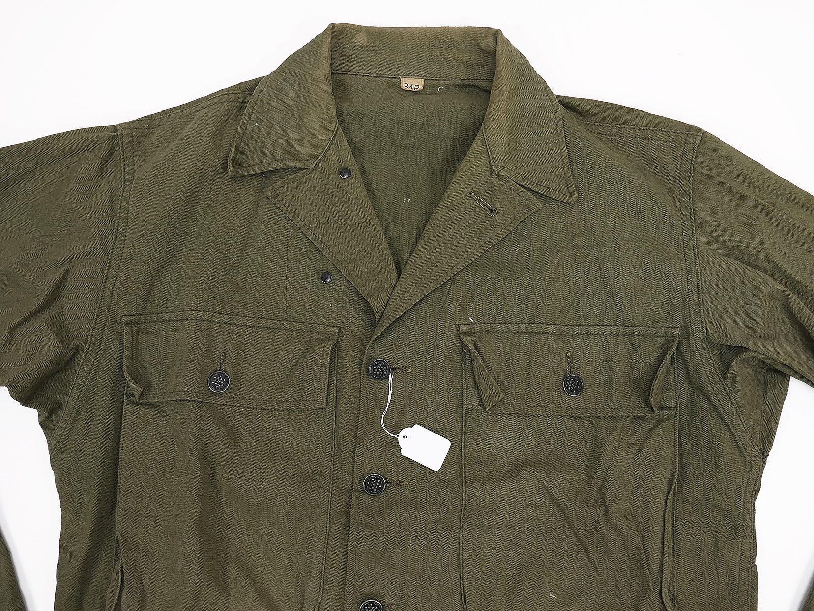#B/ Single piece Original US ARMY WW2 HBT Herringbone Twill Jacket Small (US 34R) Collection BATTLE WORN