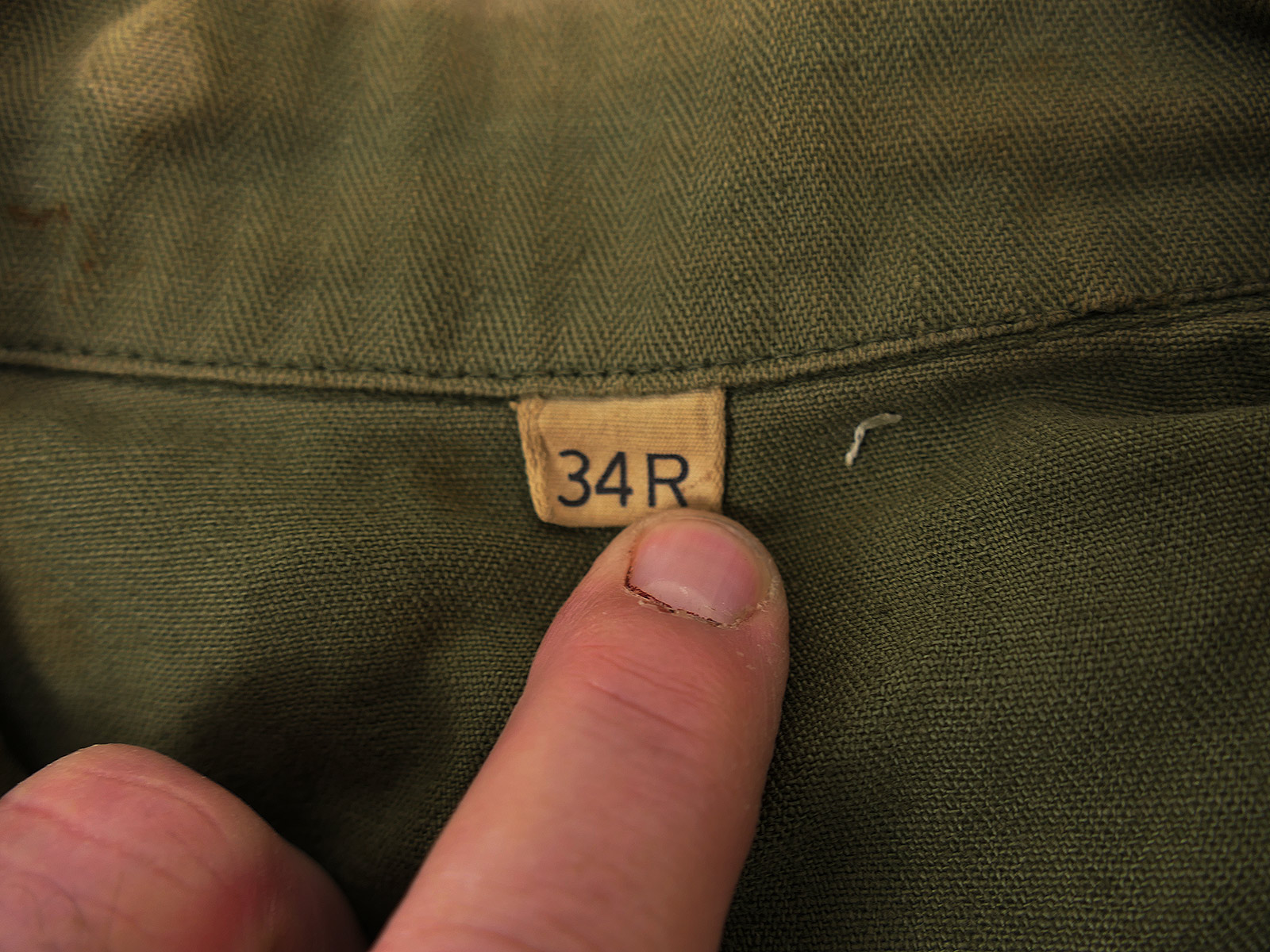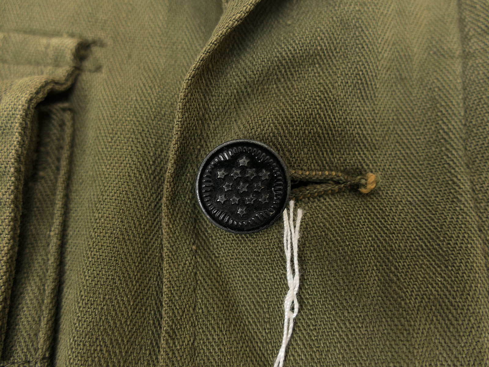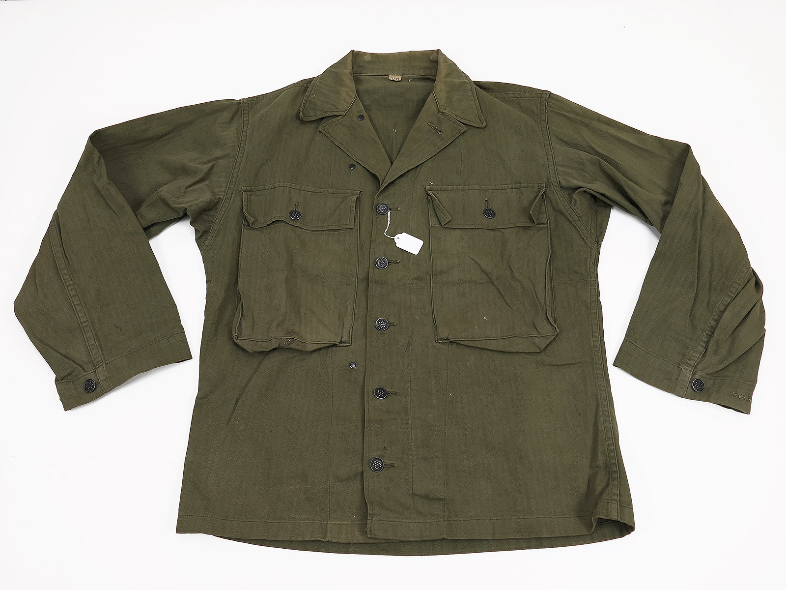 #B/ Single piece Original US ARMY WW2 HBT Herringbone Twill Jacket Small (US 34R) Collection BATTLE WORN
