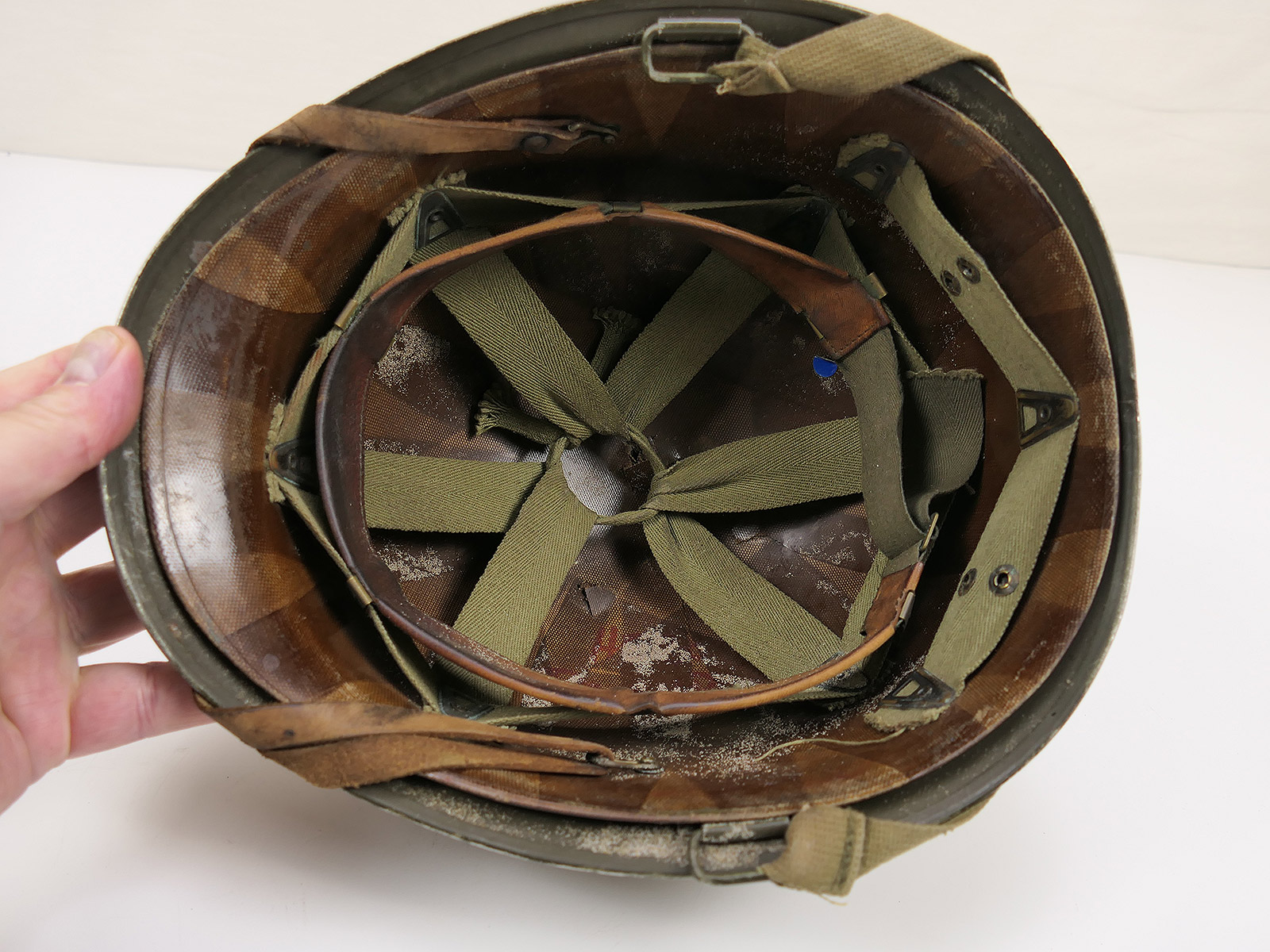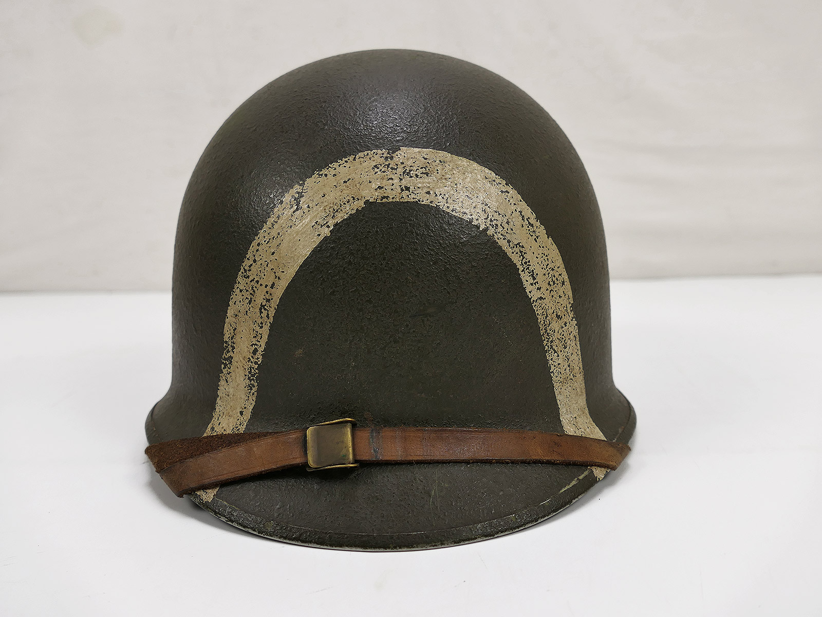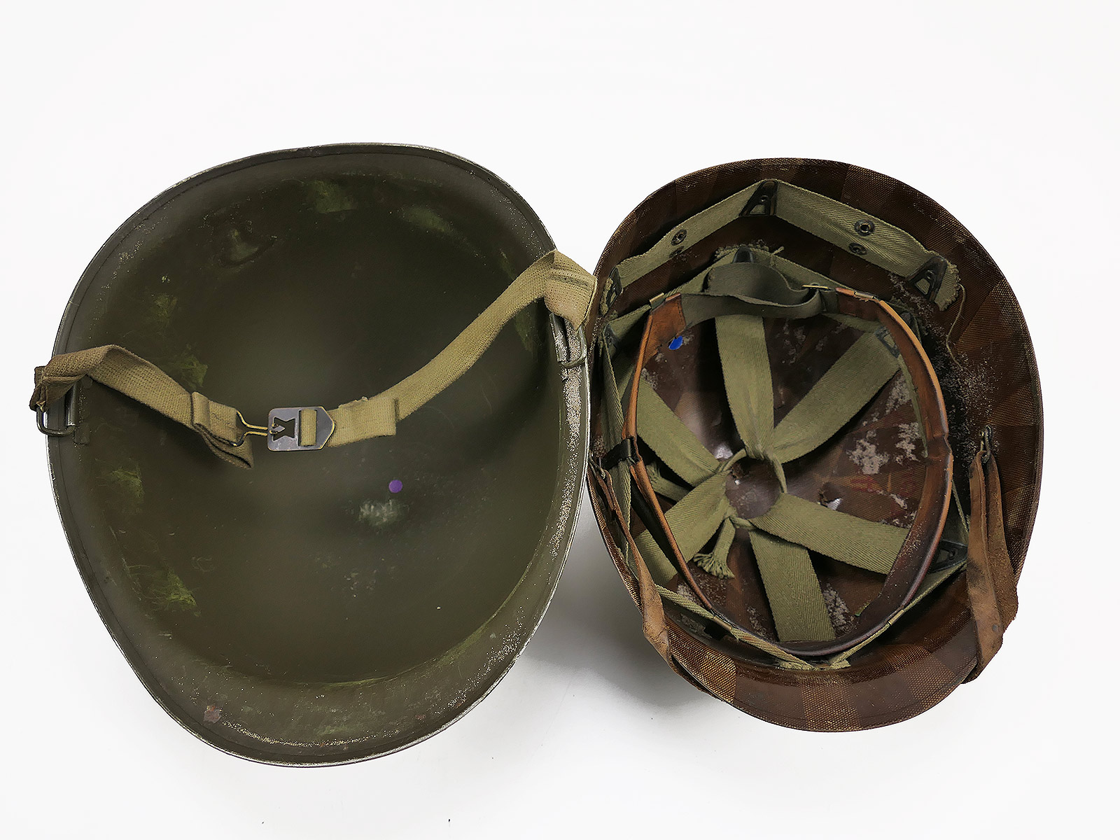 US M1 steel helmet "Special Engineer Unit", post-war bell, with very nice 50s liner and 2 chin straps