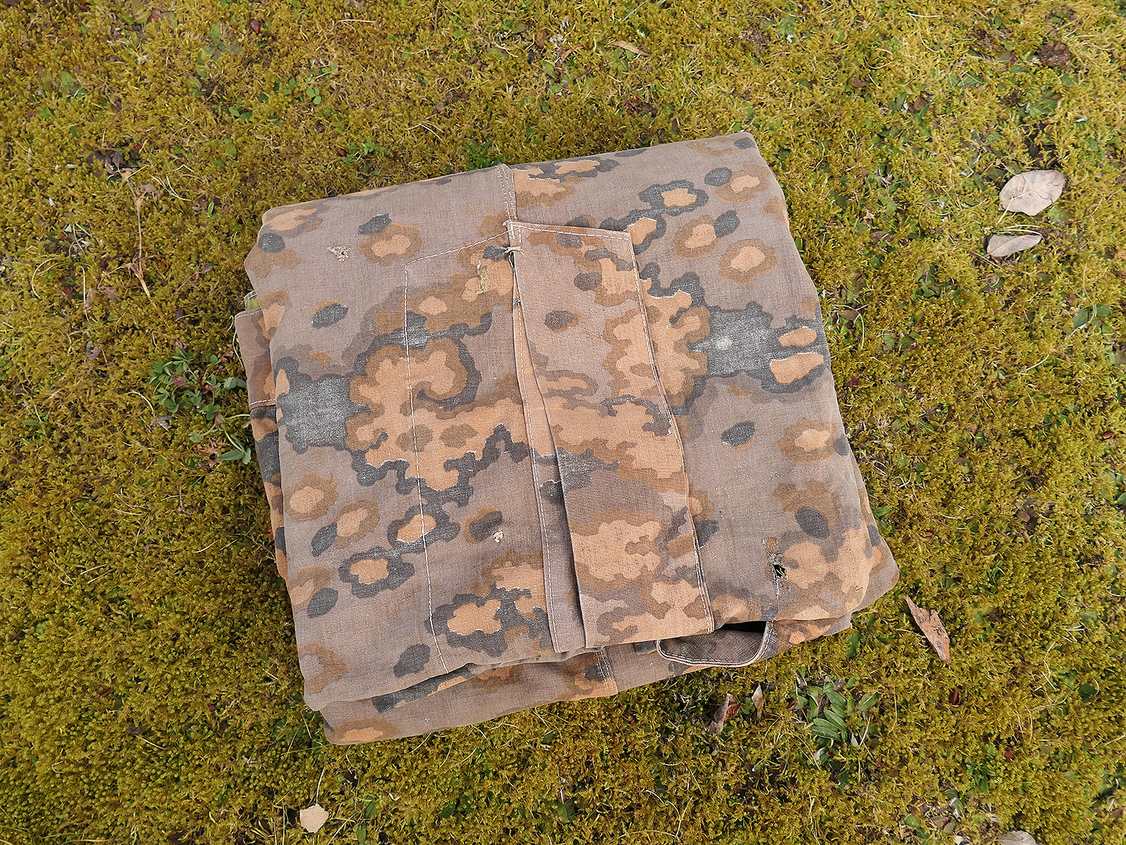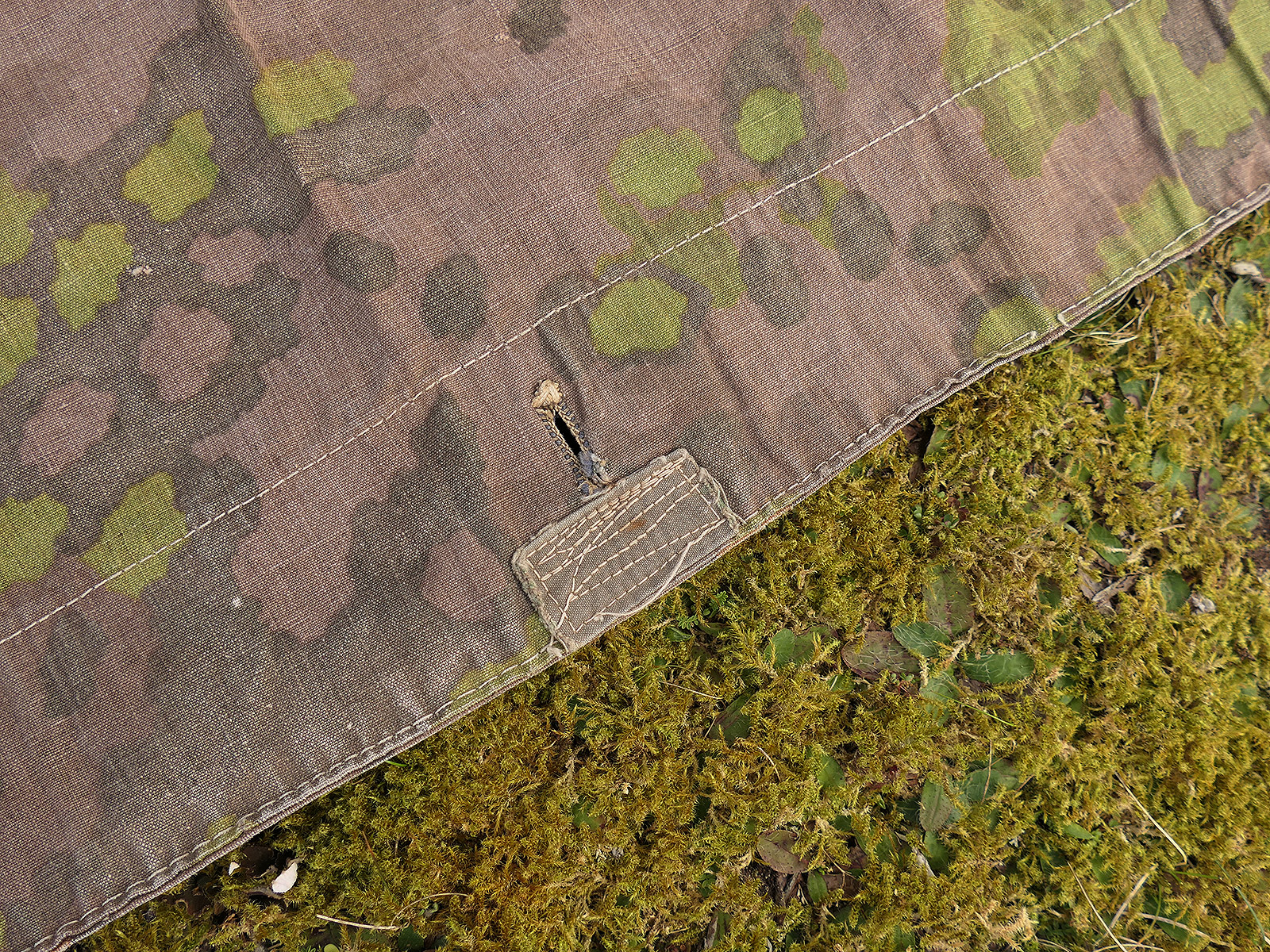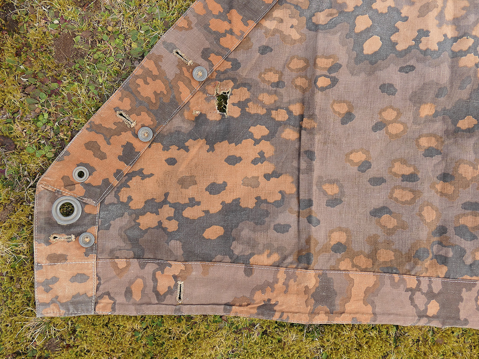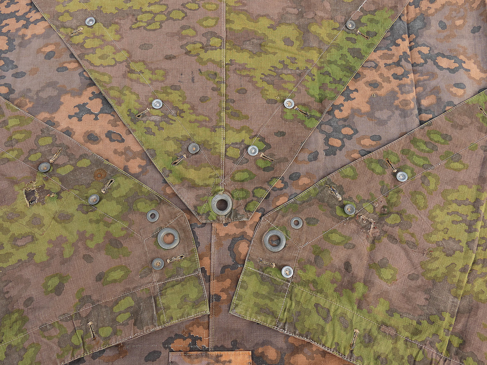 Original WW2 triangular camouflage tent sheet from the Waffen SS in oak leaf camouflage, reversible for use from spring to autumn.