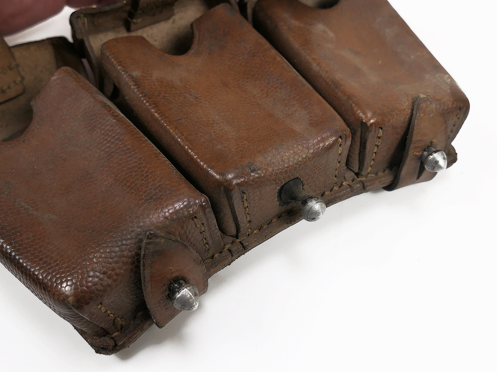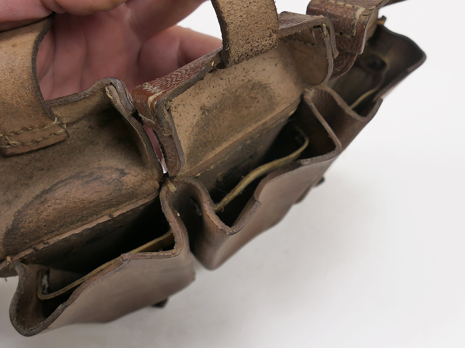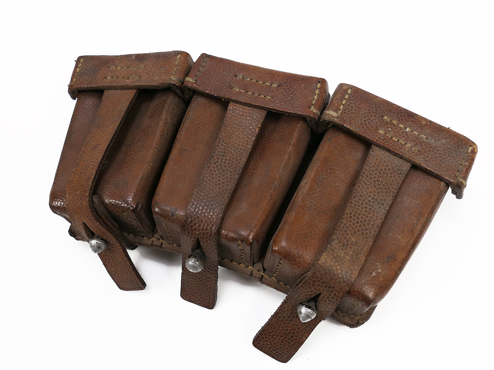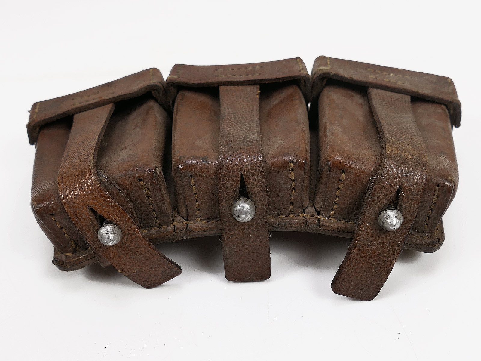 Original 3er K98 cartridge pouch Wehrmacht, brown, WITH the inner dividers, stamped with manufacturer.