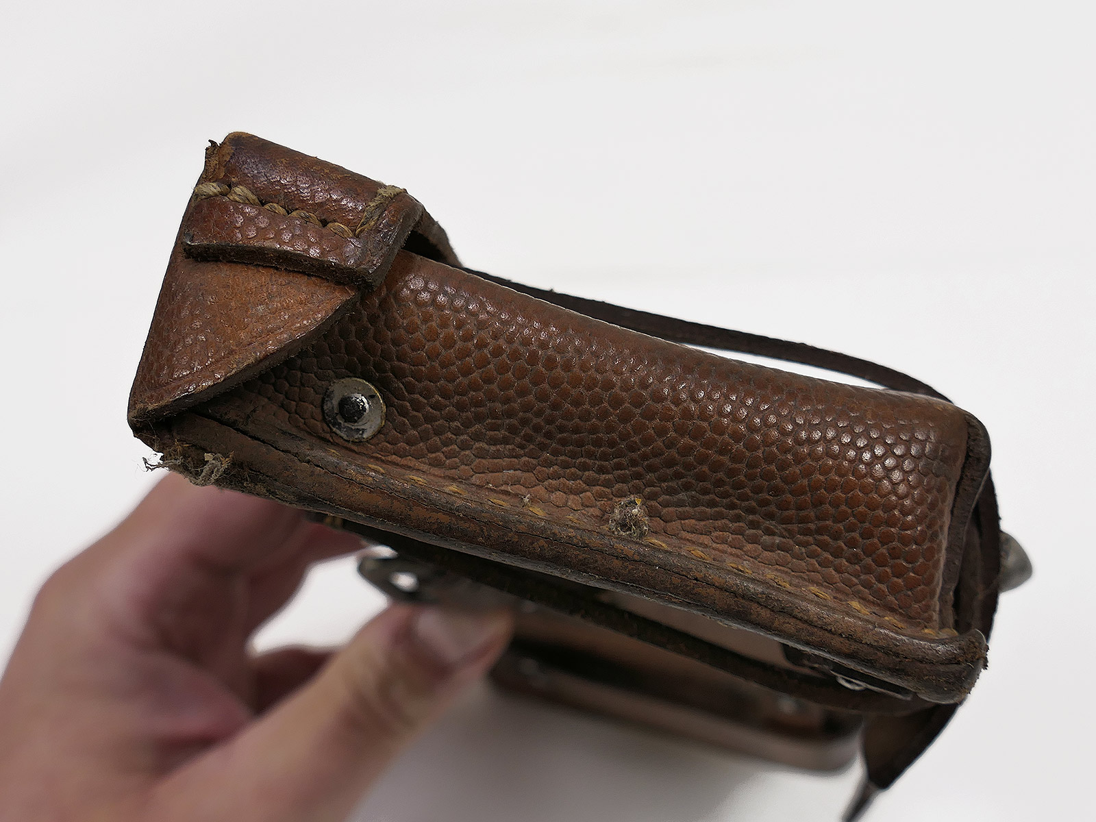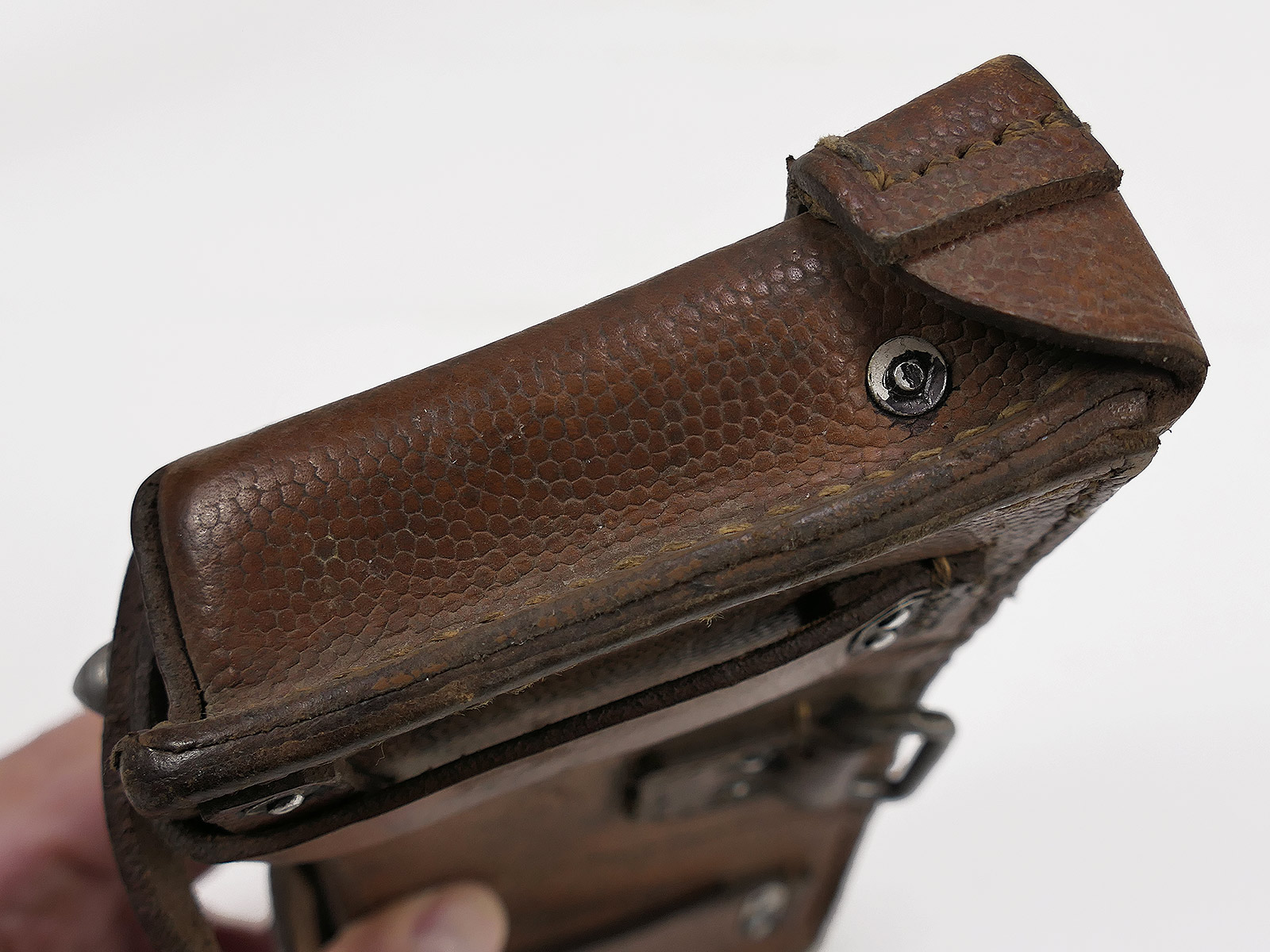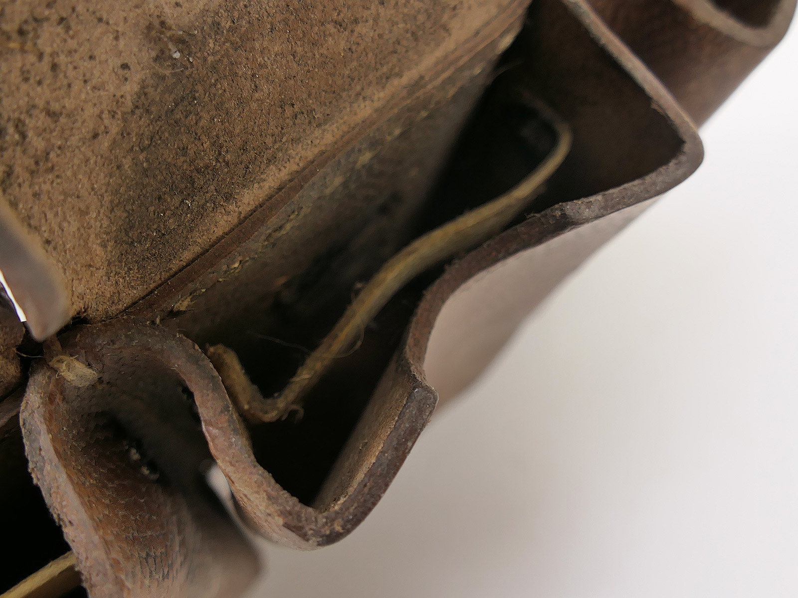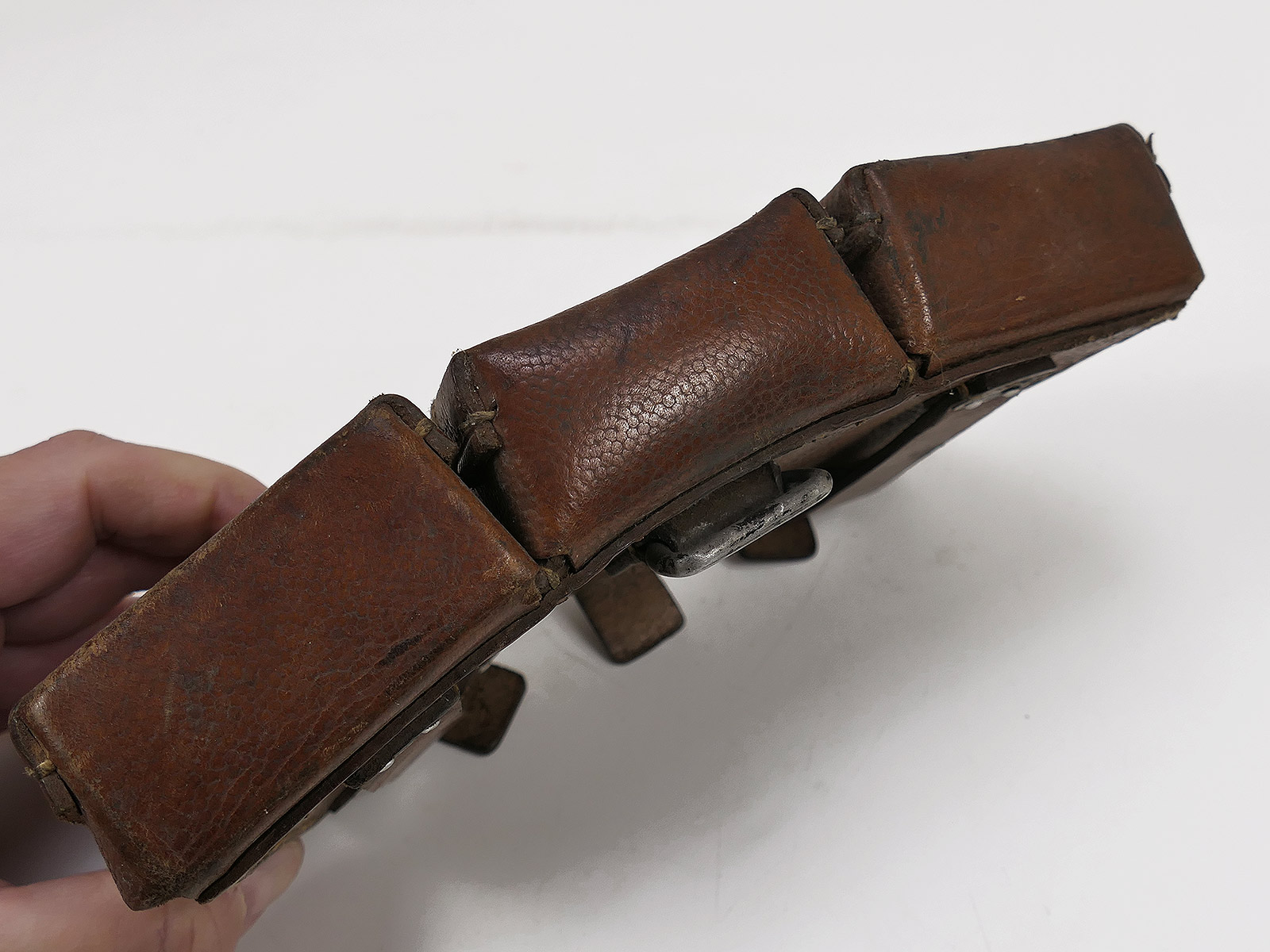 Original 3er K98 cartridge pouch Wehrmacht, brown, WITH the inner dividers, stamped with manufacturer.