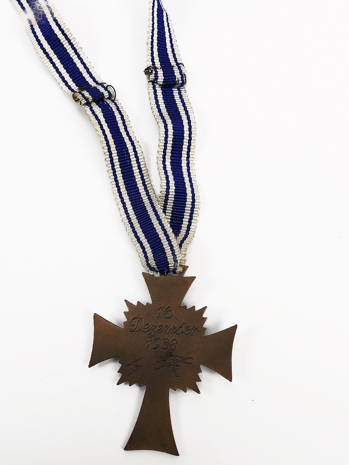 Cross of Honour of the German Mother / Mother's Cross 2nd Model Bronze on a long ribbon