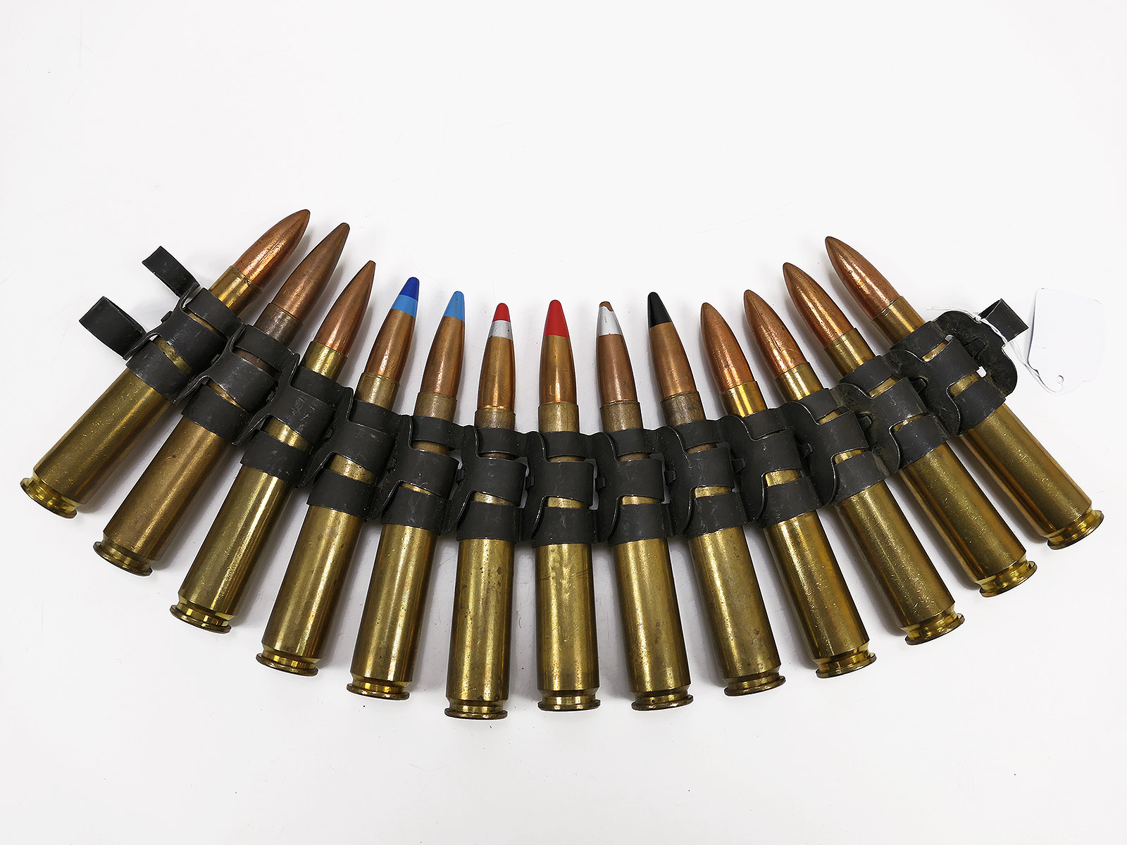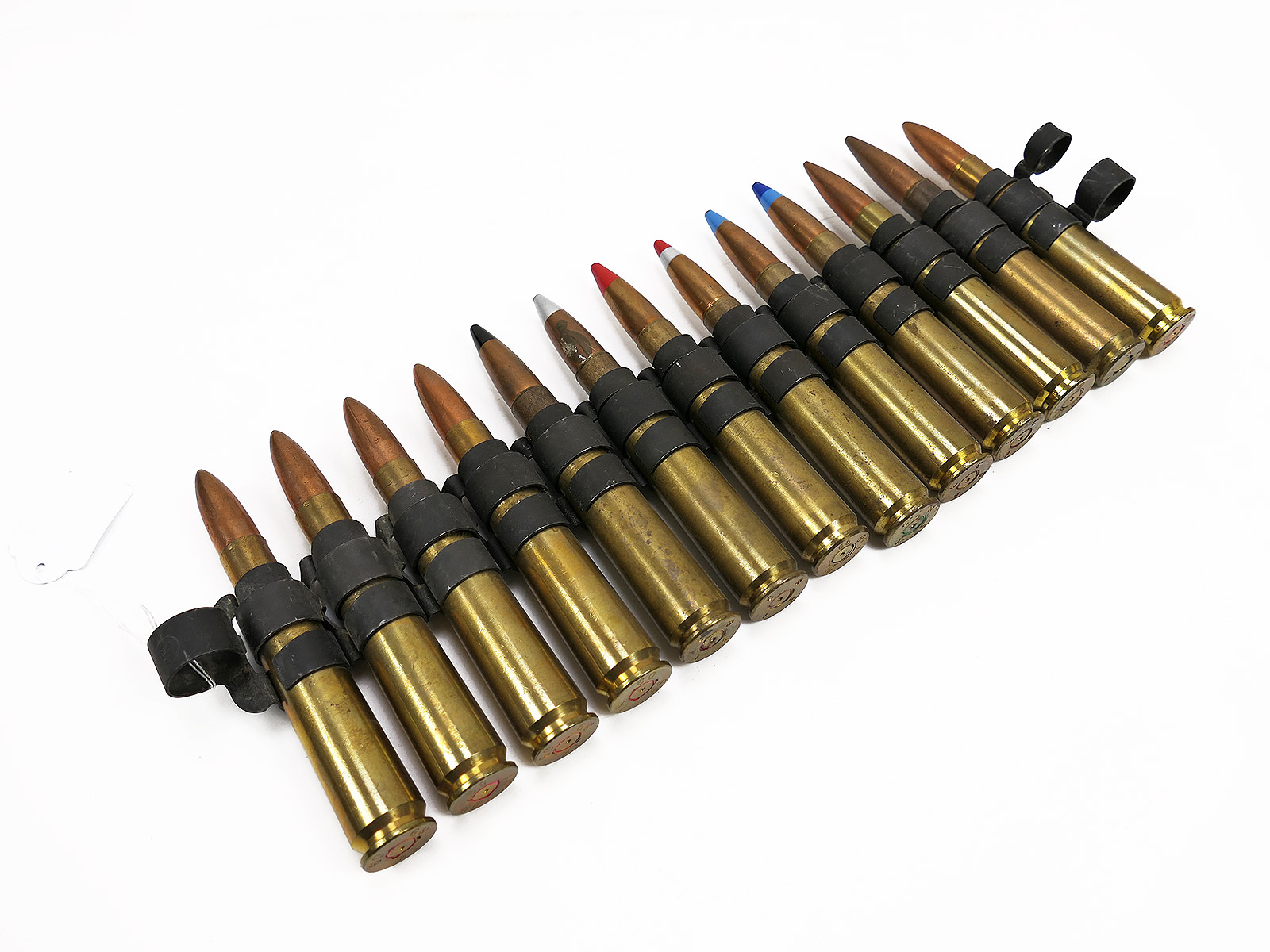 Decorative items – 13 deactivated cartridges on a display belt.
