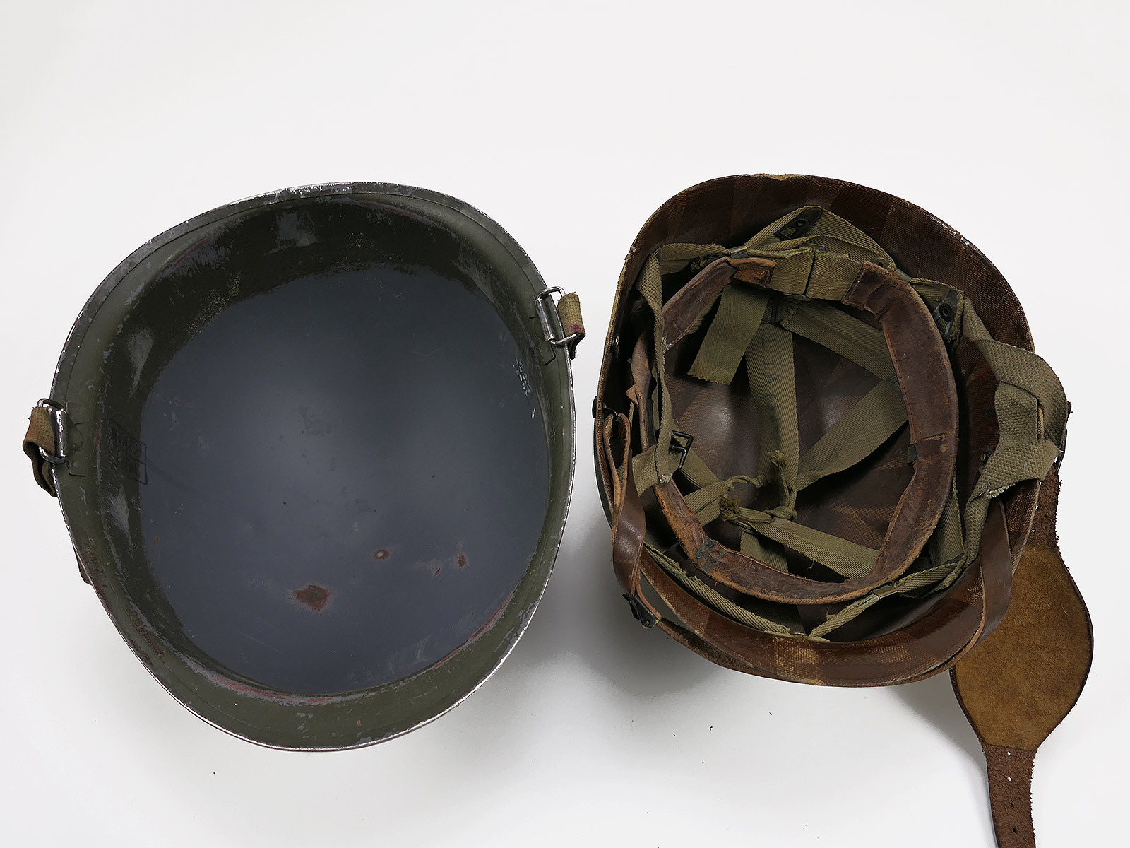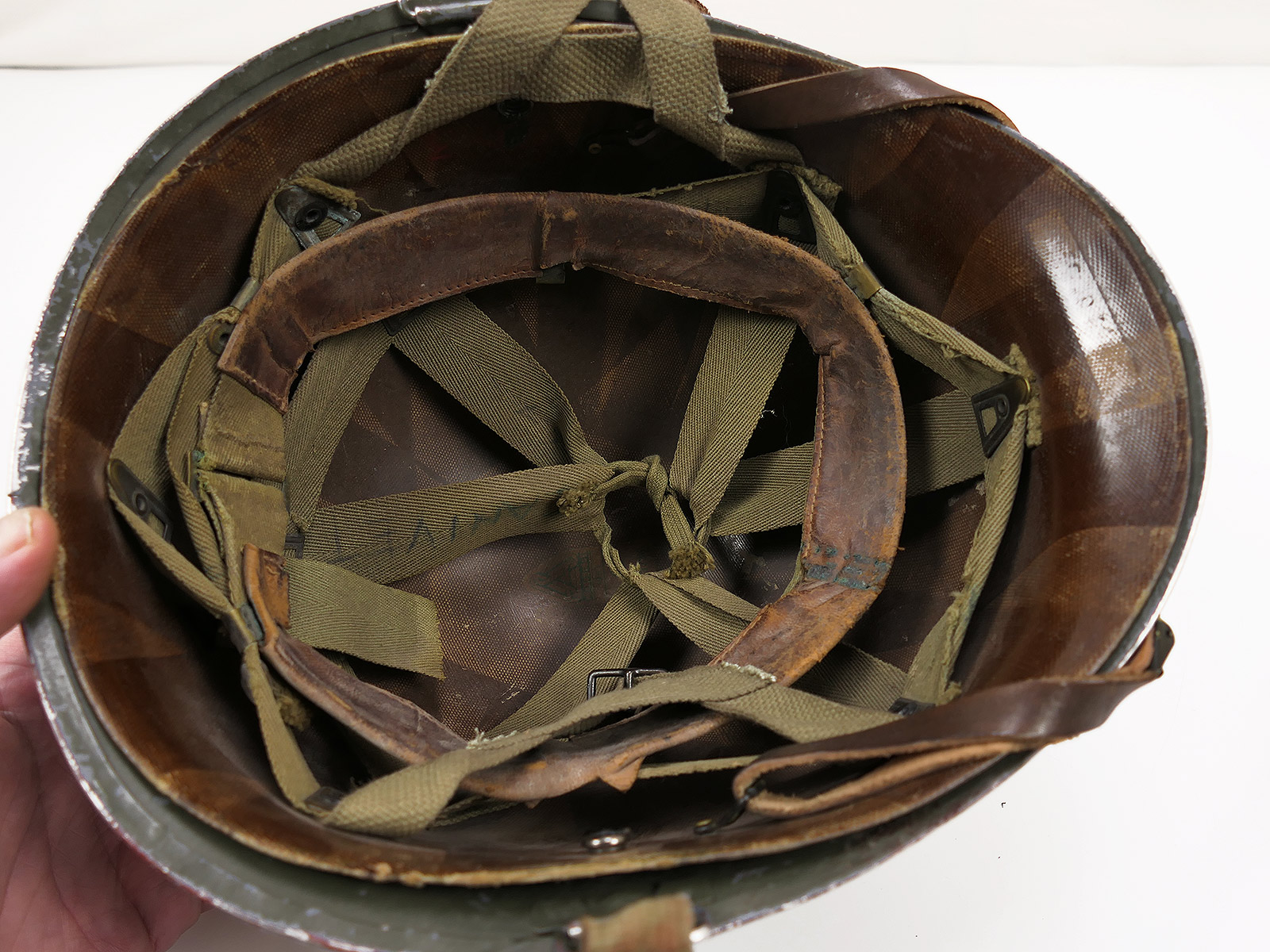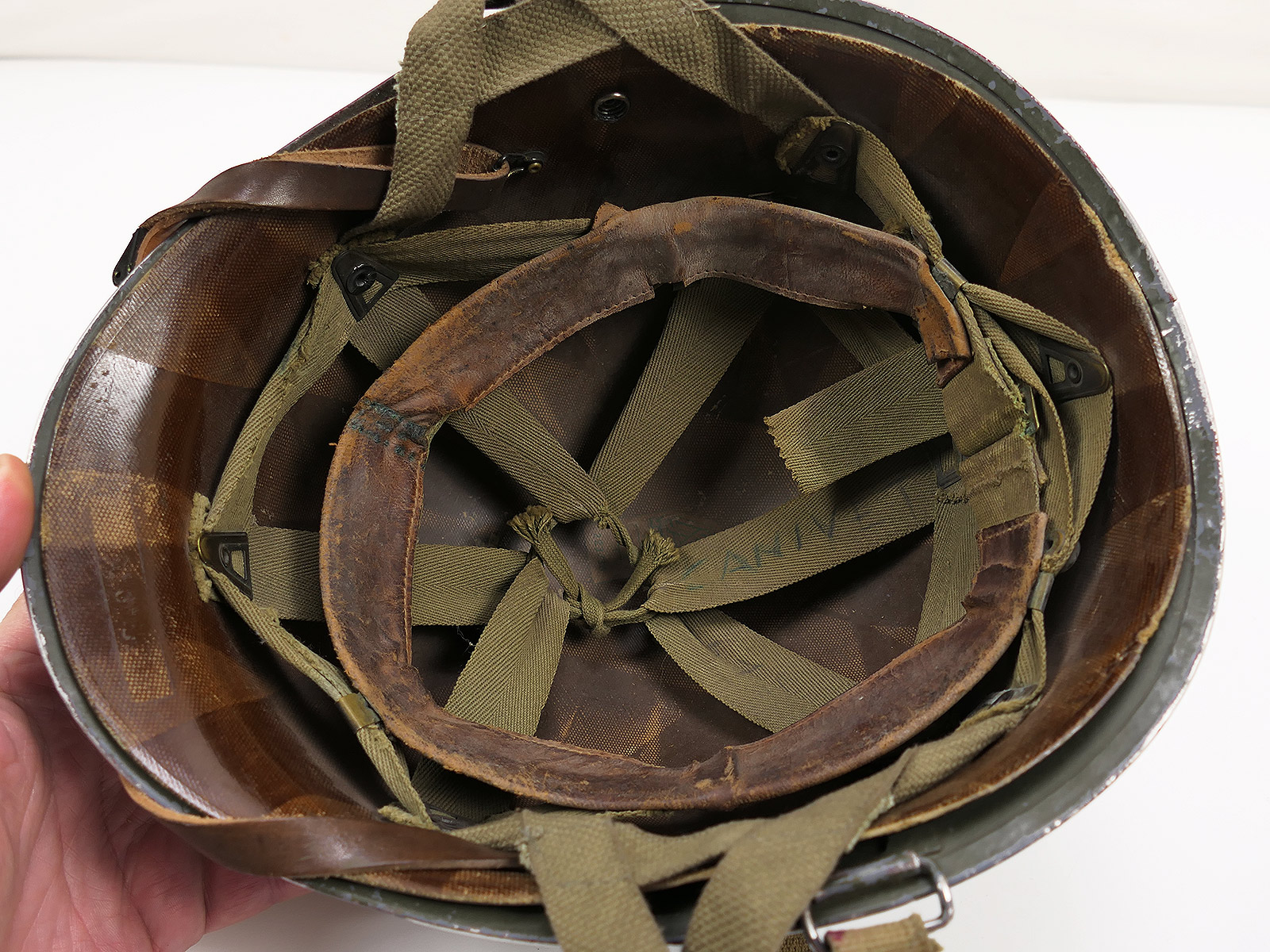 US Paratrooper steel helmet "Special Engineer Unit", post-war bell, with very nice 50s liner and the pictured chin strap.