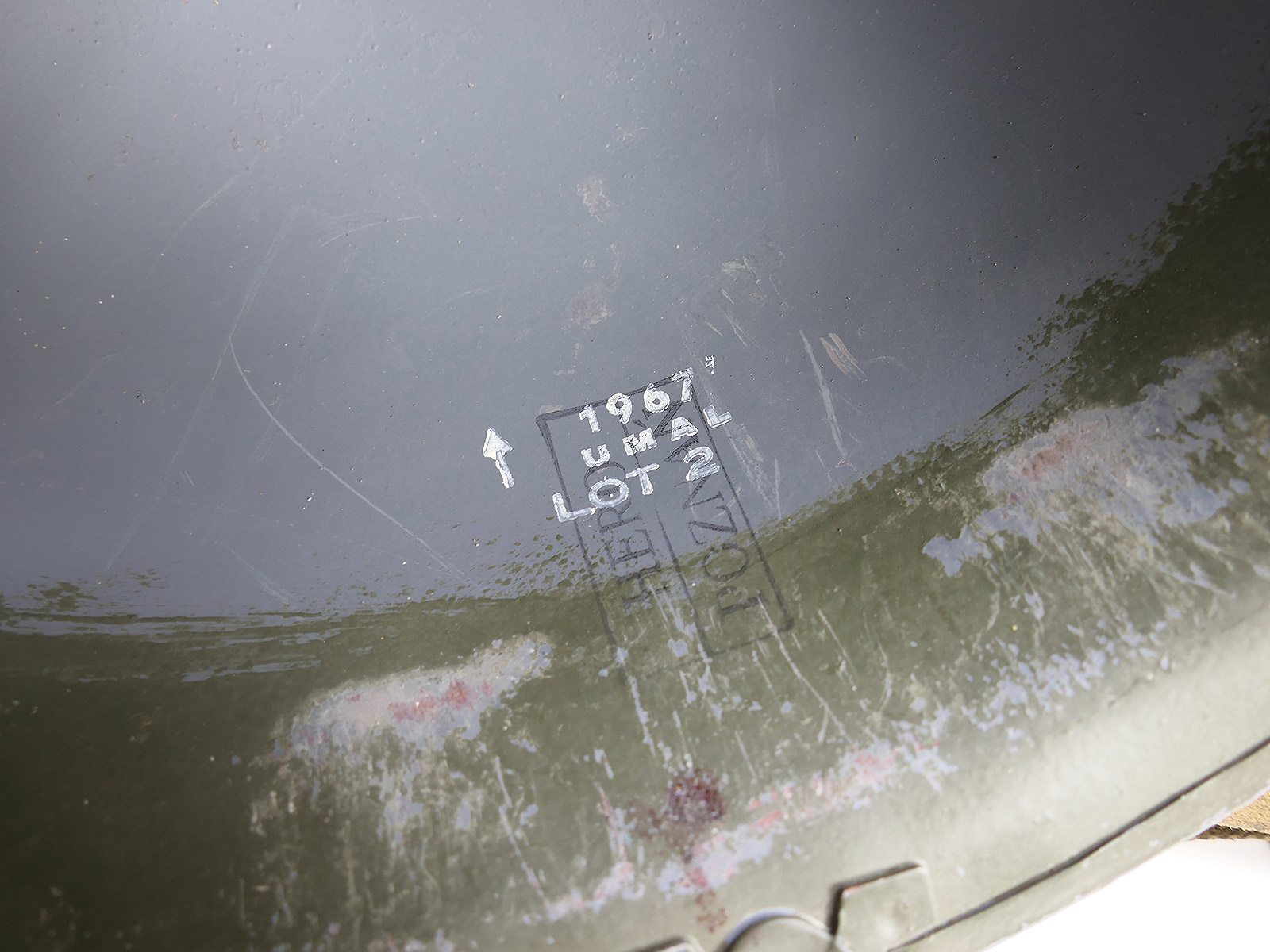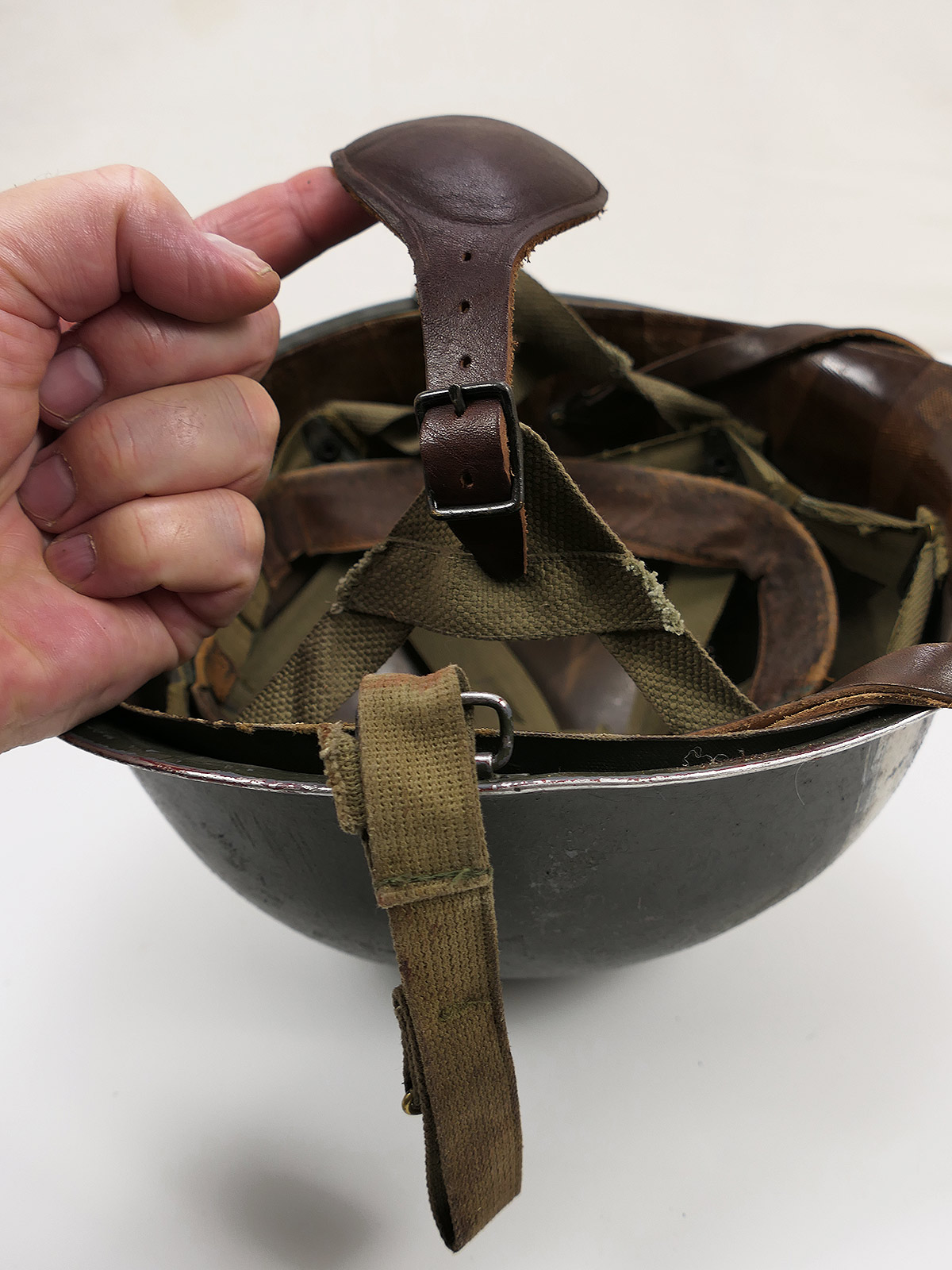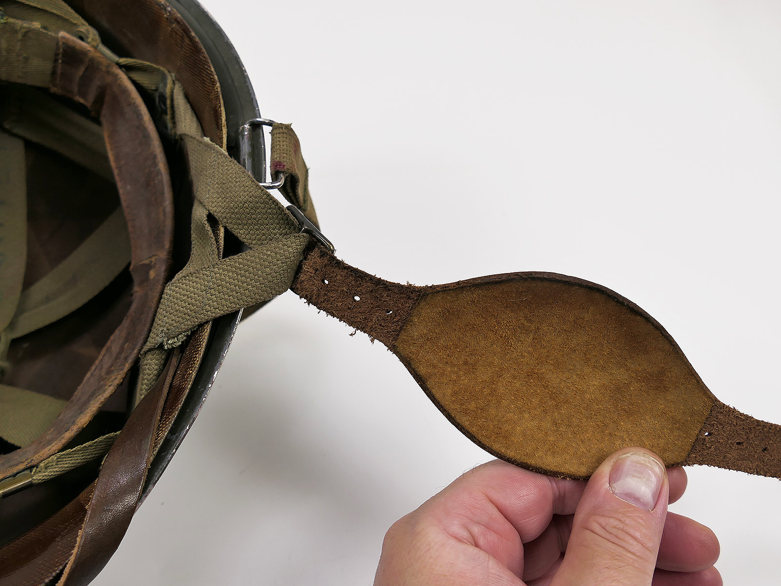 US Paratrooper steel helmet "Special Engineer Unit", post-war bell, with very nice 50s liner and the pictured chin strap.