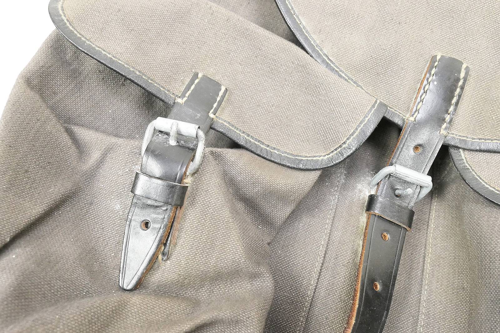 Vintage military rucksack blue-grey, made of robust material, sturdy workmanship.