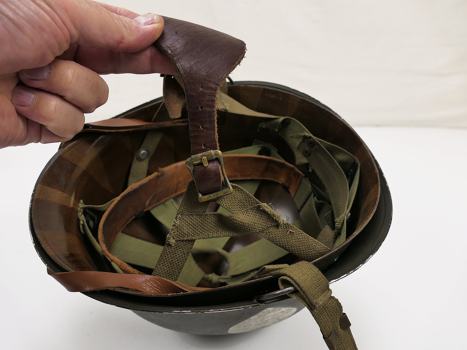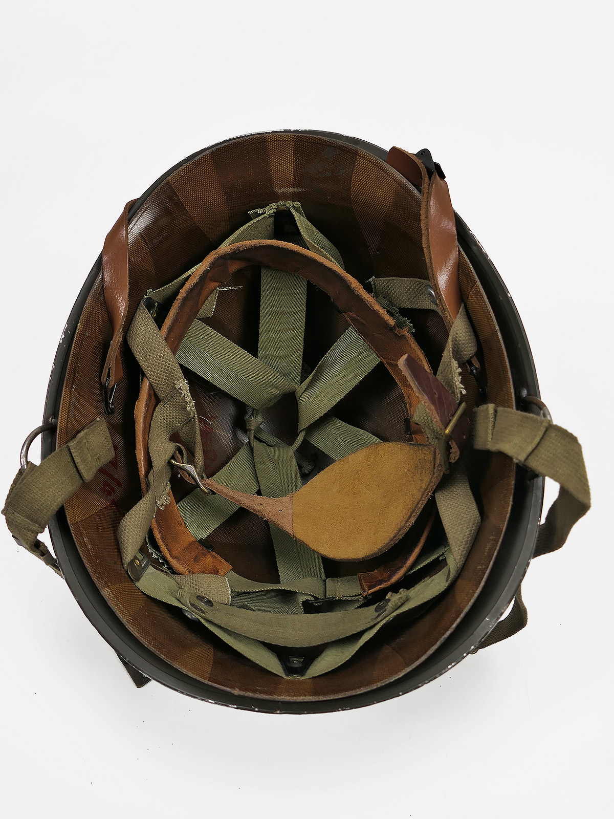 US Paratrooper steel helmet "502nd PIR", post-war bell, with very nice 50s liner and the pictured chin strap.