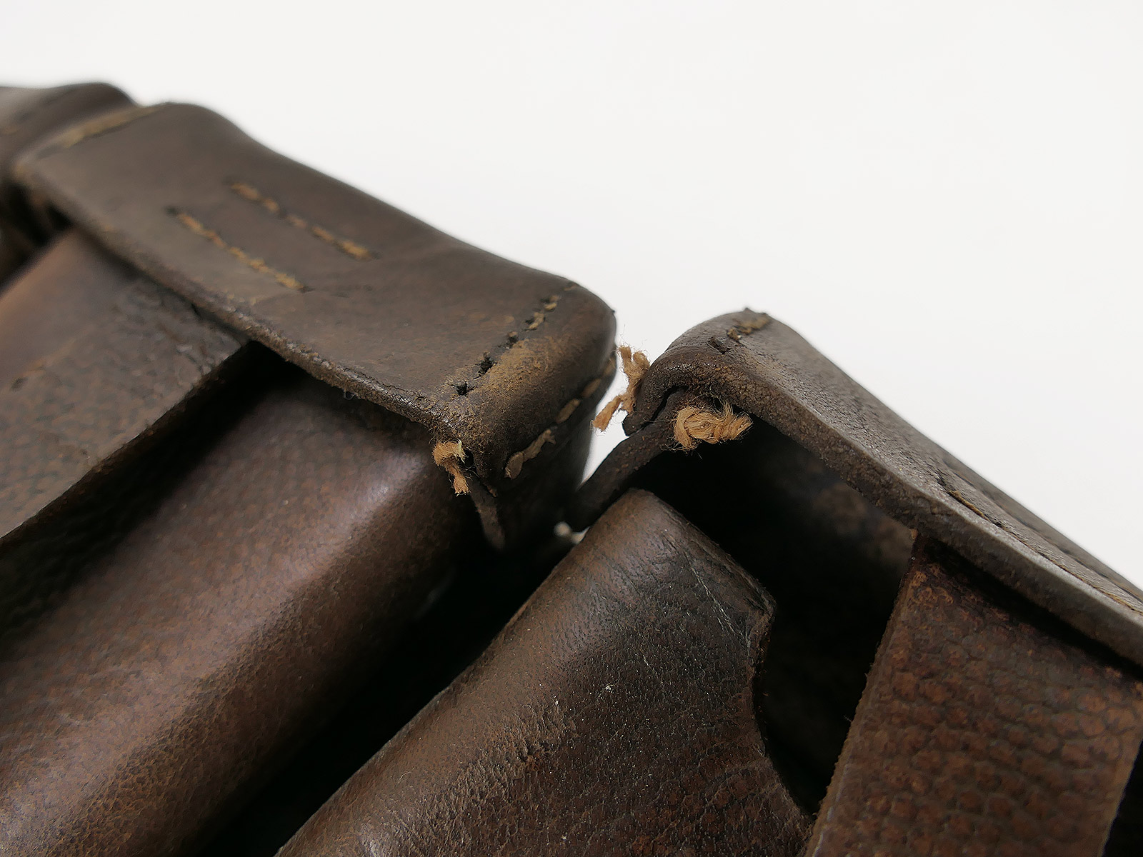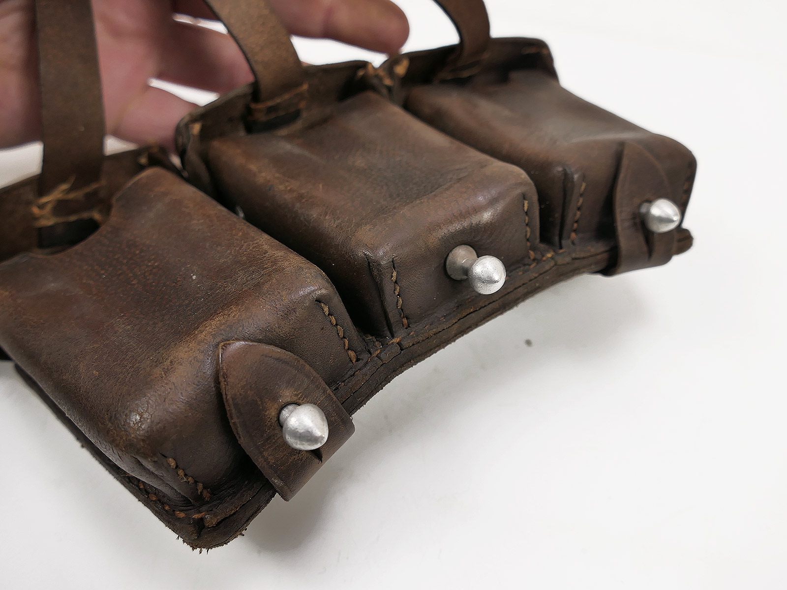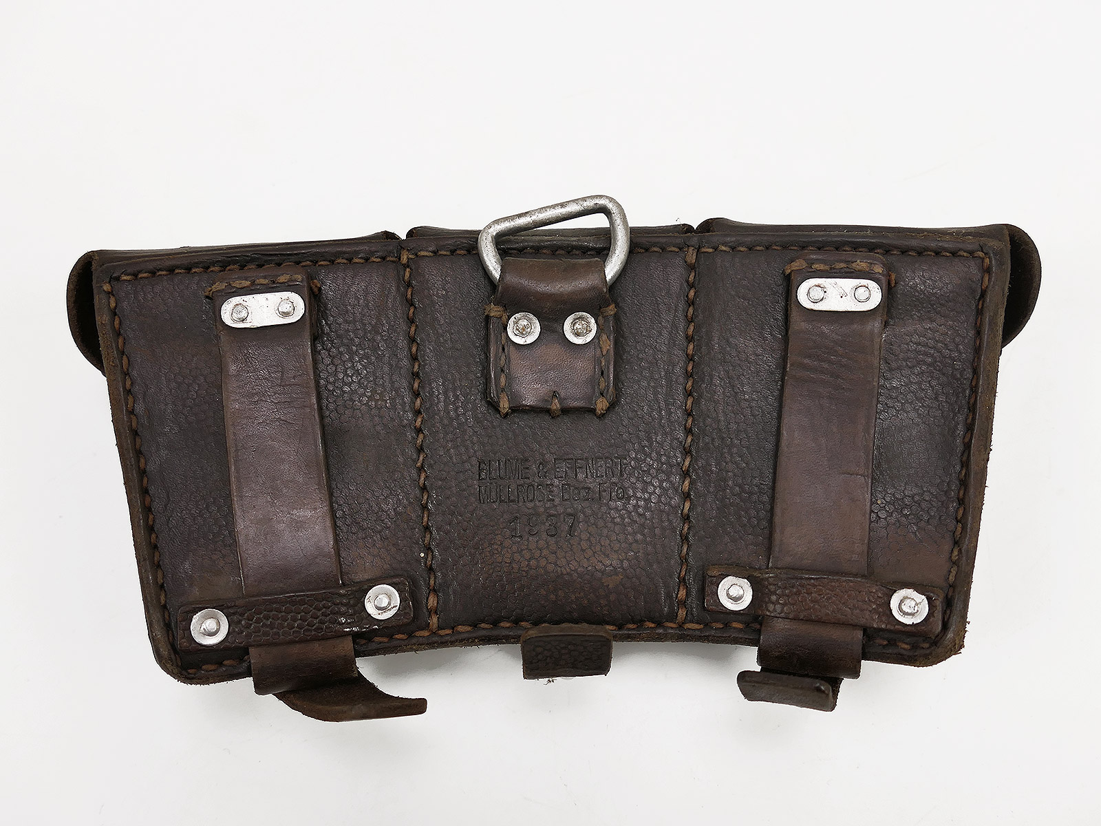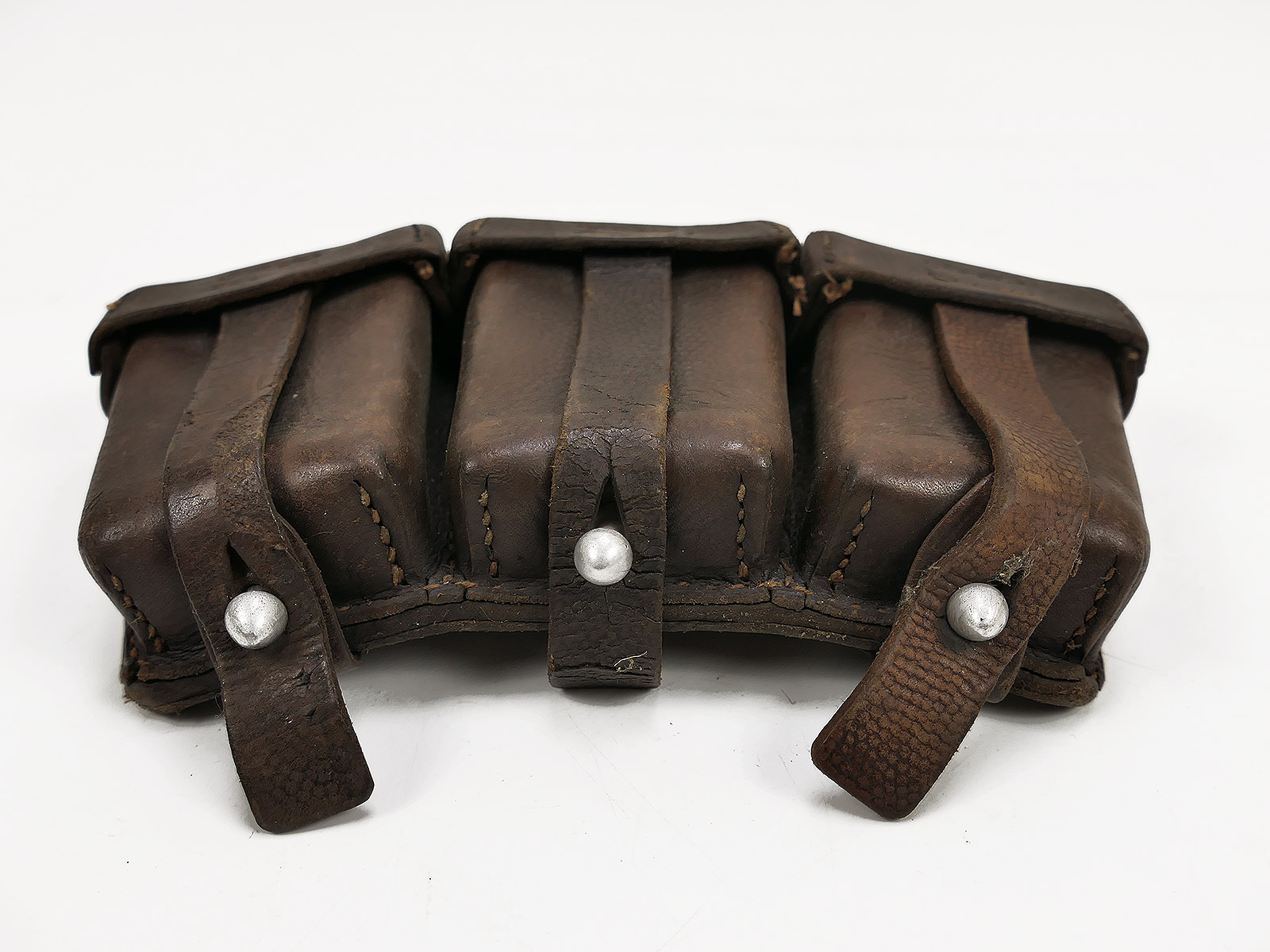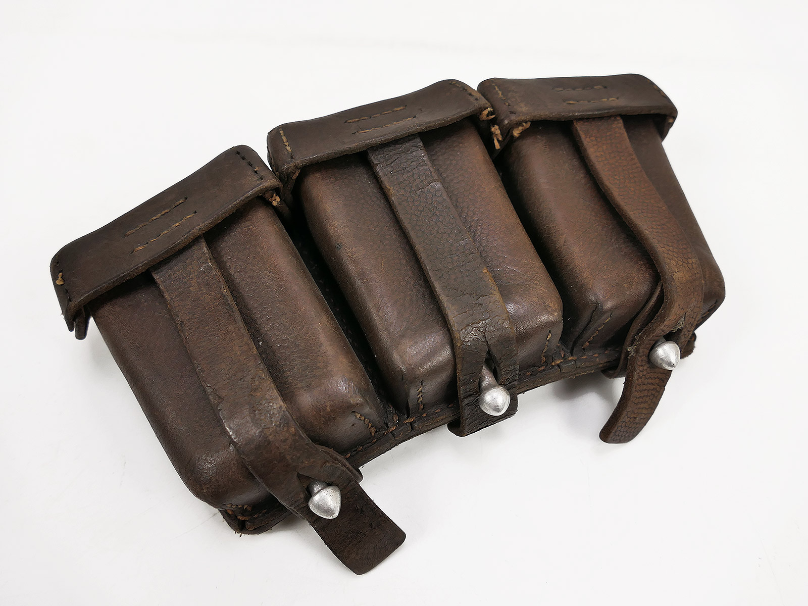 Original 3er K98 cartridge pouch Wehrmacht, brown, WITH the inner dividers, stamped with manufacturer.
