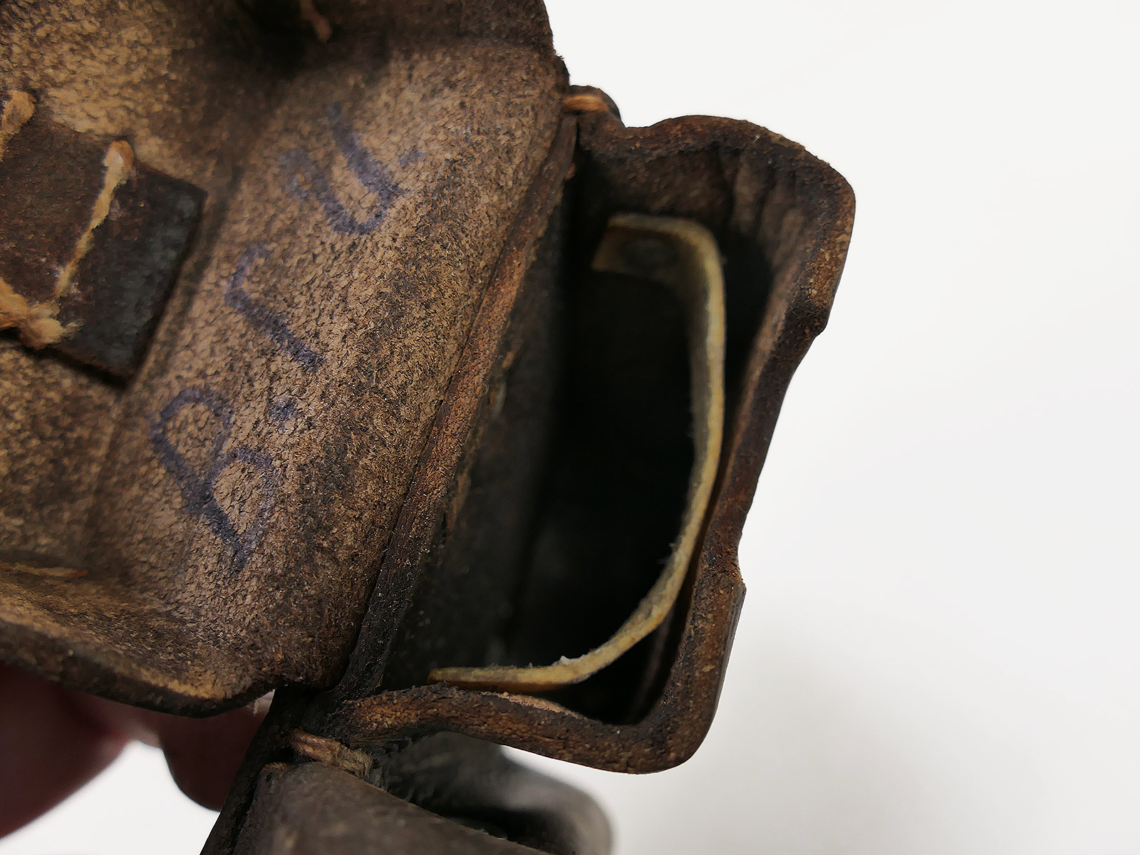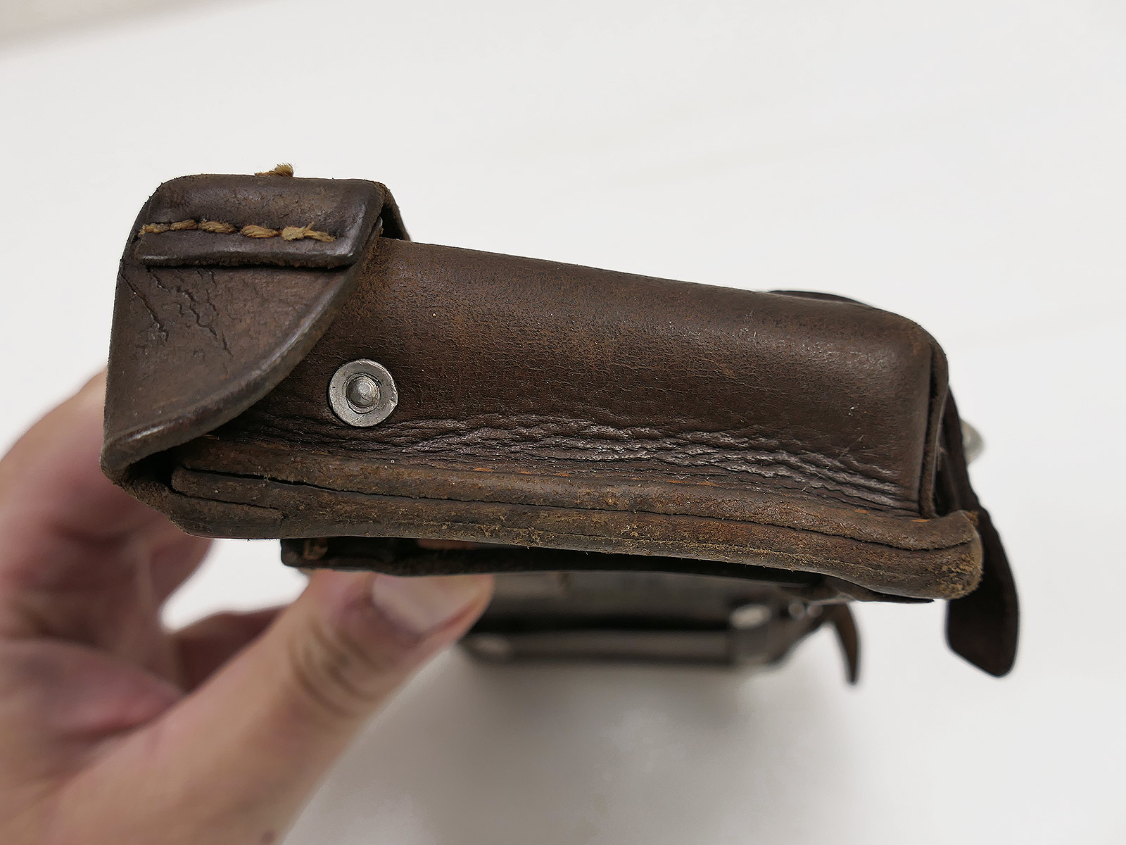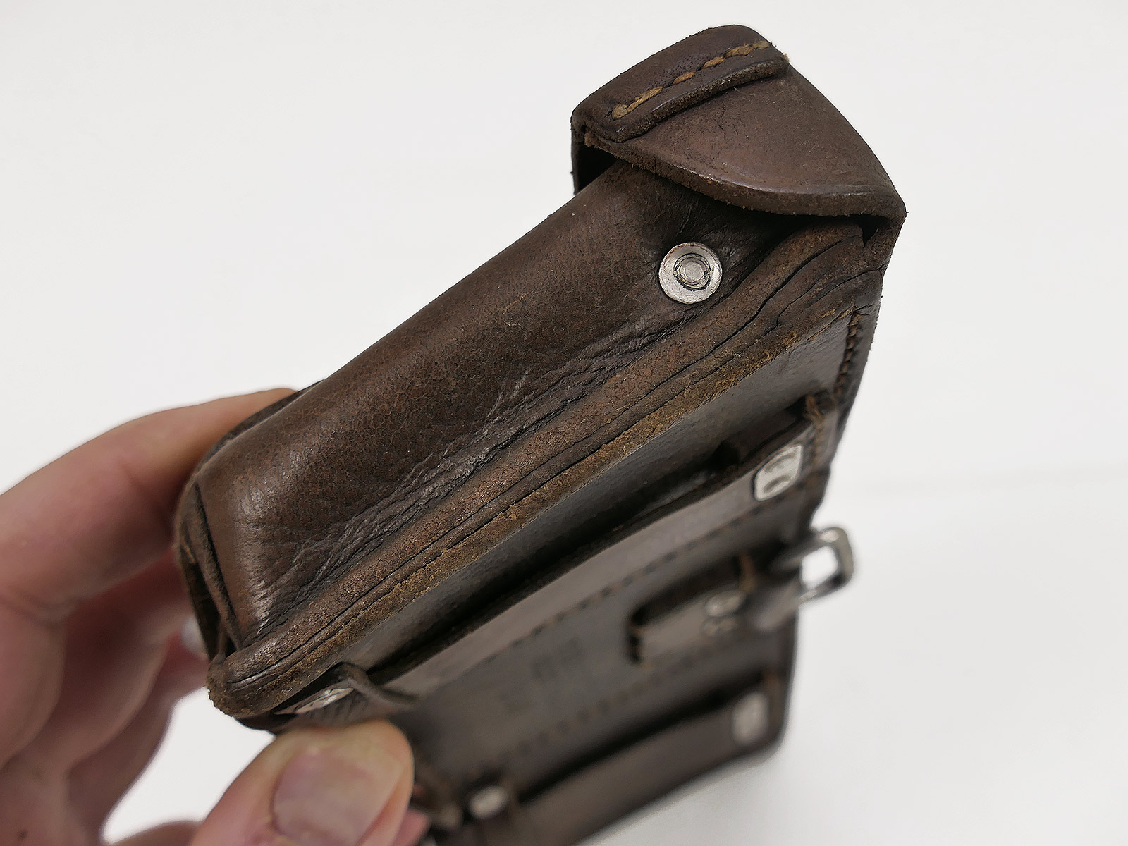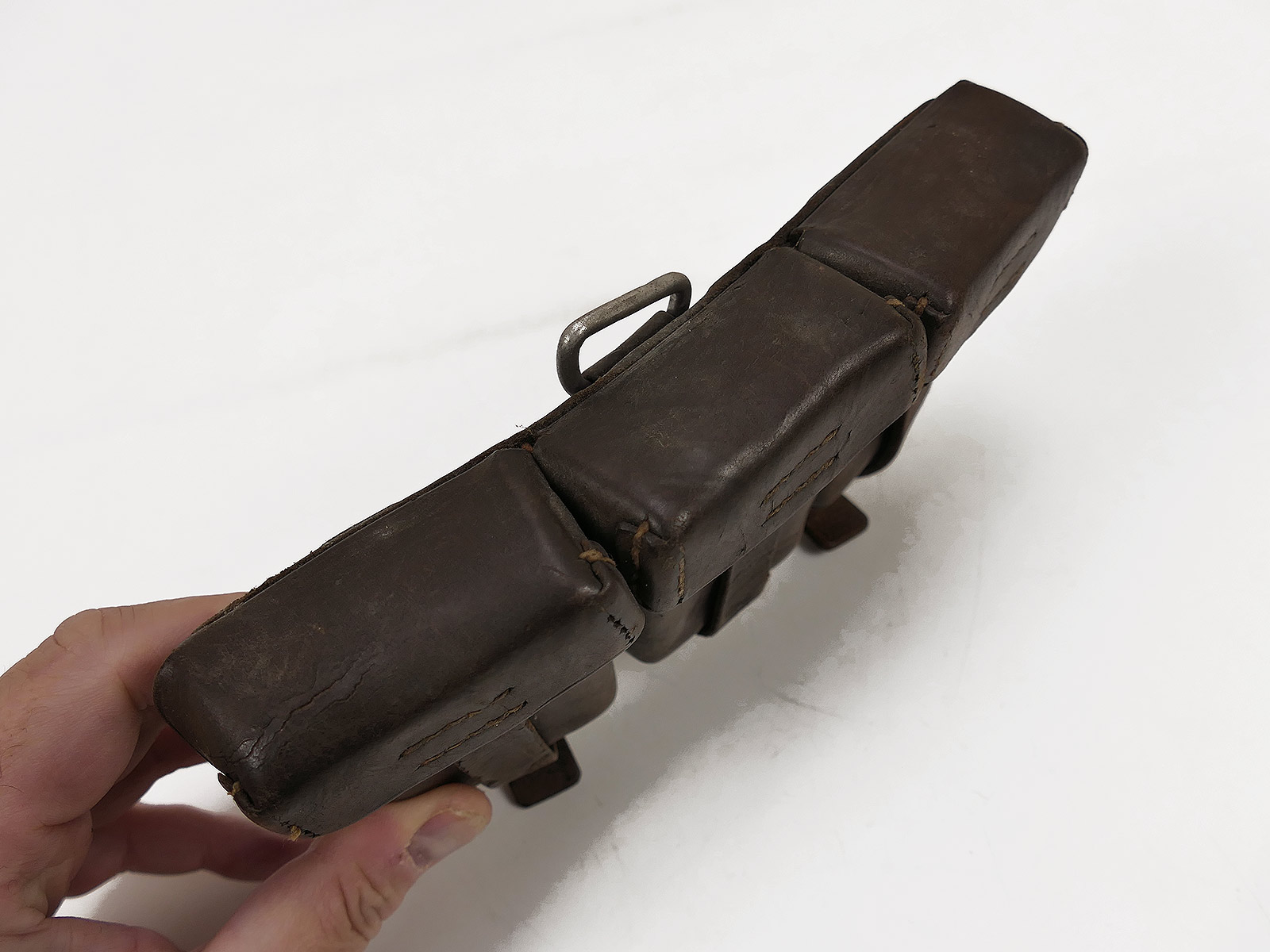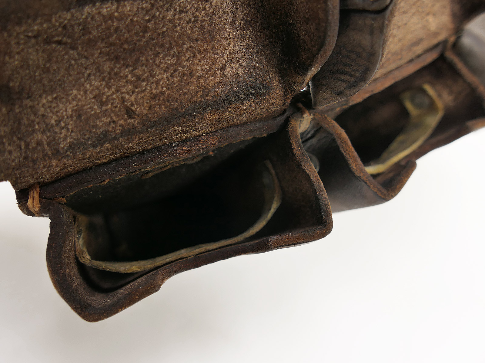 Original 3er K98 cartridge pouch Wehrmacht, brown, WITH the inner dividers, stamped with manufacturer.