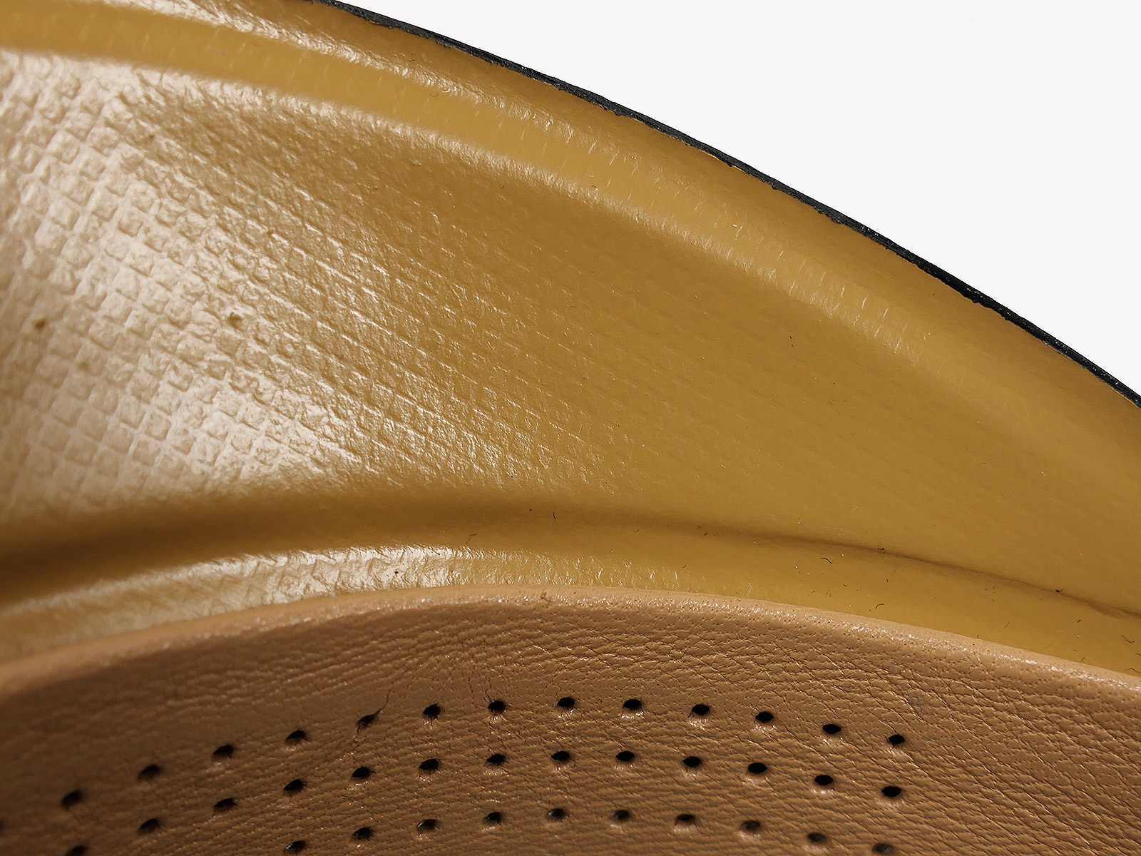 The inner lining is made of heavy artificial silk. The logo is embossed directly onto the base of the lining.