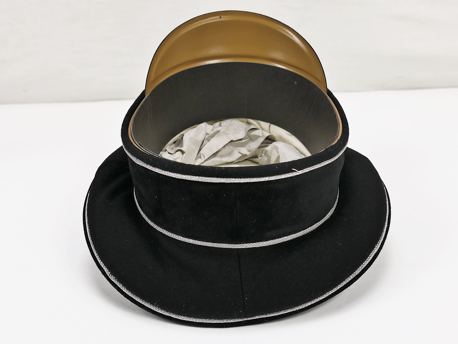 3 aluminium piping. The cap band is made of fine black cotton velvet.