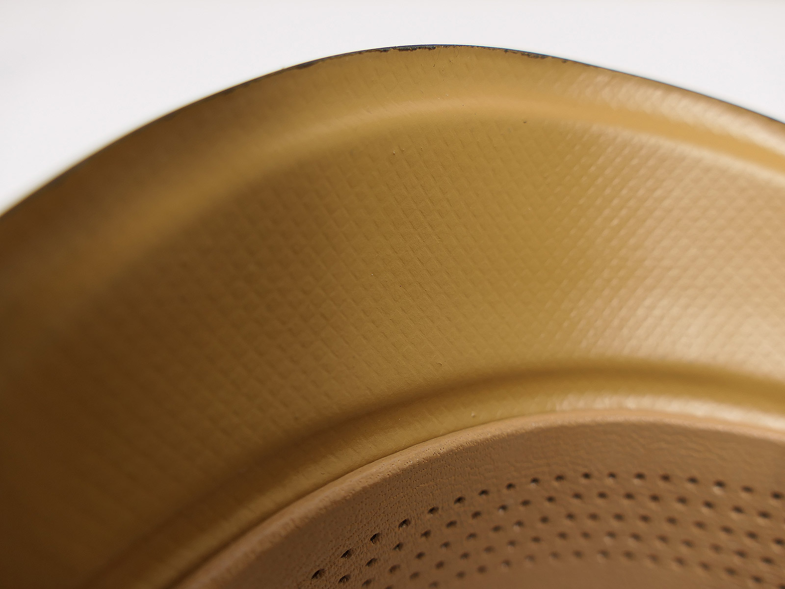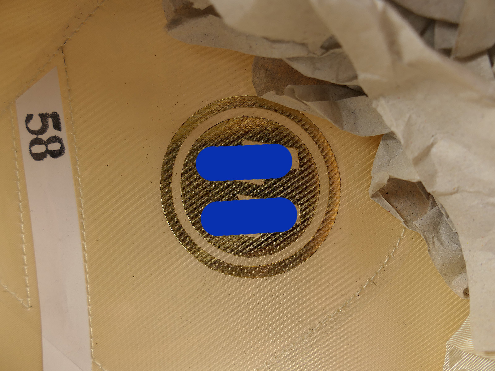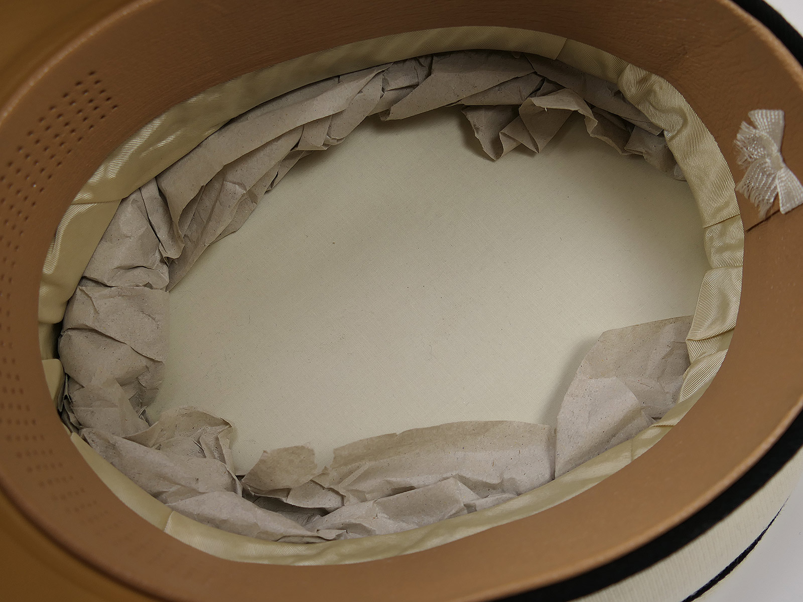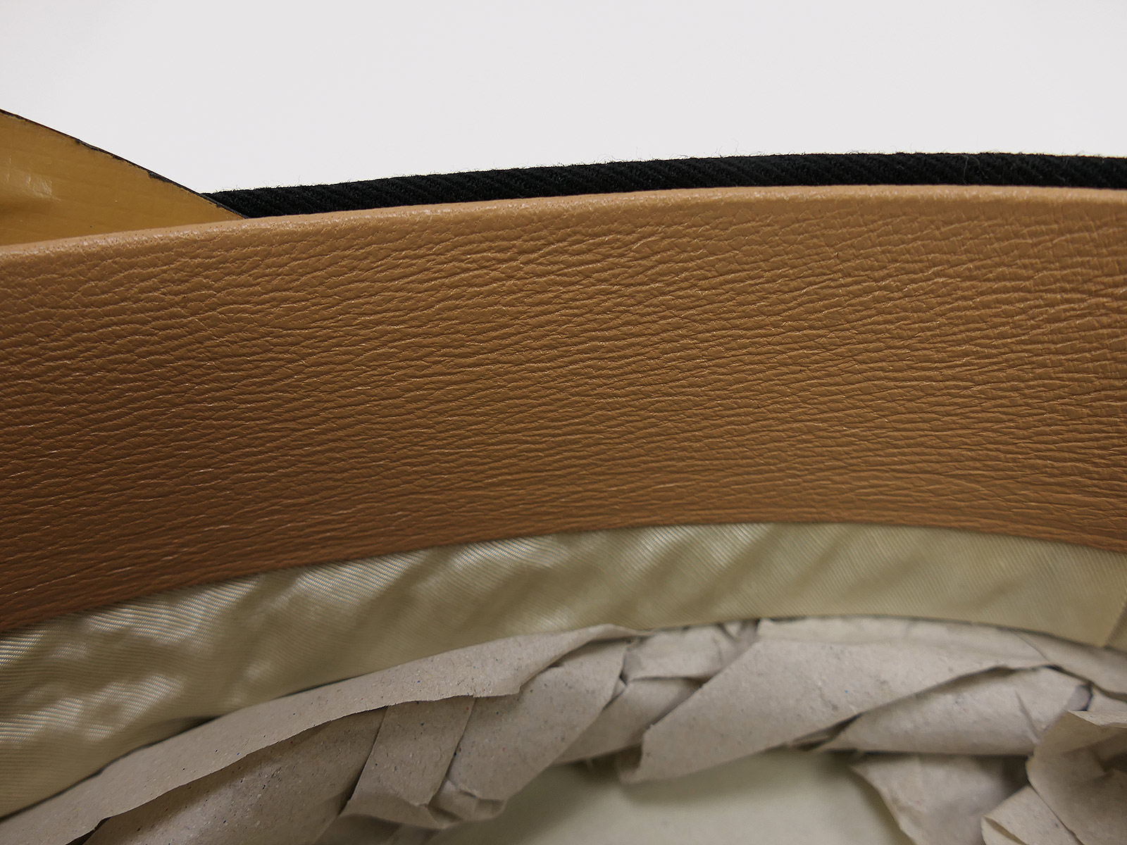 The inner lining is made of heavy artificial silk. The logo is embossed directly onto the base of the lining.