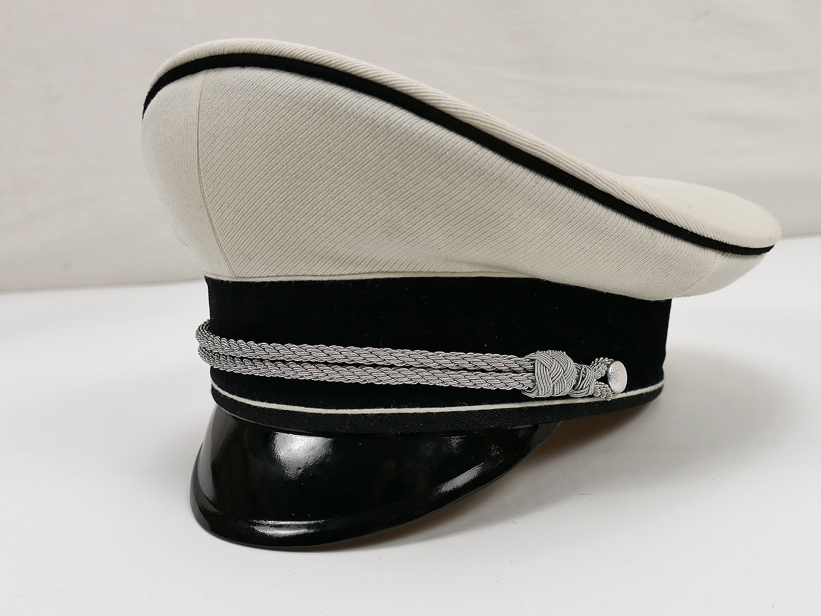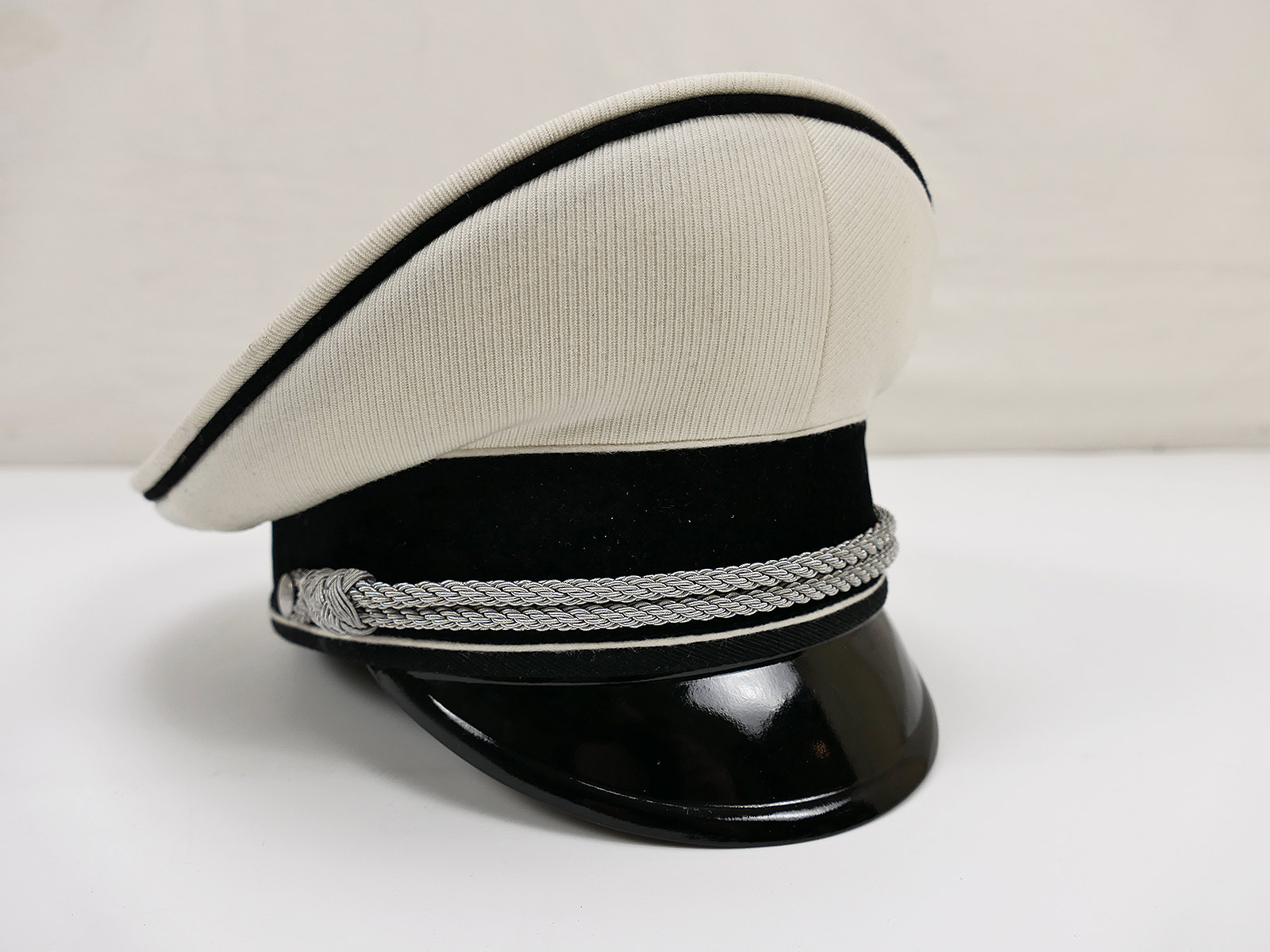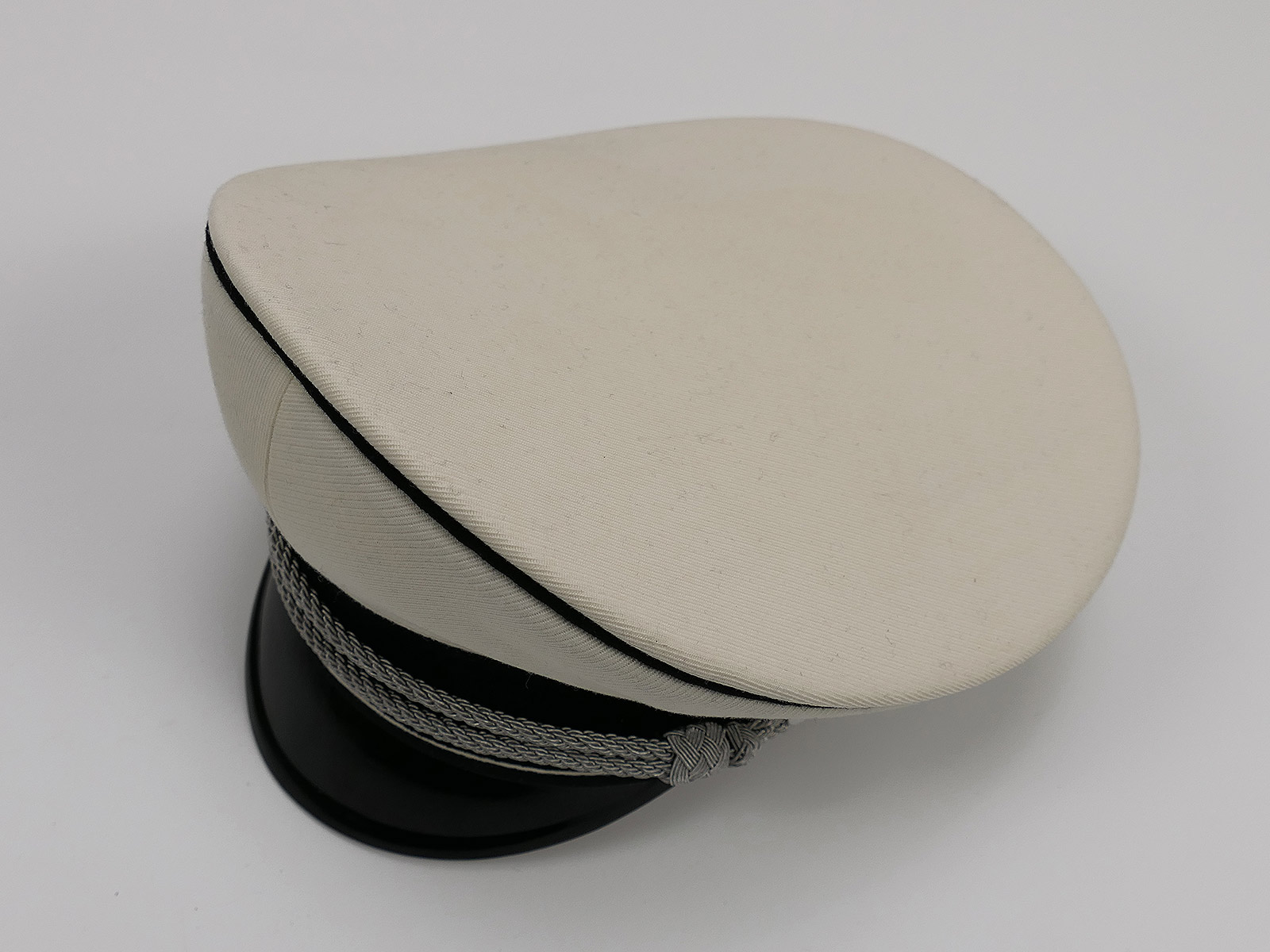 General SS white summer officer's peaked cap in an elegant saddle shape.