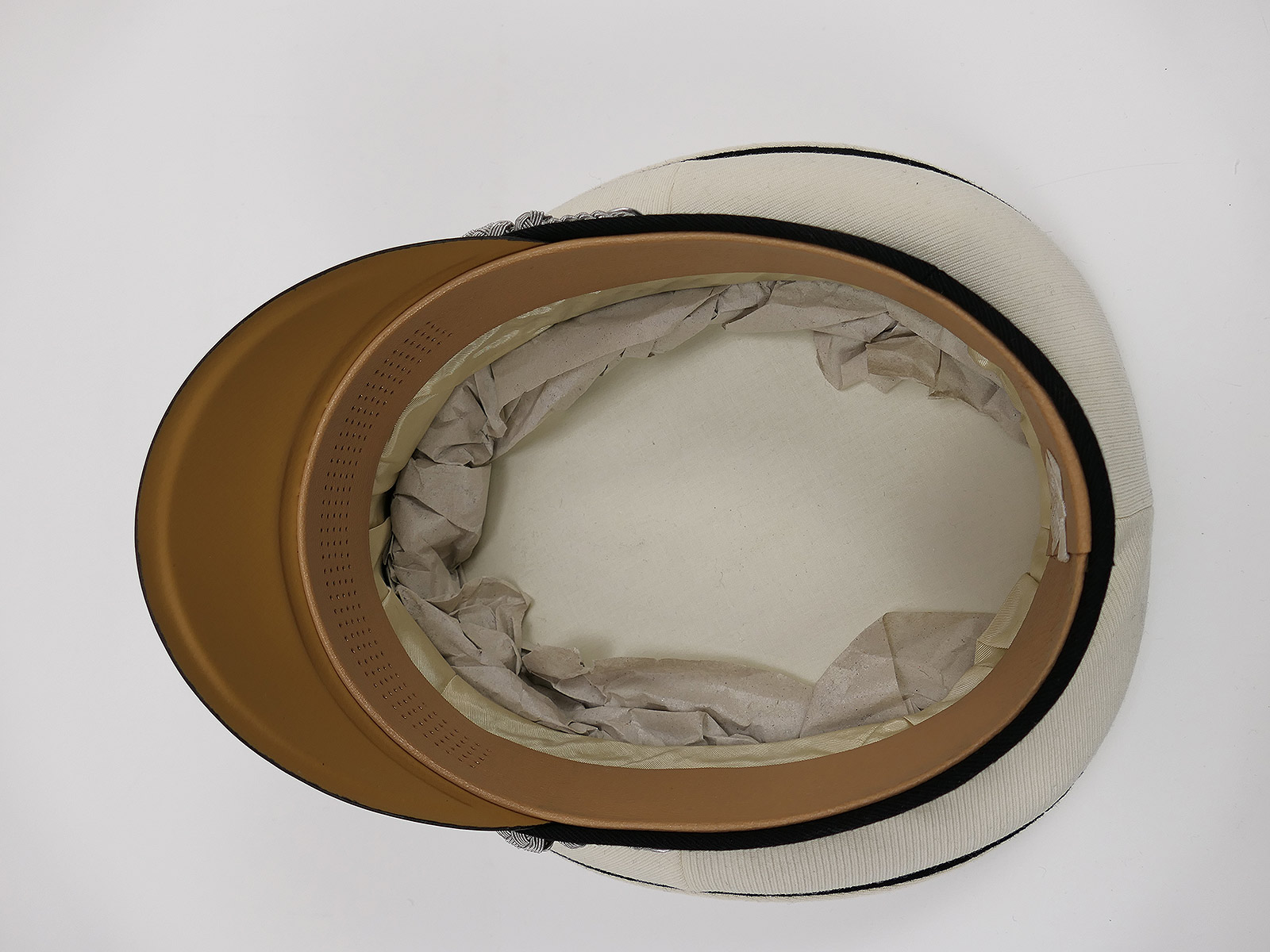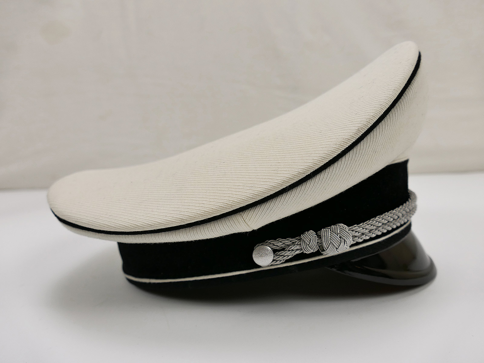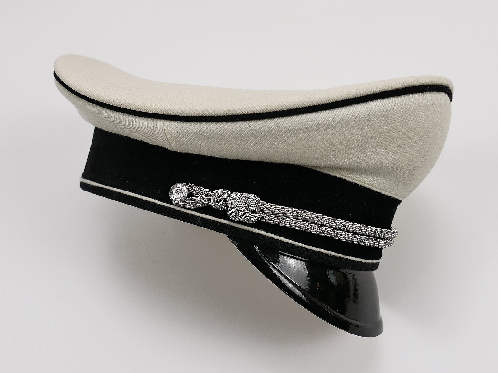 General SS white summer officer's peaked cap in an elegant saddle shape.