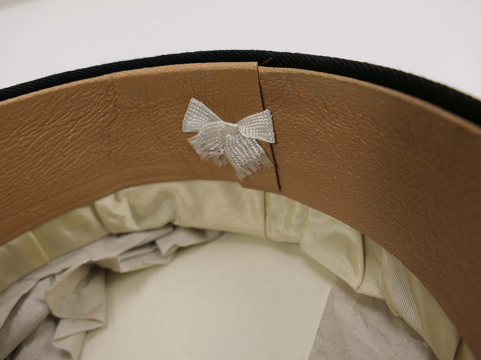 The cap has a label behind the sweat leather.