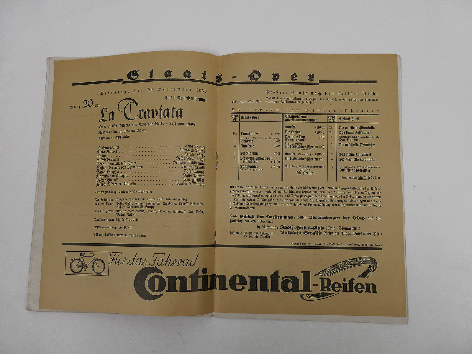 German Reich Program Booklet Opera State Opera Berlin State Theatre La Traviata 1936